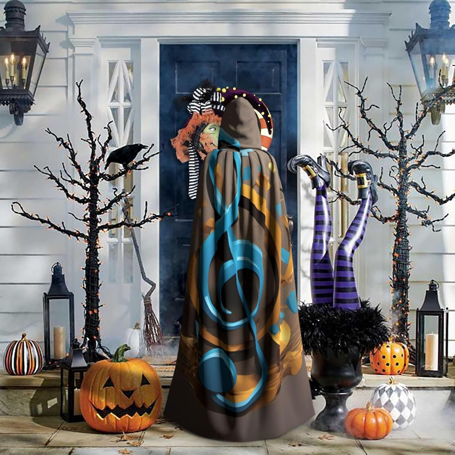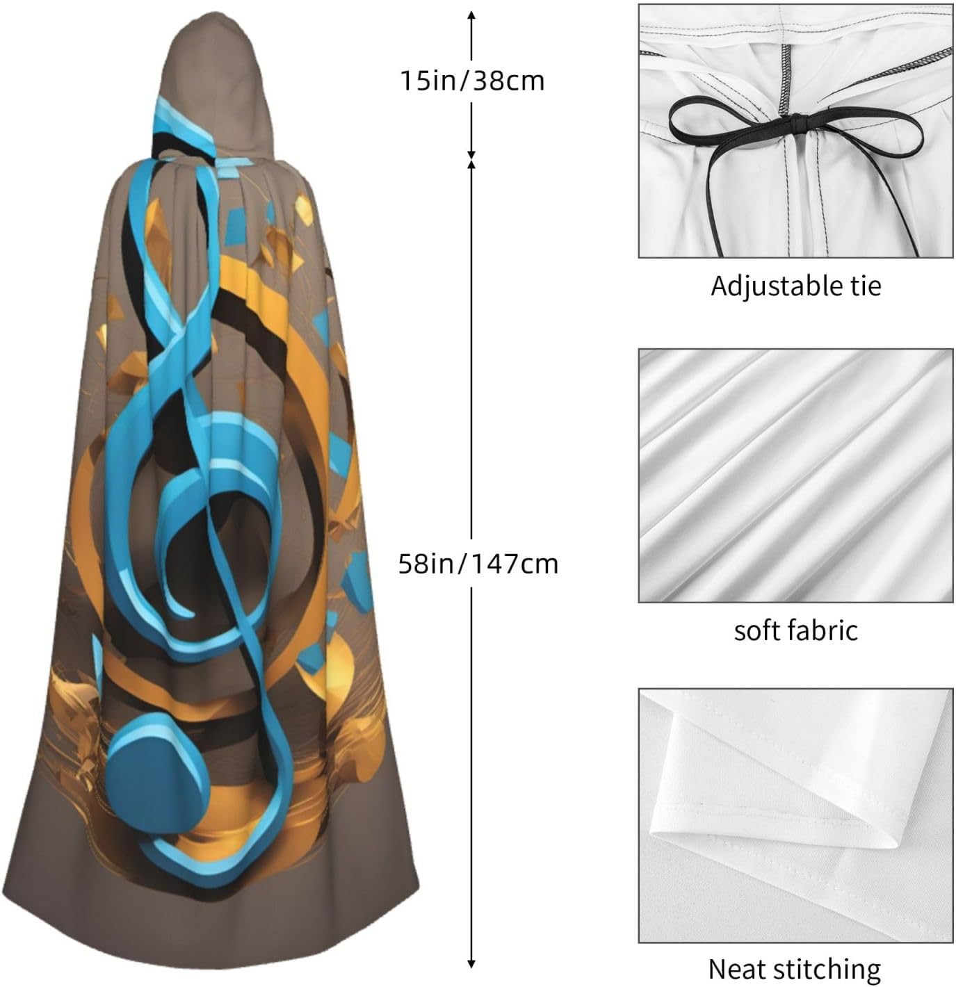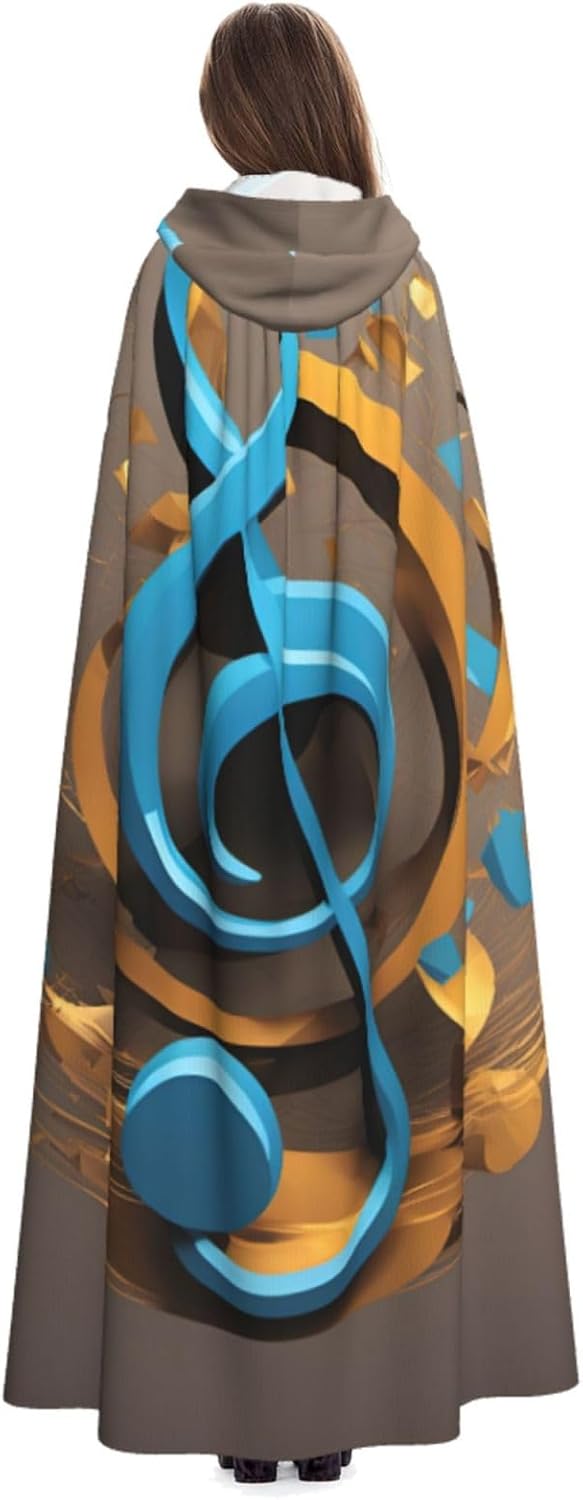 Mantello con cappuccio con stampa di note musicali e cappuccio, un accattivante mantello con cappuccio per adulti per cosplay e Halloween