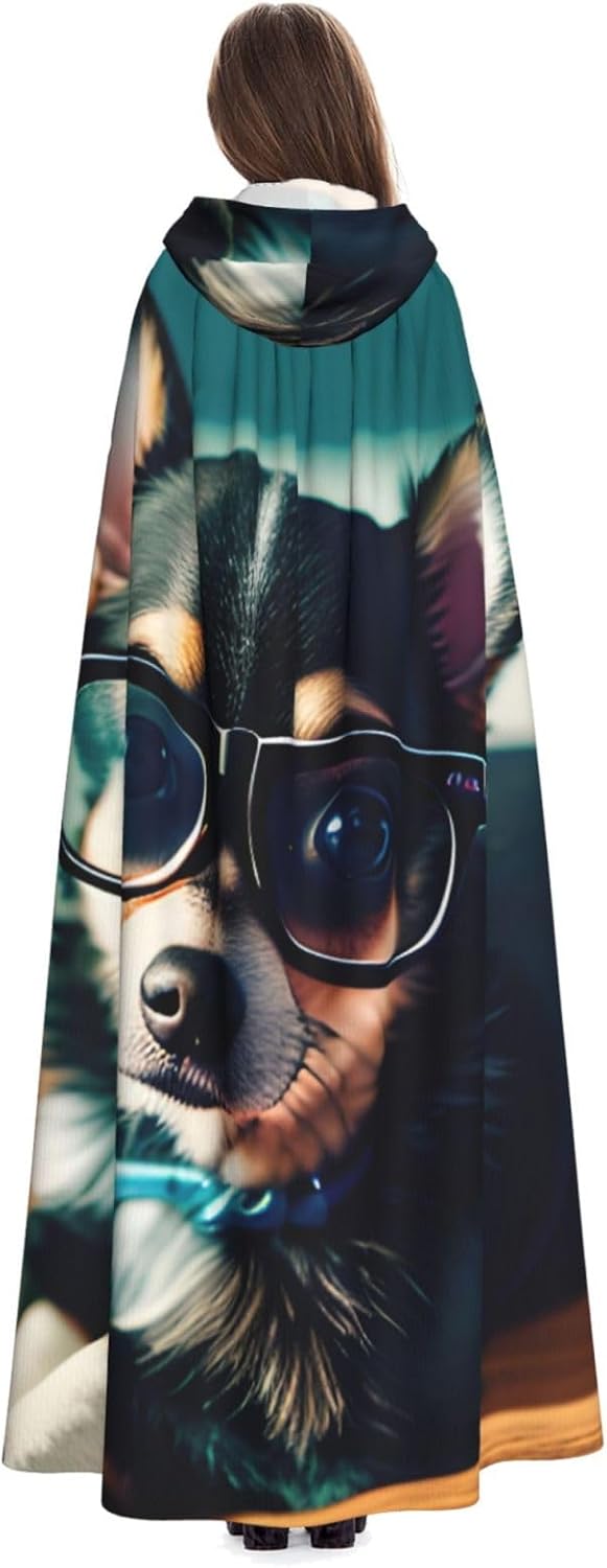 Mantello con cappuccio con stampa di occhiali per cani chihuahua, unisex, per cosplay, Halloween, carnevale, forniture