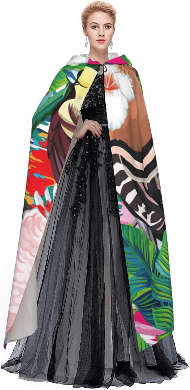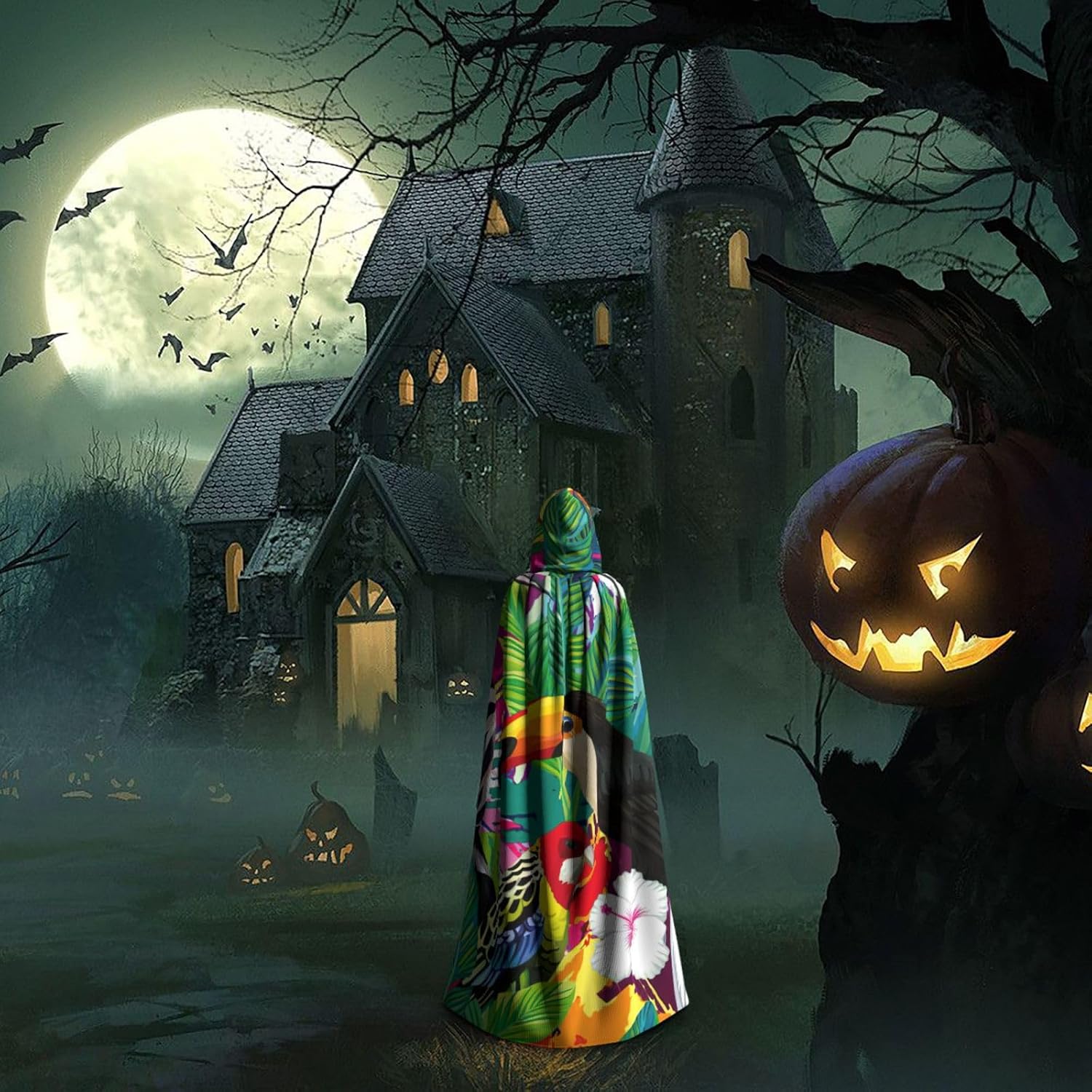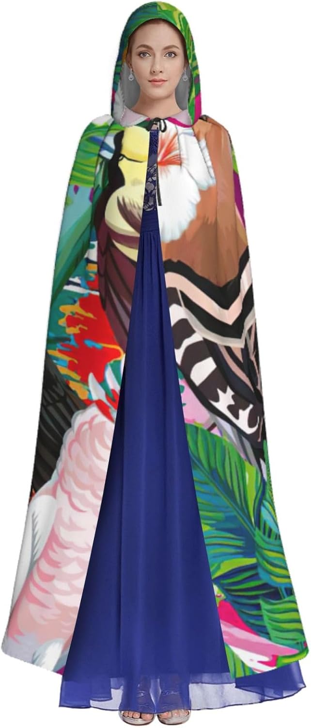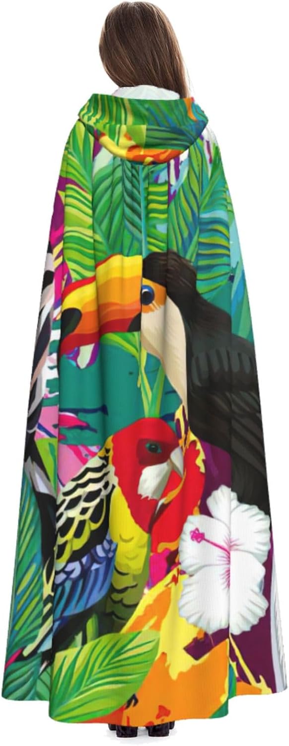 Mantello con cappuccio con stampa di uccelli tropicali e foglie di piante con cappuccio, un accattivante mantello con cappuccio per adulti per cosplay e Halloween