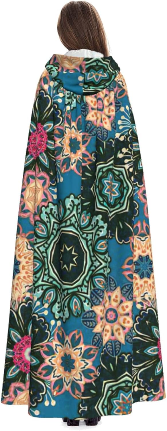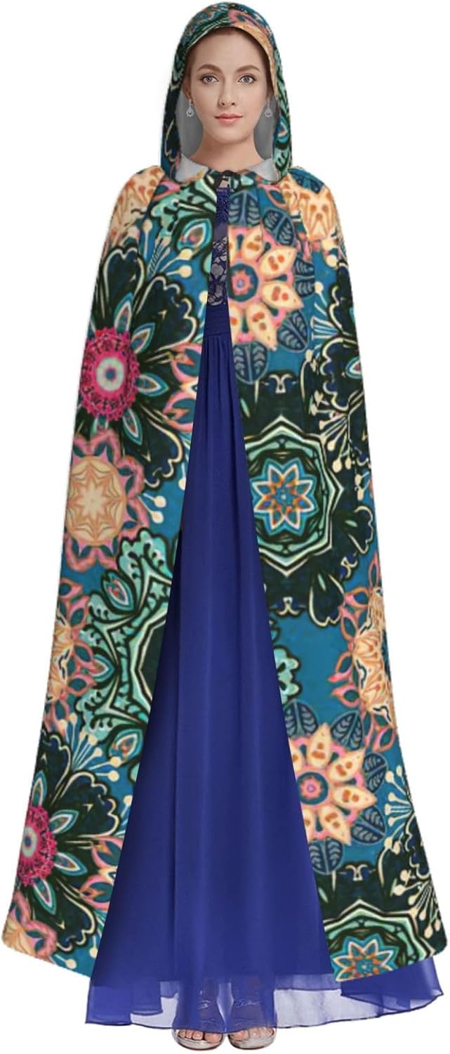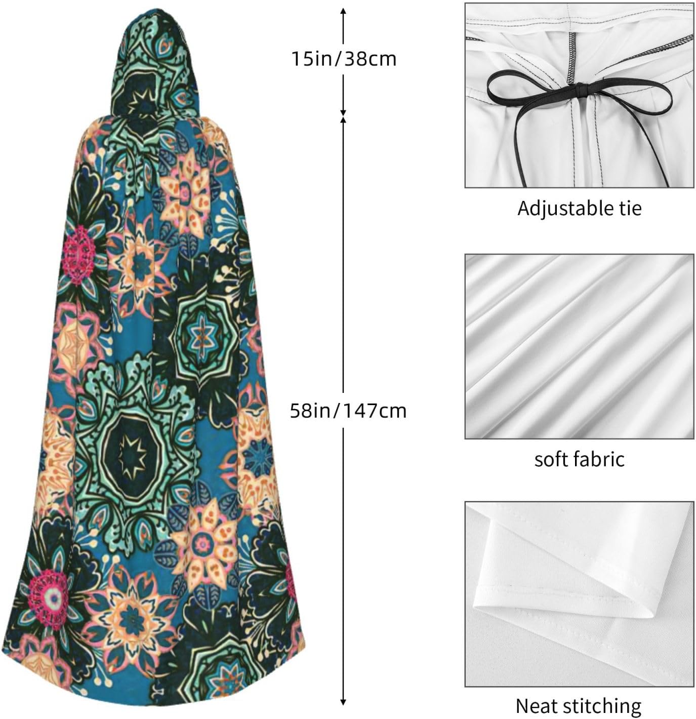 Il design senza cerniera, abbinato a un grande mantello con cappuccio e cravatta al collo, migliora il tuo mistero mantenendoti comodo con il suo tessuto non prurito. Con una lunghezza di 147 cm, larghezza di 154 cm e un'altezza del cappuccio di 38 cm, il nostro mantello con cappuccio con stampa floreale bohémien offre una copertura completa, assicurandoti di distinguerti in ogni occasione. Vari eventi come Halloween, cosplay, costumi da palcoscenico, feste a tema, balli, convegni di fumetti e molto altro ancora, il nostro mantello è versatile e conveniente. Facile da mantenere e di lunga durata, il nostro mantello con cappuccio con stampa floreale bohémien è lavabile in lavatrice e lavabile a mano. Con un design neutro, il nostro mantello è perfetto per uomini e donne.
