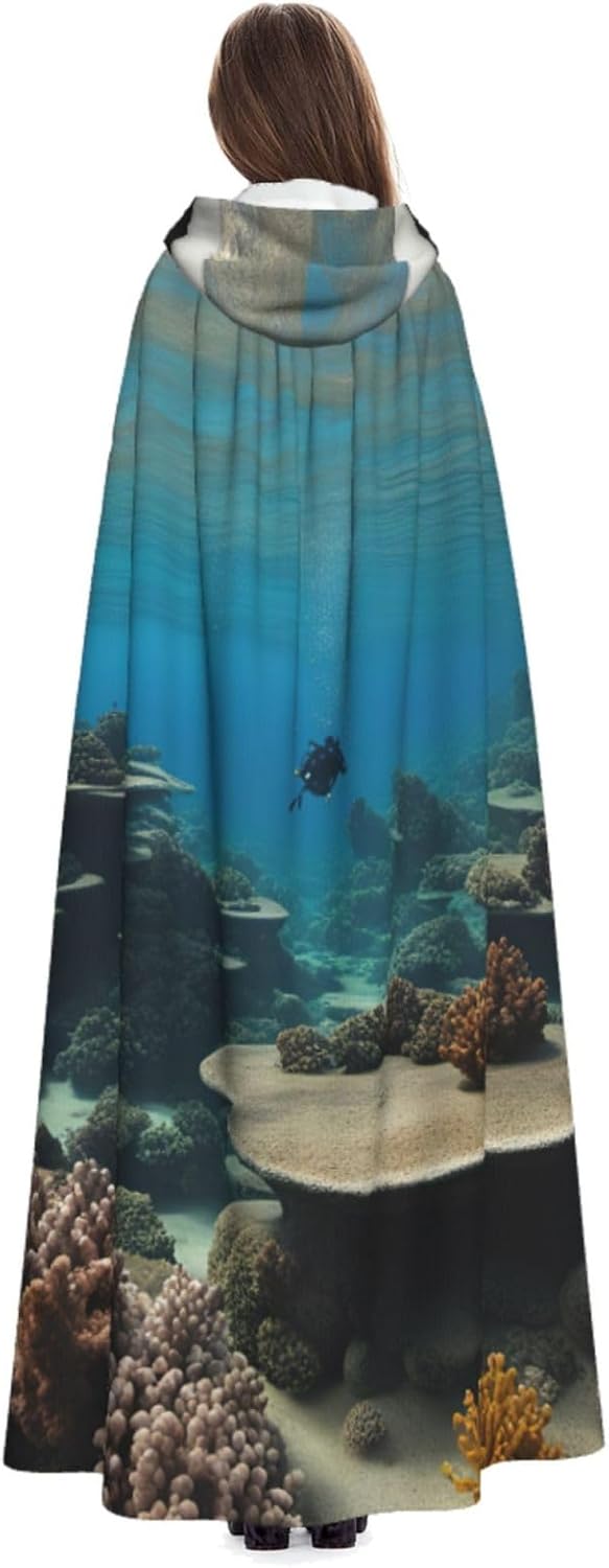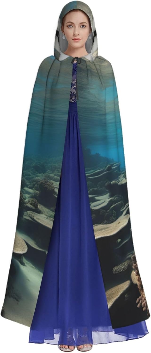 Mantello con cappuccio con stampa oceanica subacquea con cappuccio, un accattivante mantello con cappuccio per adulti per cosplay e Halloween