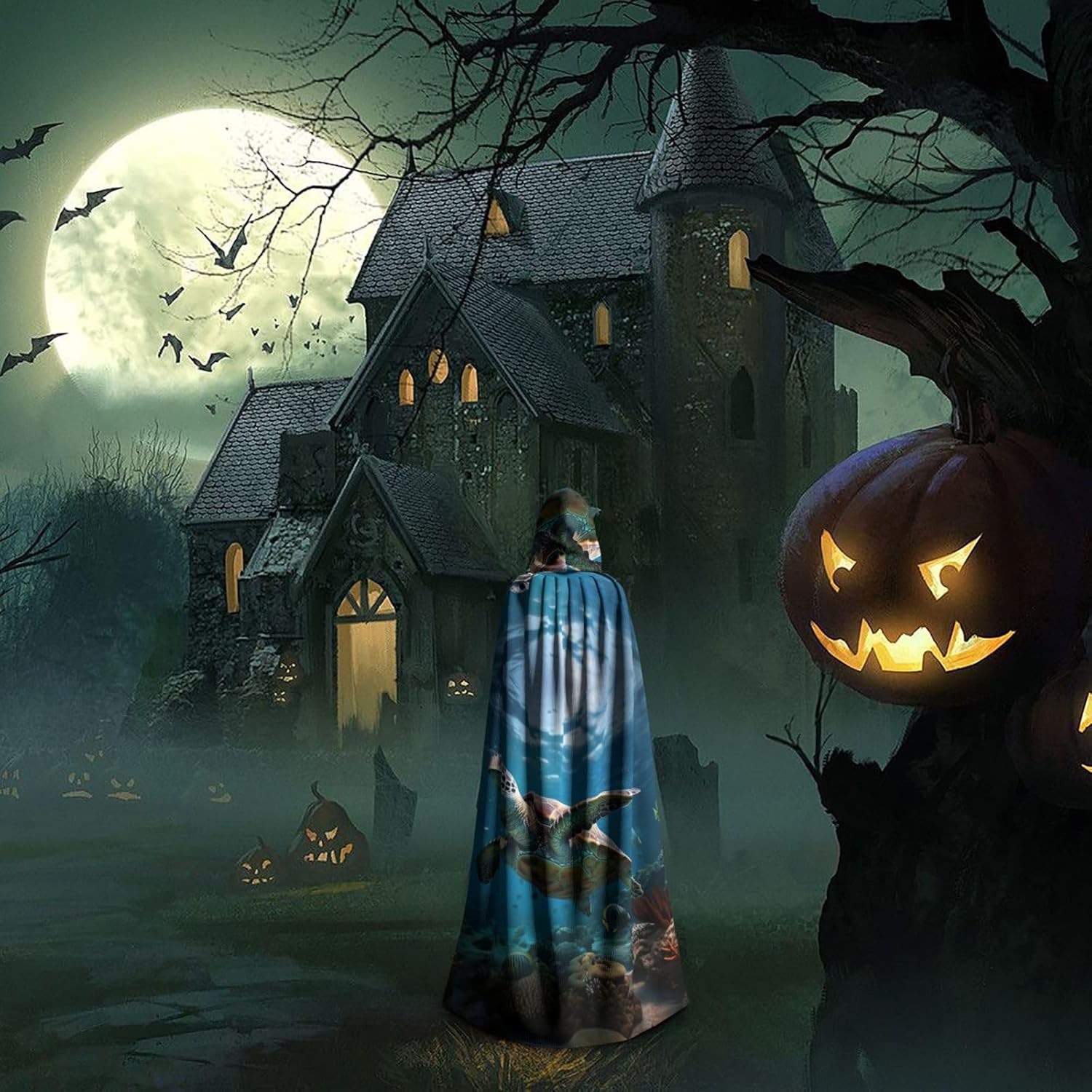 Il design senza cerniera, abbinato a un grande mantello con cappuccio e cravatta al collo, migliora il tuo mistero mantenendoti comodo con il suo tessuto non prurito. Con una lunghezza di 147 cm, larghezza di 154 cm e un'altezza del cappuccio di 38 cm, il nostro mantello con cappuccio con stampa tartarughe marine offre una copertura completa, assicurandoti di distinguerti in ogni occasione. Vari eventi come Halloween, cosplay, costumi da palcoscenico, feste a tema, balli, convegni di fumetti e molto altro ancora, il nostro mantello è versatile e conveniente. Facile da mantenere e di lunga durata, il nostro mantello con cappuccio con stampa tartarughe marine è lavabile in lavatrice e lavabile a mano. Con un design neutro, il nostro mantello è perfetto per uomini e donne.