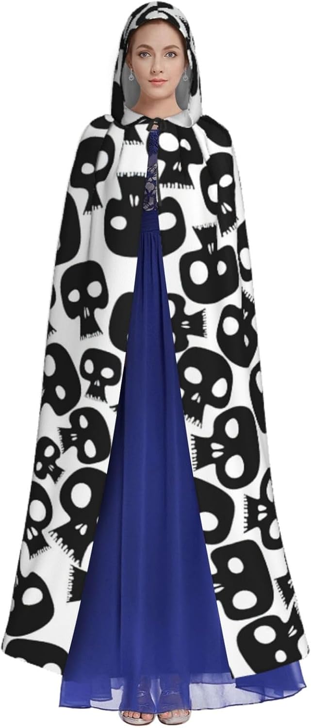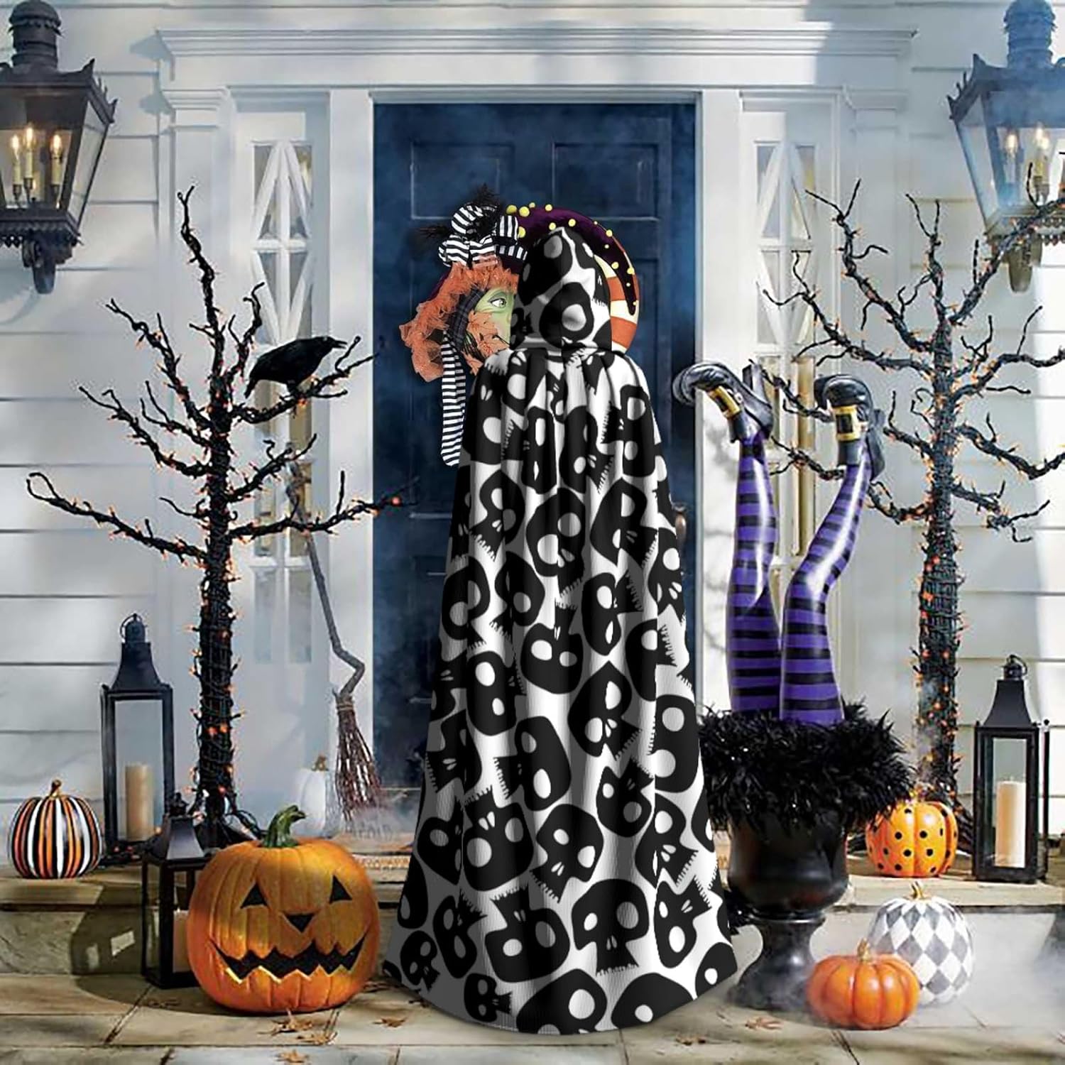 Mantello con cappuccio con stampa teschi per Halloween per adulti, elegante mantello per carnevale feste a tema cosplay