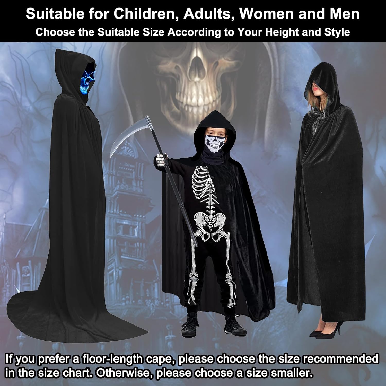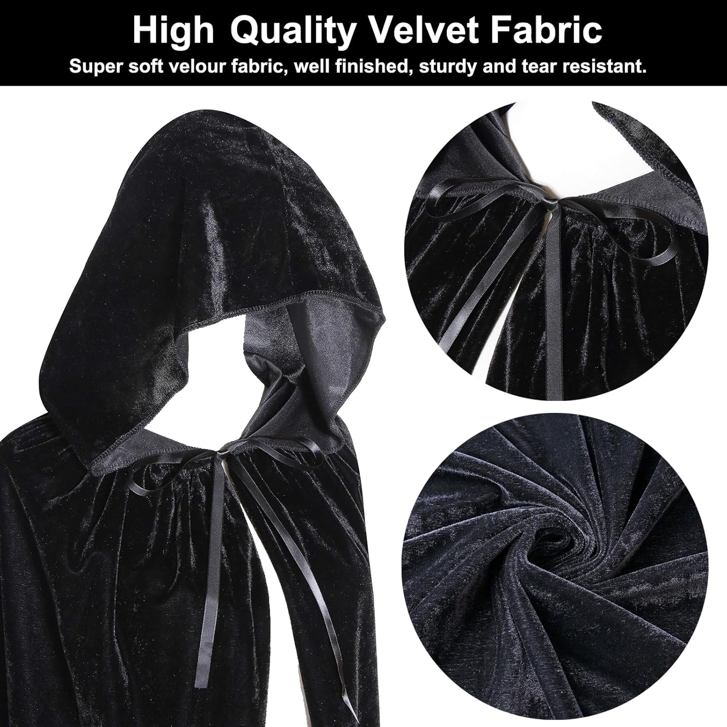 Mantello con cappuccio unisex - Costume di Halloween - Mantello con cappuccio per adulti - Vampiro - Strega Ottima idea regalo: perfetta per giochi di ruolo di Halloween, costumi per feste di Halloween. Il lungo cappotto con cappuccio da donna è l'ideale per il divertimento in famiglia, una buona decorazione per le feste. È anche un buon regalo per il tuo amante, famiglia, amici e colleghi. Descrizione: Mantella in velluto 100% poliestere con cappuccio, morbida, confortevole, fatta per durare, senza prurito. - Lungo cappuccio da mago in velluto e mantello/mantello per aggiungere un senso più misterioso, cravatta a nastro al collo, non facile da perdere. - Mantello da vampiro in velluto retrò, molto bello, facile da spostare e manovrare. Costume da vampiro, costume da strega, costume di Halloween, mantello da strega, mantello da vampiro, abito da strega, abito gotico. - Facile da completare il trucco della festa di Halloween, ballo in maschera, festa pagana, cosplay, ballo in maschera o digiuno a mano. Contenuto della confezione: 1 cappotto lungo unisex con cappuccio. Tre colori: nero, rosso, viola. 5 taglie di mantelle tra cui scegliere: Lunghezza (dal colletto all'orlo). La taglia XS (lunghezza: 90 cm) è adatta alla maggior parte delle persone: bambini e adolescenti 5-10 cm (90-120 cm). La taglia M (lunghezza 130 cm) si adatta alla maggior parte delle persone di altezza compresa tra 120 e 150 cm. La taglia L (lunghezza 150 cm) è adatta per la maggior parte delle persone con altezza 150-170 cm. La taglia XL (lunghezza 170 cm) si adatta alla maggior parte delle persone con altezza 170-190 cm. XXL (lunghezza 190 cm) adatto alla maggior parte delle persone 190-210 cm. Suggerimenti: 1. Controlla attentamente la tabella delle taglie qui sotto prima di effettuare l'ordine e scegli la taglia più adatta a te.