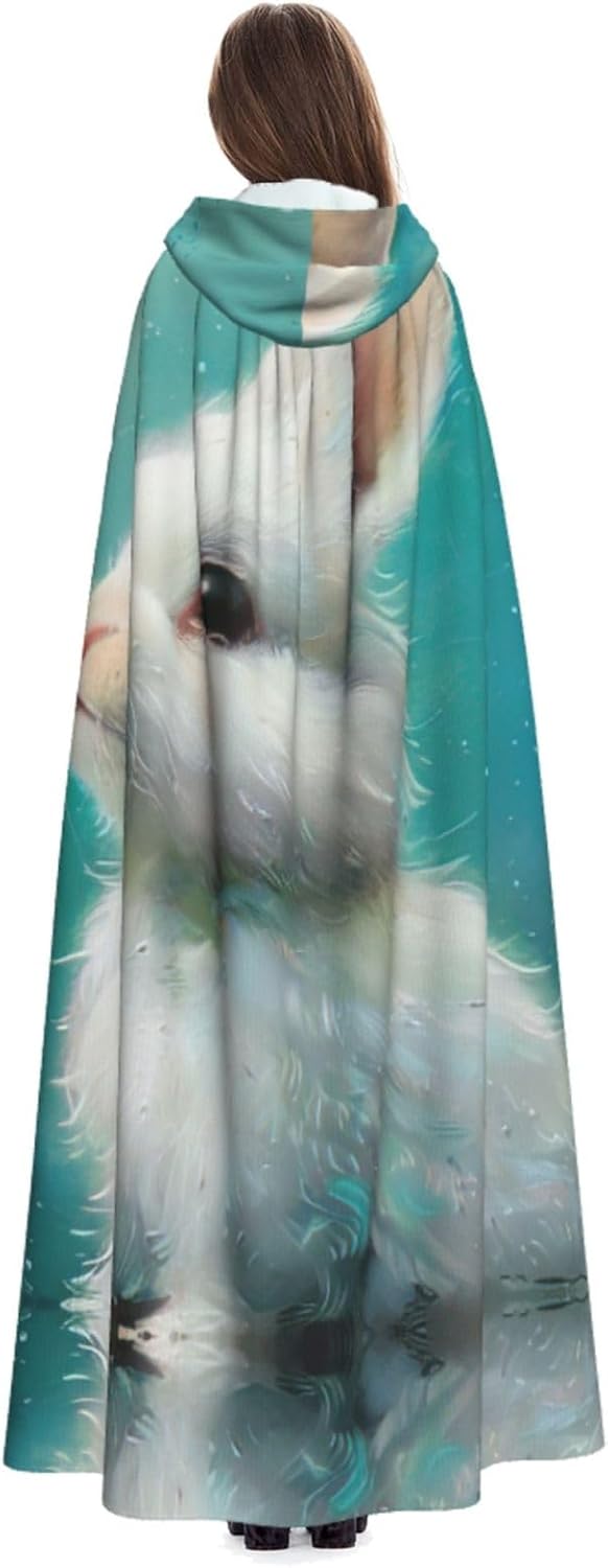 Mantello con cappuccio da coniglio bianco con cappuccio, unisex, per Halloween, Natale, vampiro, stregone, costume cosplay
