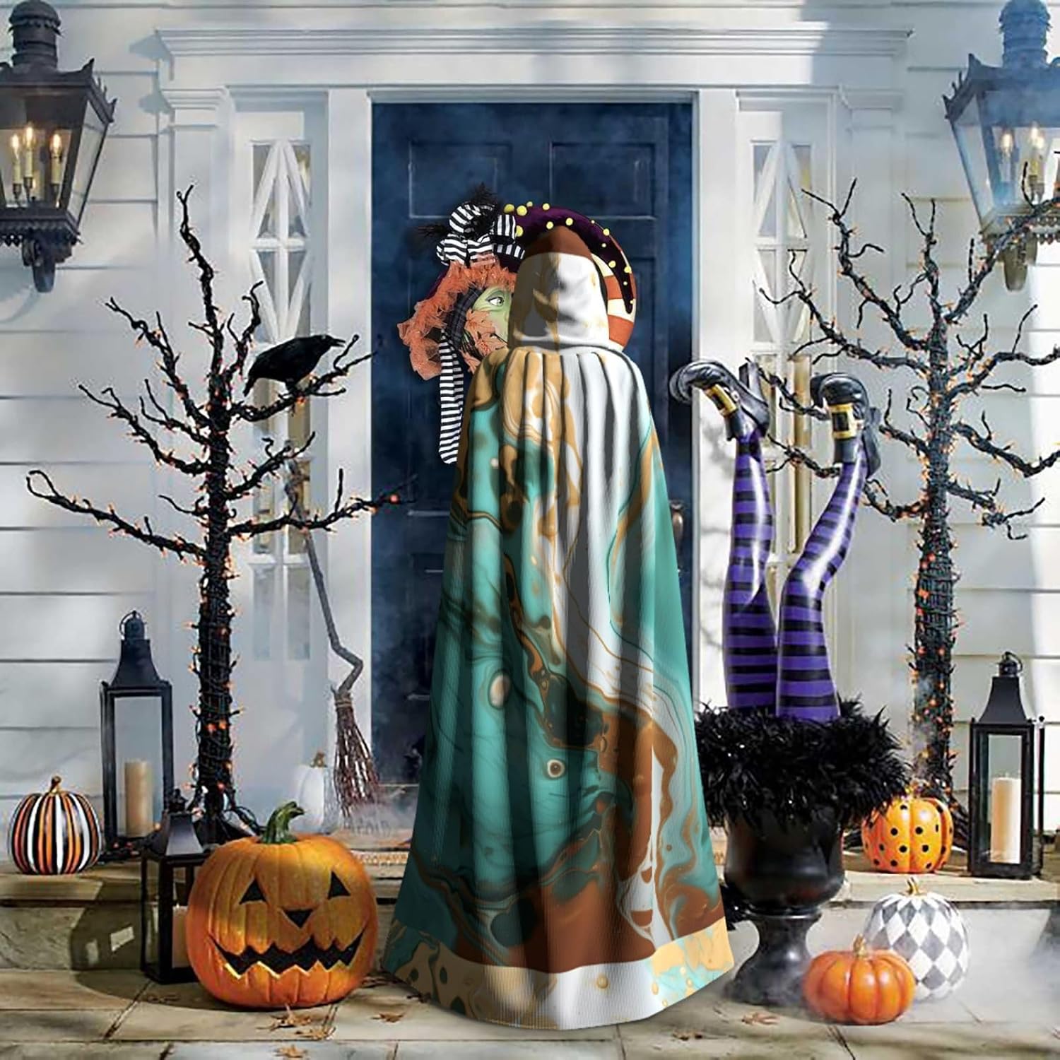 Mantello con cappuccio da strega mago di Halloween, mantello con cappuccio natalizio per cosplay, per adulti, uomini, donne, bomboniere, forniture per feste, vestiti, vestiti, costumi, turchese