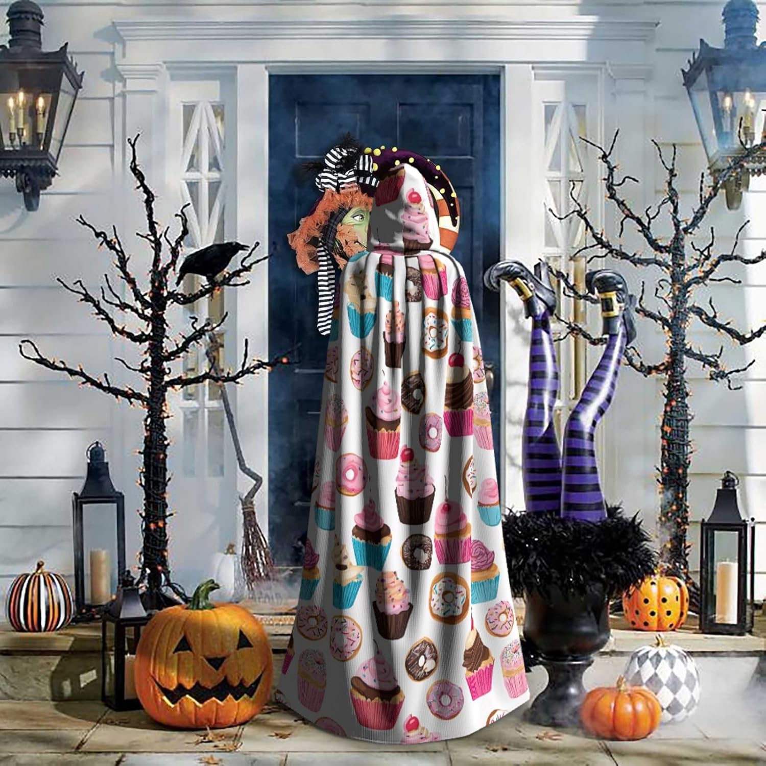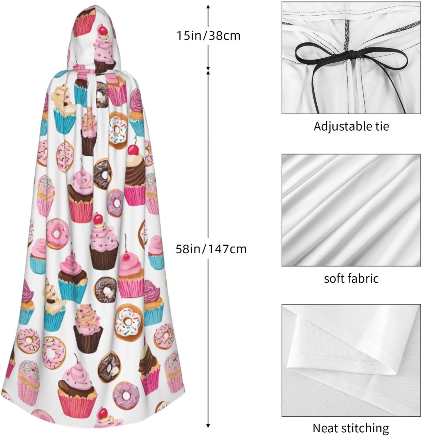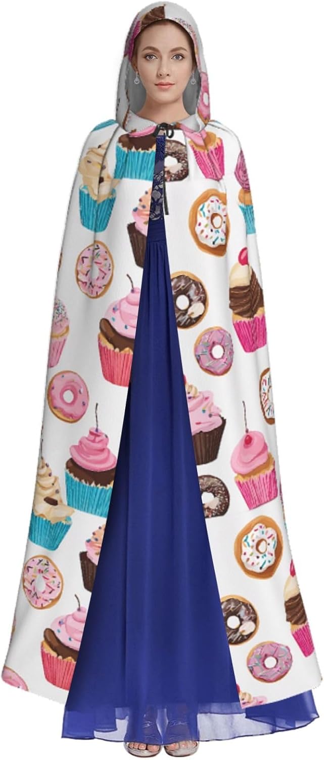 Mantello con cappuccio da strega mago di Halloween, mantello con cappuccio natalizio per cosplay, per adulti, uomini e donne, bomboniere, forniture per feste, vestiti, costumi, motivo cupcake