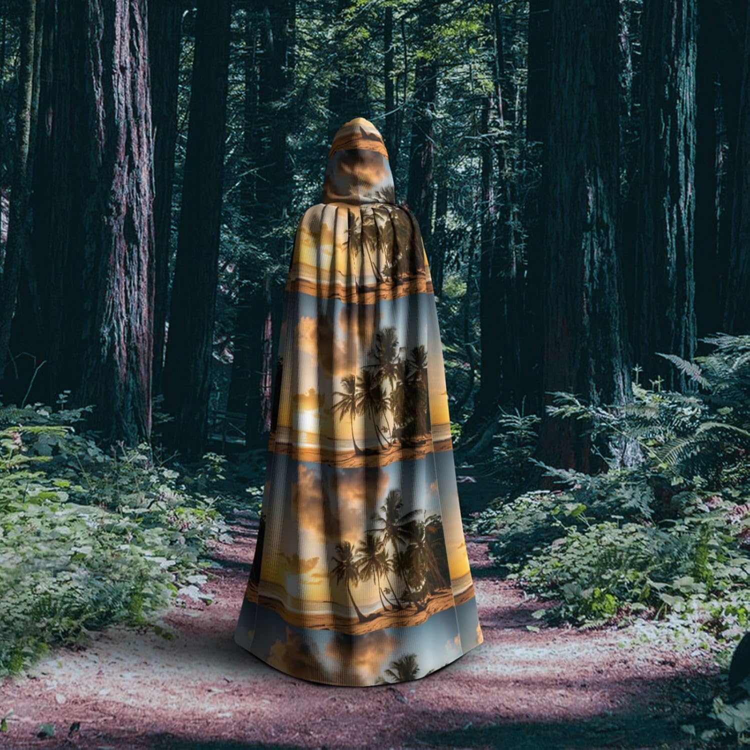Mantello con cappuccio da strega mago di Halloween, mantello con cappuccio natalizio per cosplay per uomini e donne alla moda bomboniere forniture per feste abiti abiti costumi - Palma hawaiana