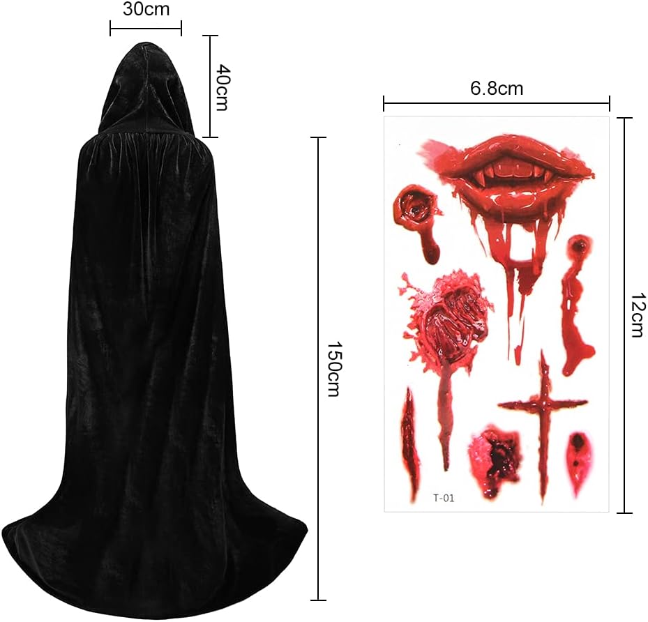 👿Set di Halloween Include un mantello con cappuccio di Halloween con 10 tatuaggi temporanei, è il vestito migliore per il tuo Halloween. È adatto a tutte le feste durante Halloween. La combinazione di mantello e adesivi tatuaggio crea un vestito di Halloween spaventoso per te 👿Il mantello di velluto è realizzato in velluto di alta qualità, è molto morbido e confortevole e il colore è brillante e brillante, rendendoti più abbagliante alla festa 👿Il mantello è lungo circa 190 cm ed è adatto agli adulti. Il cappello è abbastanza grande da aumentare il senso di mistero. La clip per cappello può essere regolata per assicurarti il massimo comfort quando lo indossi. 👿Il mantello lungo per adulti è adatto a varie occasioni di feste di Halloween, molto adatto per feste di famiglia di Halloween, feste a tema, feste con immagini principali di giochi di ruolo, feste di trucco, feste danzanti, carnevali di Halloween, sfilate di Halloween e altre feste di ruolo 👿Il mantello lungo per adulti può essere riutilizzato e non è facile da deformare lavandosi a mano. Ci sono tre colori tra cui rosso, nero e verde tra cui scegliere e può essere indossato sia da uomini che da donne.