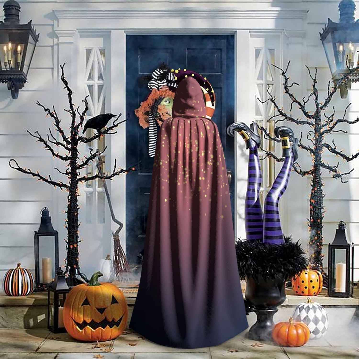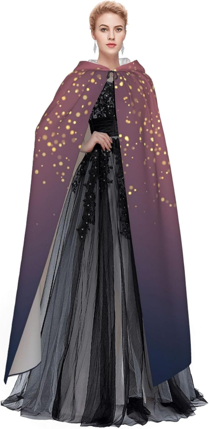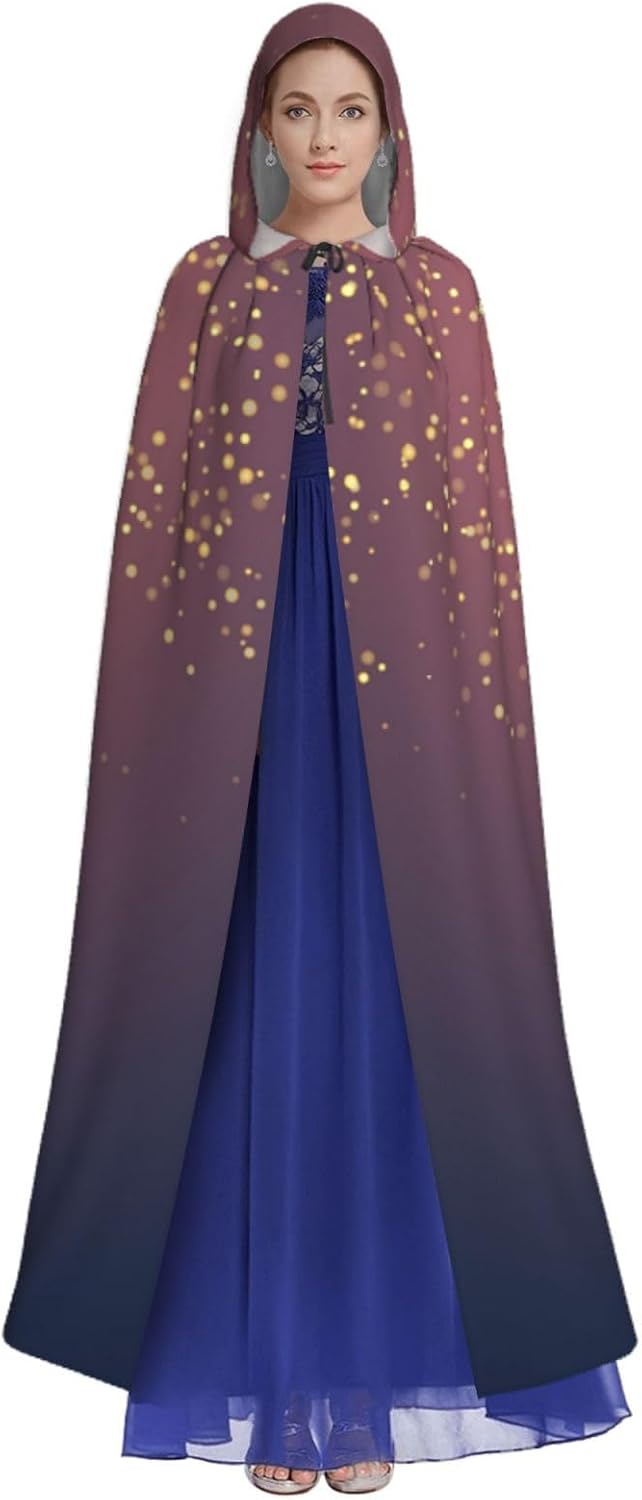 Il mantello con cappuccio per Halloween è realizzato con tessuto in poliestere morbido anche sulla pelle, prevenendo qualsiasi irritazione. Il mantello presenta un ampio cappuccio e uno stile annodato senza cerniere per un design sofisticato ed elegante. Con la sua dimensione universale, offre una copertura completa, adatta a tutti, assicurandoti di distinguerti tra la folla. Questo mantello blu navy con stampa cielo e stelle non è solo per Halloween; è abbastanza versatile per cosplay, spettacoli teatrali, balli in maschera, feste a tema e molto altro ancora.