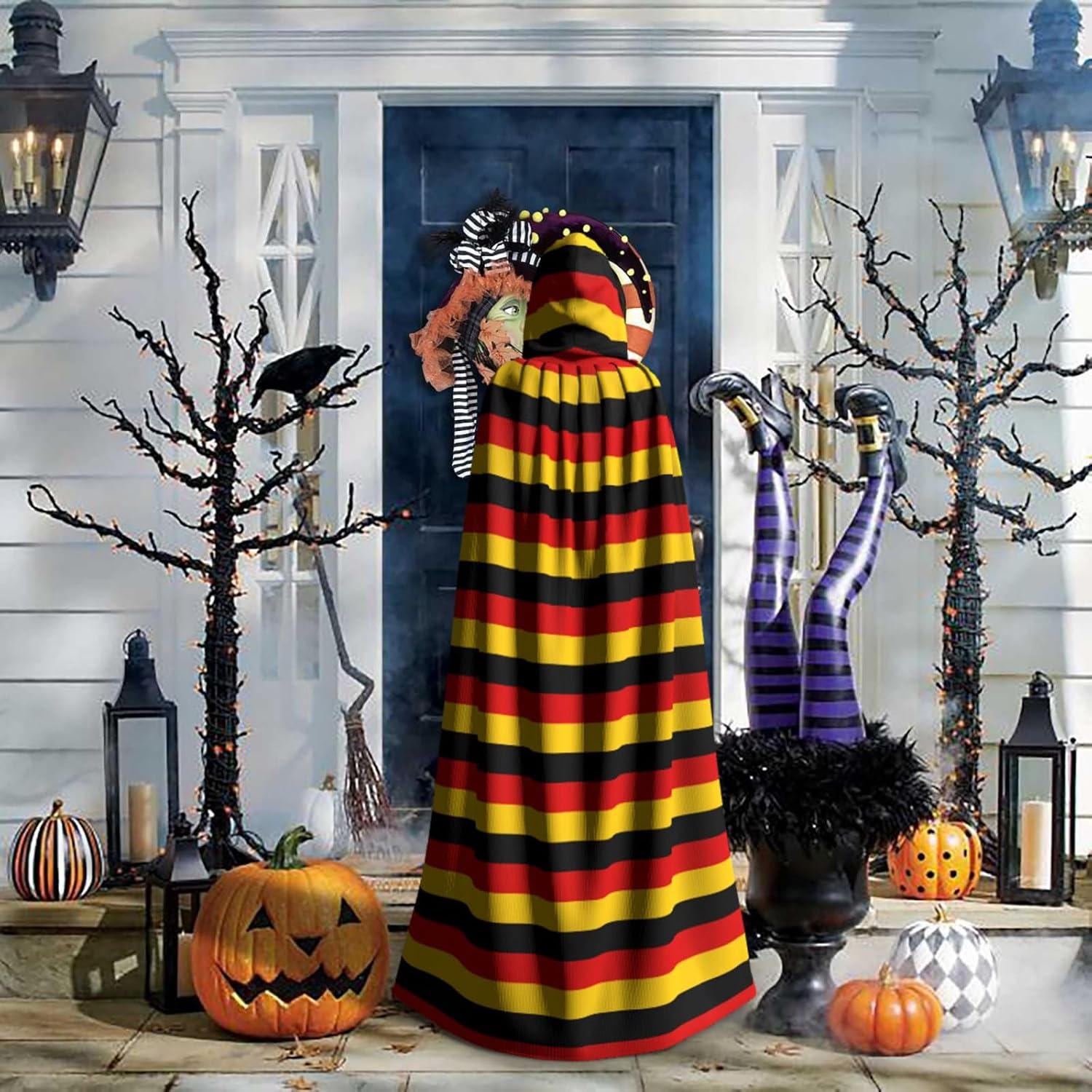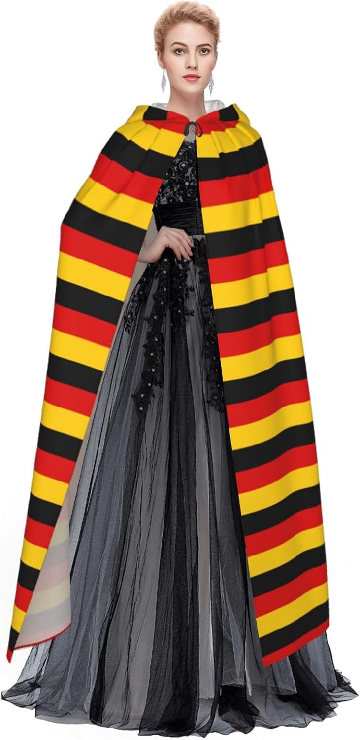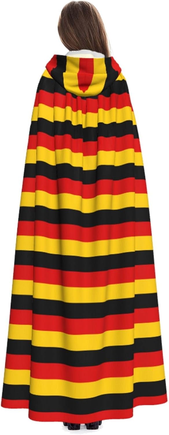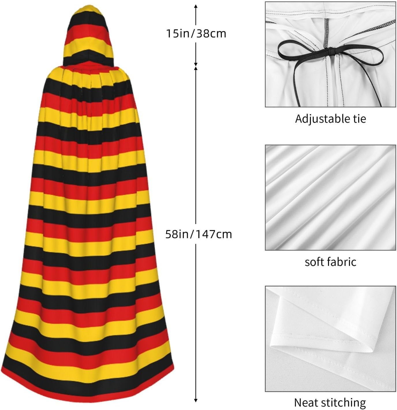 Il mantello con cappuccio per Halloween è realizzato con tessuto in poliestere morbido anche sulla pelle, prevenendo qualsiasi irritazione. Il mantello presenta un ampio cappuccio e uno stile annodato senza cerniere per un design sofisticato ed elegante. Con la sua dimensione universale, offre una copertura completa, adatta a tutti, assicurandoti di distinguerti tra la folla. Questo mantello con stampa bandiera tedesca non è solo per Halloween; è abbastanza versatile per cosplay, spettacoli teatrali, balli in maschera, feste a tema e molto altro ancora.