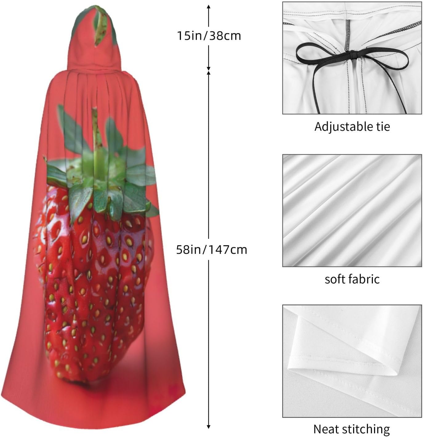 Il mantello con cappuccio per Halloween è realizzato con tessuto in poliestere morbido anche sulla pelle, prevenendo qualsiasi irritazione. Il mantello presenta un ampio cappuccio e uno stile annodato senza cerniere per un design sofisticato ed elegante. Con la sua dimensione universale, offre una copertura completa, adatta a tutti, assicurandoti di distinguerti tra la folla. Questo mantello con stampa di fragole non è solo per Halloween; è abbastanza versatile per cosplay, spettacoli teatrali, balli in maschera, feste a tema e molto altro ancora.
