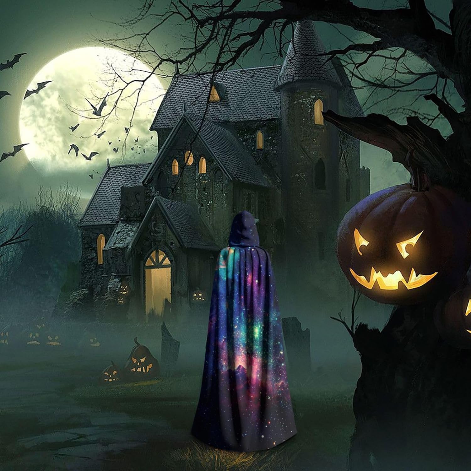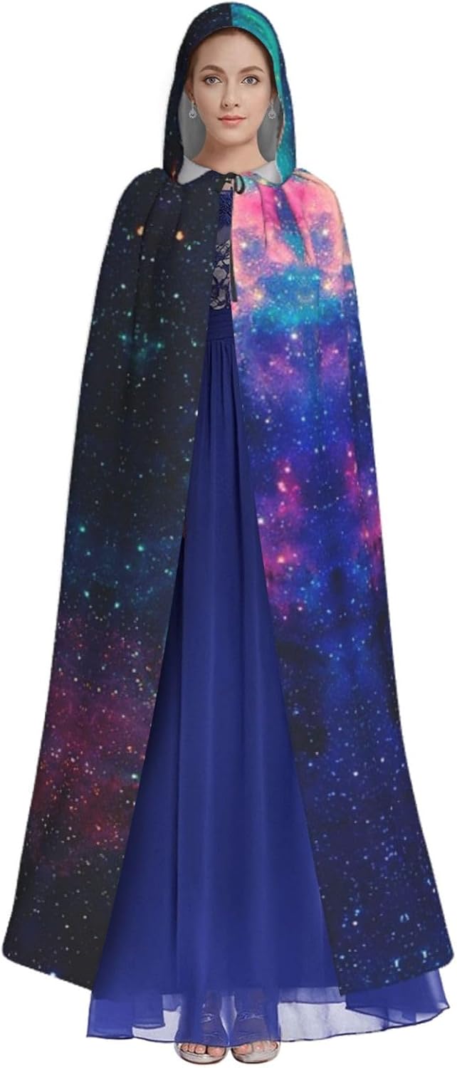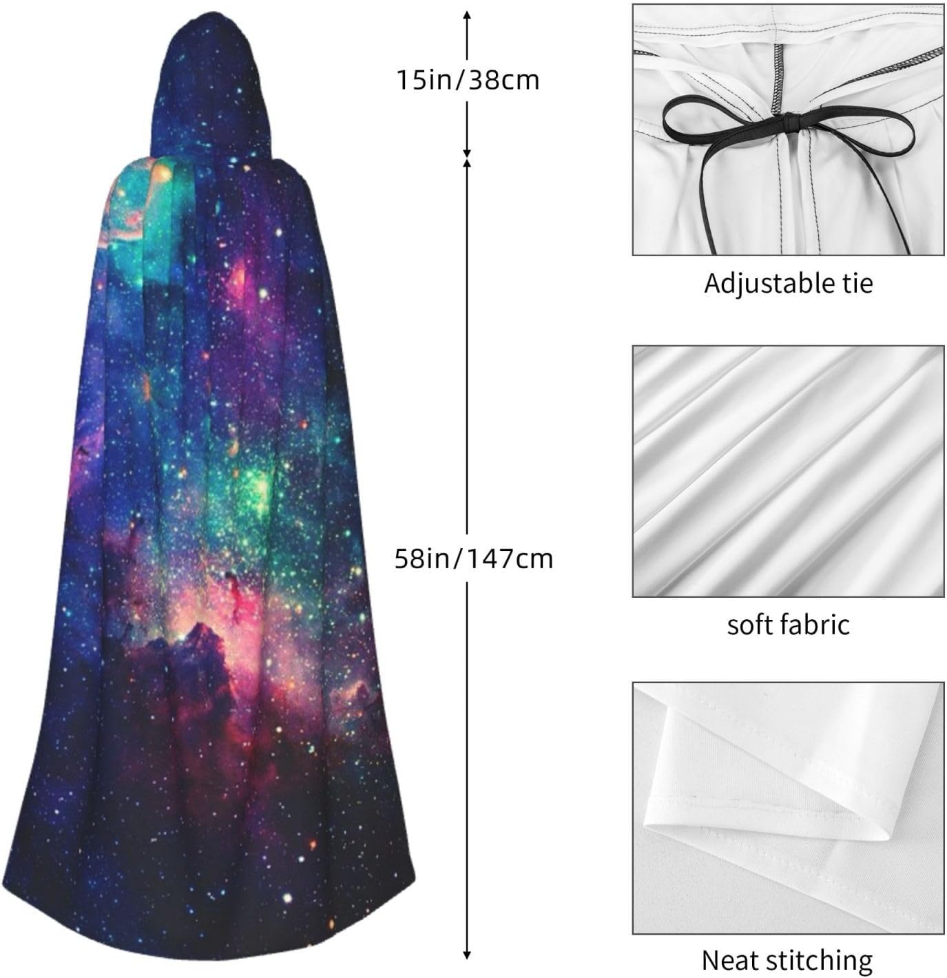 Il mantello con cappuccio per Halloween è realizzato con tessuto in poliestere morbido anche sulla pelle, prevenendo qualsiasi irritazione. Il mantello presenta un ampio cappuccio e uno stile annodato senza cerniere per un design sofisticato ed elegante. Con la sua dimensione universale, offre una copertura completa, adatta a tutti, assicurandoti di distinguerti tra la folla. Questo mantello colorato con stampa galassia non è solo per Halloween; è abbastanza versatile per cosplay, spettacoli teatrali, balli in maschera, feste a tema e molto altro ancora.