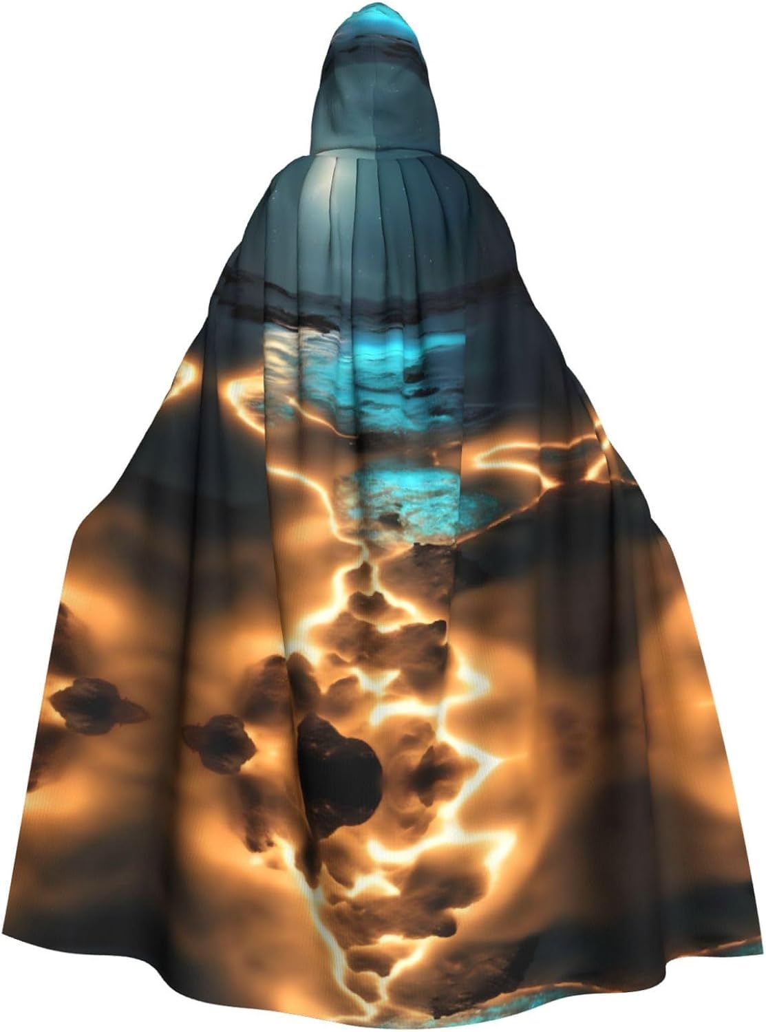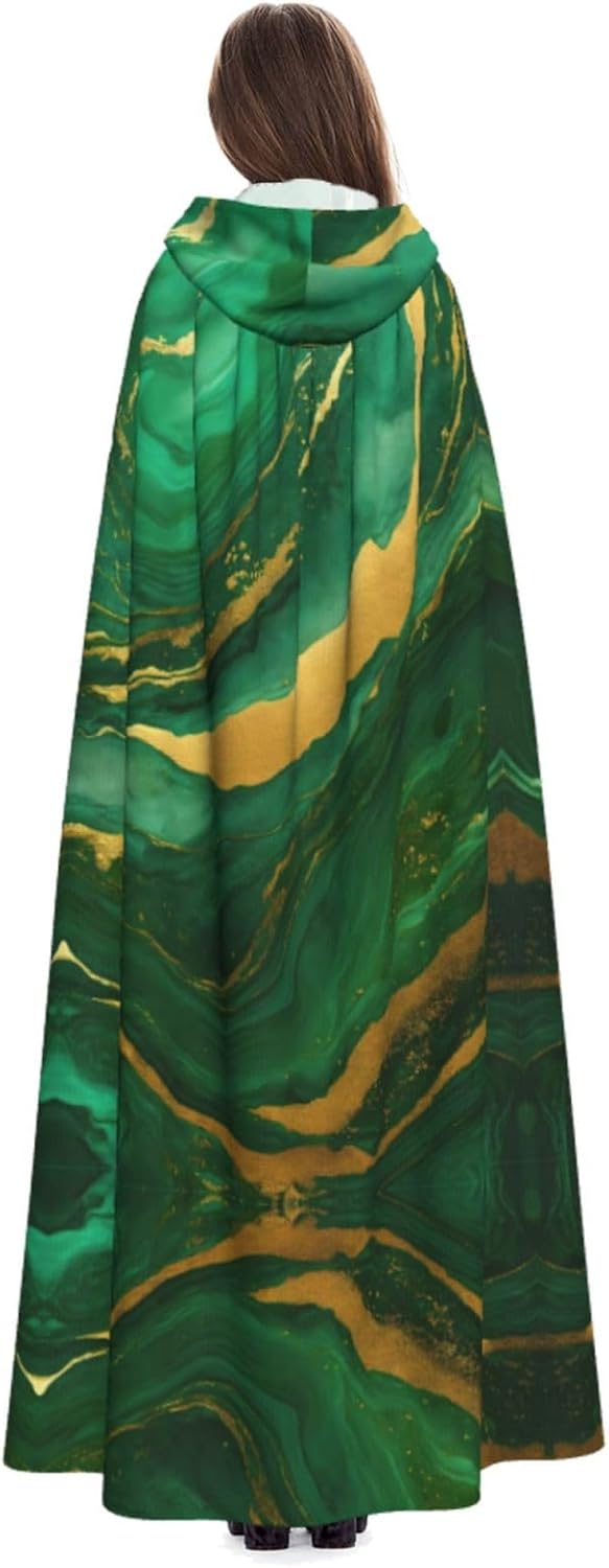Mantello con cappuccio geometrico nero e oro, unisex, per Halloween, Natale, vampiro, mago, costume cosplay