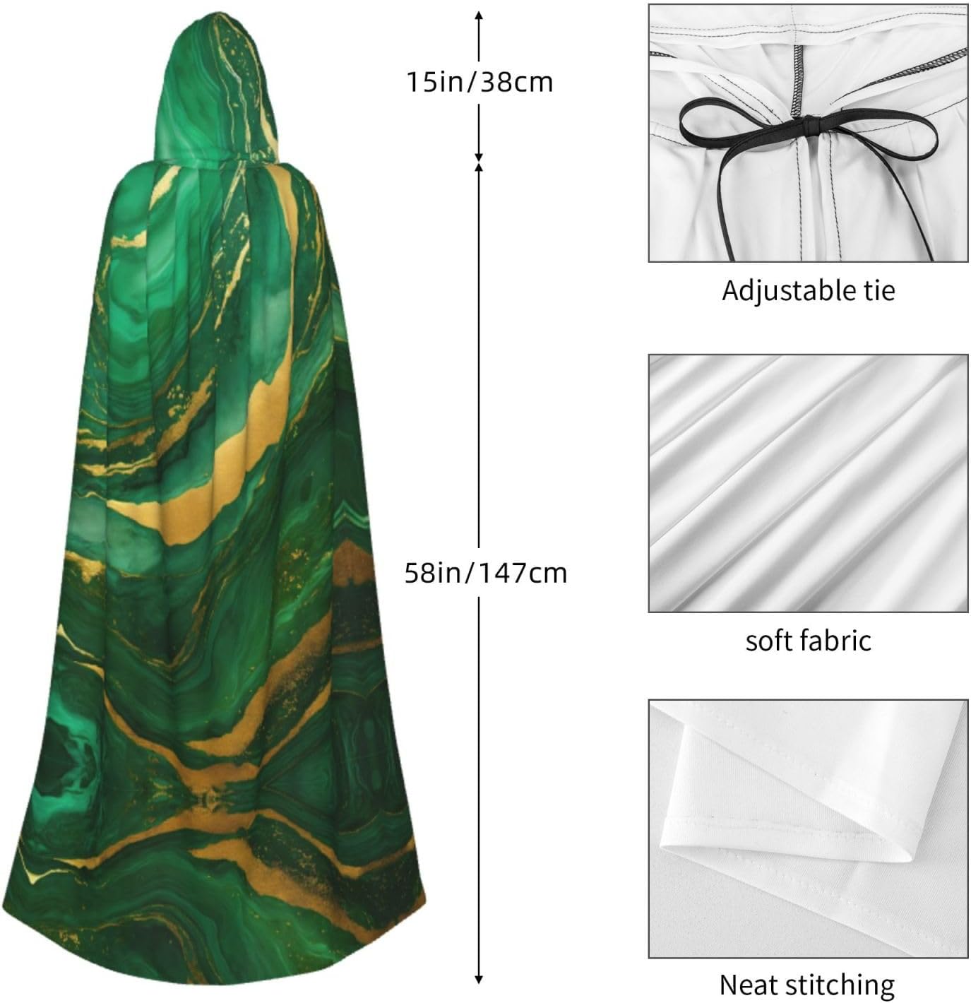 Entra nel mondo della fantasia e dell'incanto con il nostro mantello medievale da donna. Realizzato in fibra di poliestere, questo mantello offre un'esperienza confortevole, perfetto per le tue avventure di ruolo e occasioni di vestire. Misurando con un cappuccio oversize, questo mantello fornisce un look accattivante ed elegante. La cravatta aggiunge un tocco di raffinatezza, mentre l'assenza di una cerniera garantisce comfort tutto il giorno senza alcun disagio comfort O irritazione Che tu stia partecipando a una festa di Halloween, partecipando a un evento cosplay, esibendoti sul palco o partecipando a un incontro a tema, questo mantello è la scelta perfetta. Può anche essere indossato per feste in maschera, balli, convegni di fumetti e molto altro ancora. Lascia correre la tua immaginazione e crea ricordi indimenticabili con questo capo versatile. In termini di cura, questo mantello Può essere facilmente mantenuto Lavabile in lavatrice o a mano. La sua costruzione garantisce una lunga durata, permettendoti di indossarlo per molte occasioni a venire. Sperimenta la magia e il fascino dell'era medievale con il nostro mantello medievale da donna. Abbraccia la tua incantatrice interiore e fai una dichiarazione con questo pezzo elegante e versatile. Aggiungi un tocco di mistero ed eleganza al tuo guardaroba oggi!