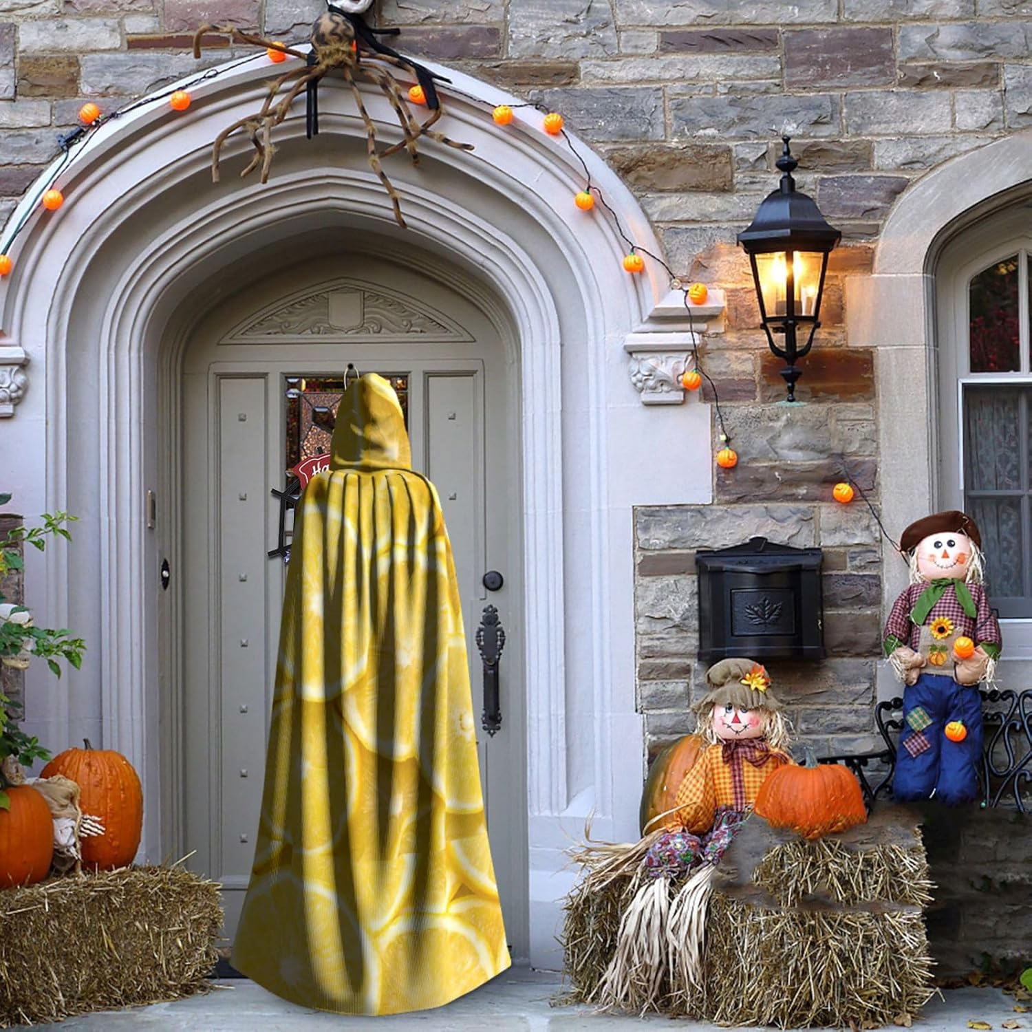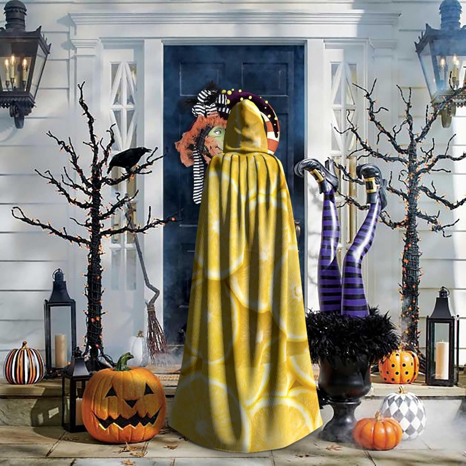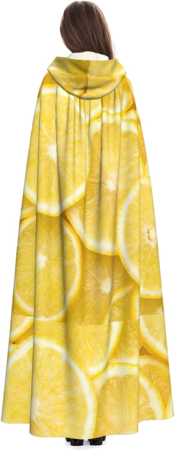 Mantello con cappuccio giallo con stampa limone, per adulti, elegante, per carnevale, feste a tema, cosplay