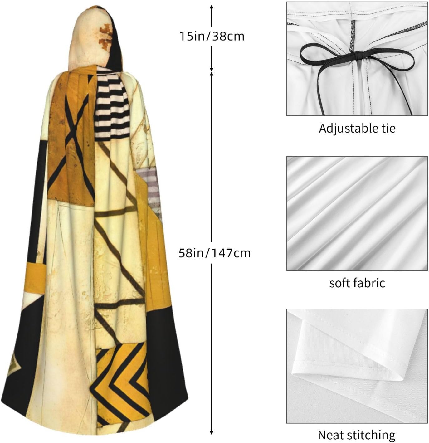 Realizzato in poliestere, questo mantello rustico con stampa in legno è comodo da indossare e senza prurito. Il suo design a tutta lunghezza lo rende una taglia A adatta a tutti per adulti e ragazzi. Distinguiti tra la folla ad Halloween, eventi di gioco di ruolo in costume, feste a tema, o in qualsiasi incontro o carnevale. Con design senza cerniera e colletto annodato, indossabilità è un gioco da ragazzi. Inoltre, è lavabile in lavatrice e facile da mantenere. Abbraccia lo spirito di Halloween con stile con il nostro mantello con cappuccio e fai un aspetto indimenticabile!