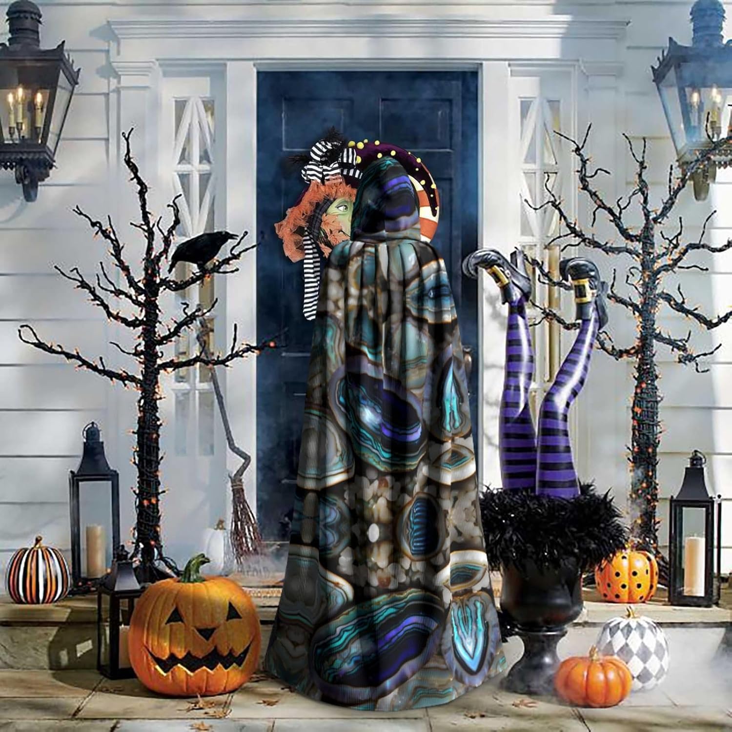 Mantello con cappuccio in madreperla abalone mantello medievale Halloween mantello mago mantello nero costume da strega adulto