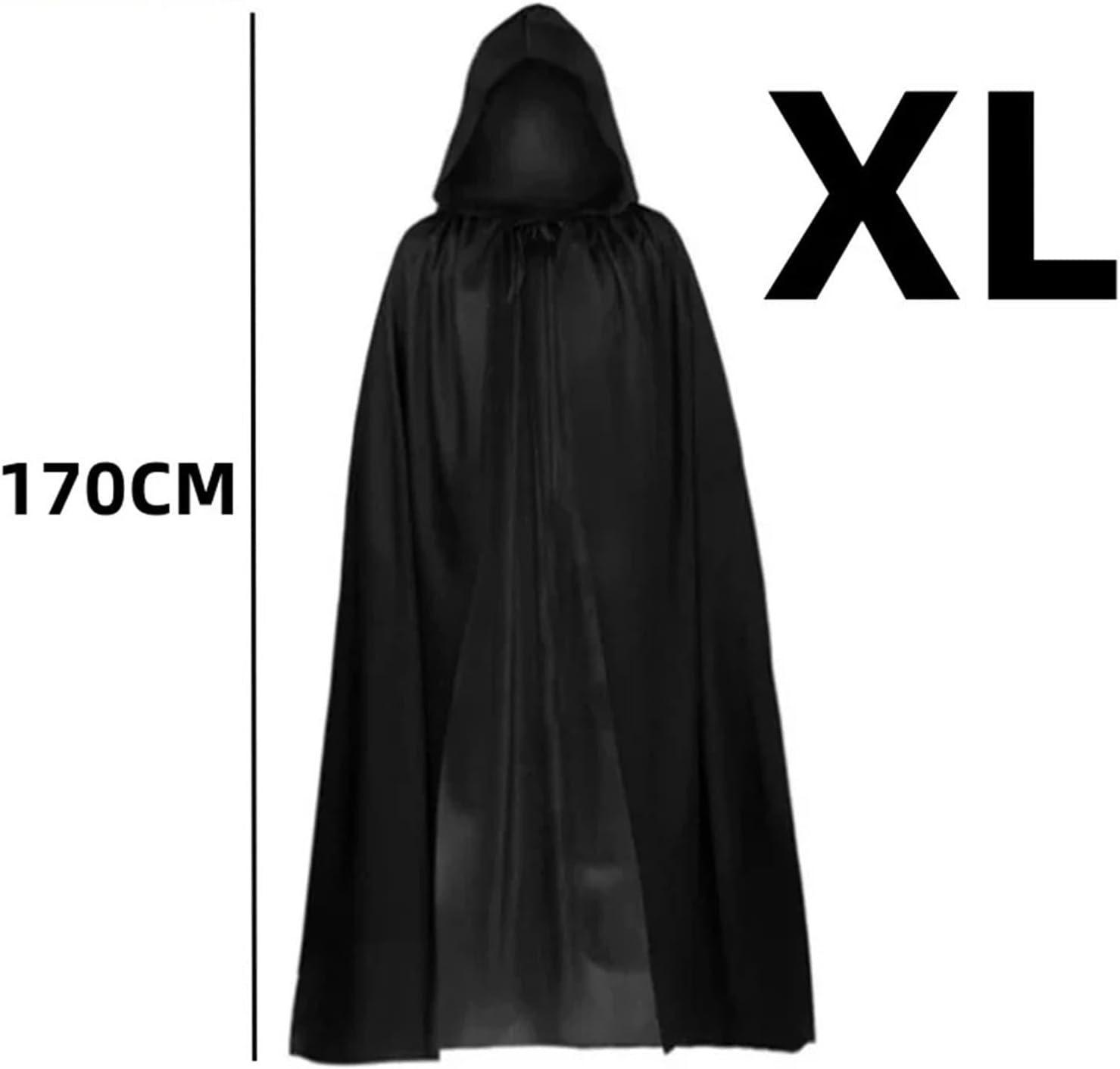 Mantello Con Cappuccio Mantello da travestimento morbido unisex con cappuccio, mantello strega lungo, accessorio for costumi cosplay Per Halloween(Black,M-130cm)