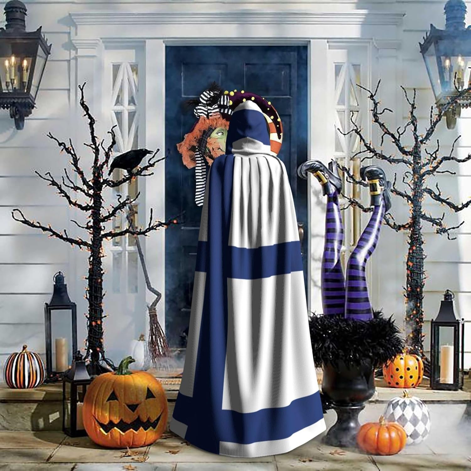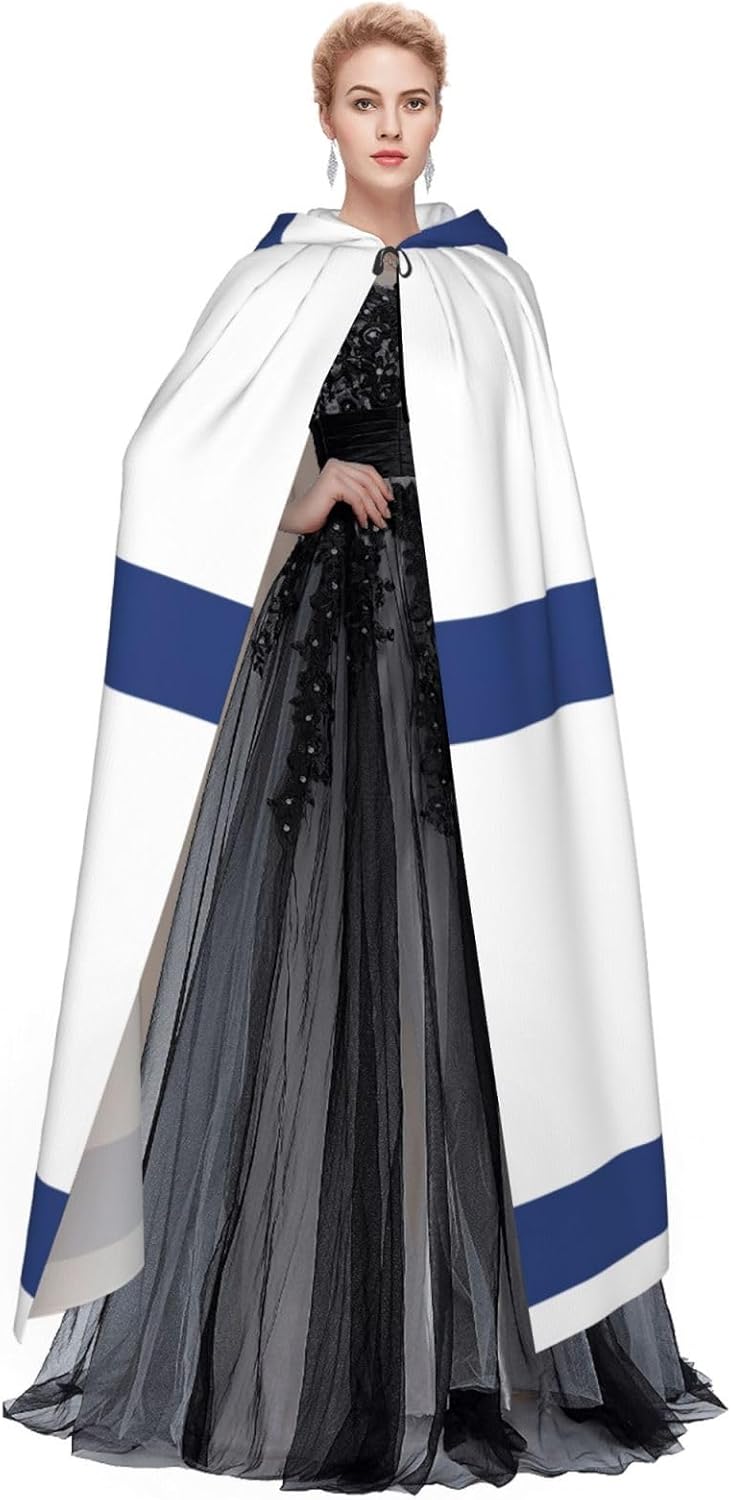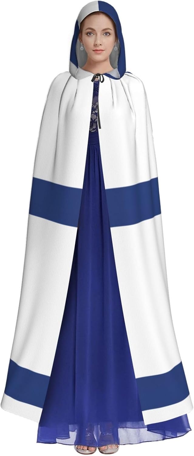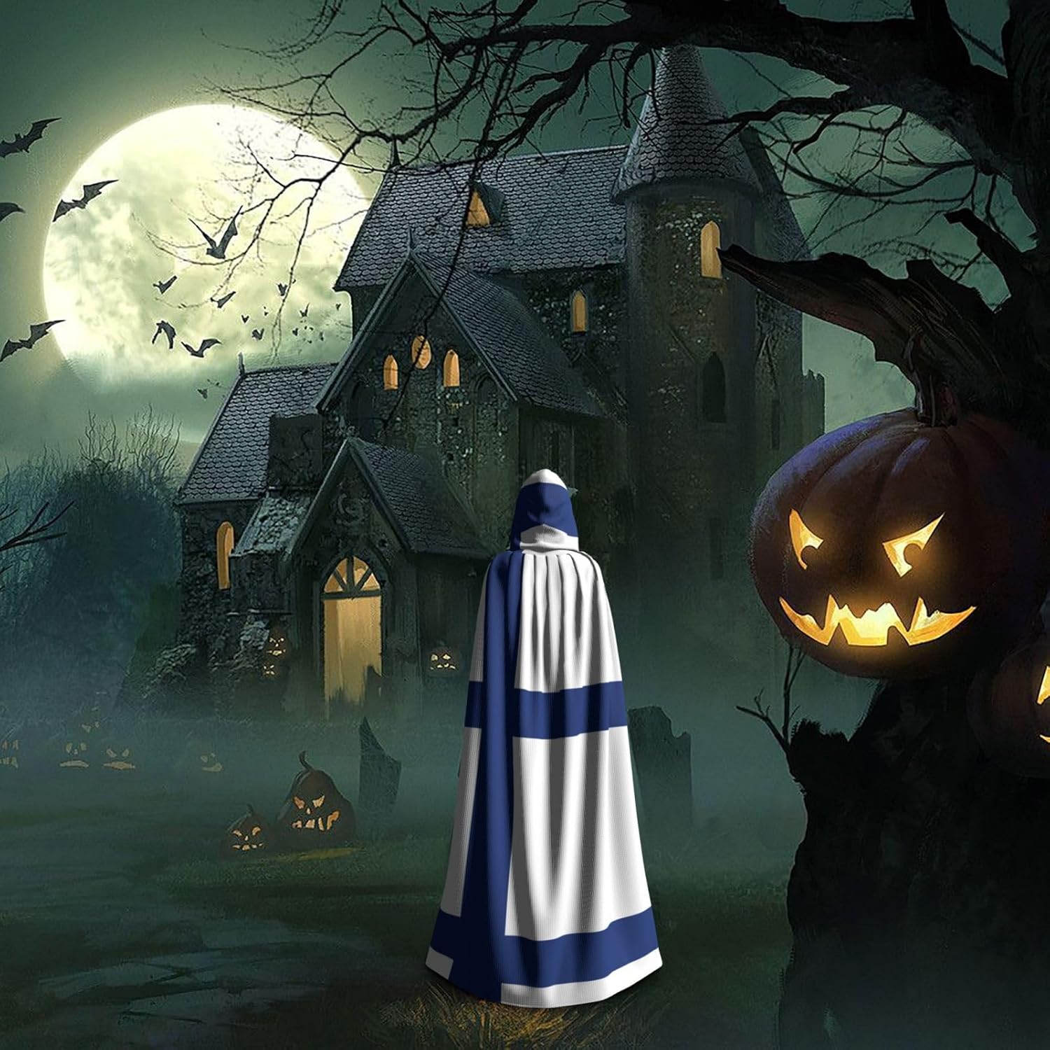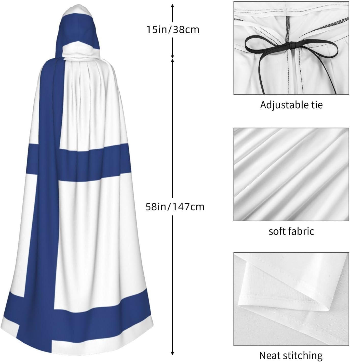 Il mantello con stampa bandiera finlandese con cappuccio da uomo è progettato per fornire stile e comfort. Realizzato in tessuto traspirante e resistente, garantisce un comfort duraturo anche durante lunghi eventi. La chiusura regolabile del collo consente una vestibilità personalizzata, mentre l'orlo fluido lungo fino al pavimento aggiunge eleganza al tuo look. Con una lunghezza del cappuccio di 38,1 cm e una lunghezza del capo di 147,3 cm, questo mantello è l'aggiunta perfetta a qualsiasi cosplay, sia che ti vesti come un re regale, un mitico vampiro o un potente supereroe per Halloween o feste a tema.