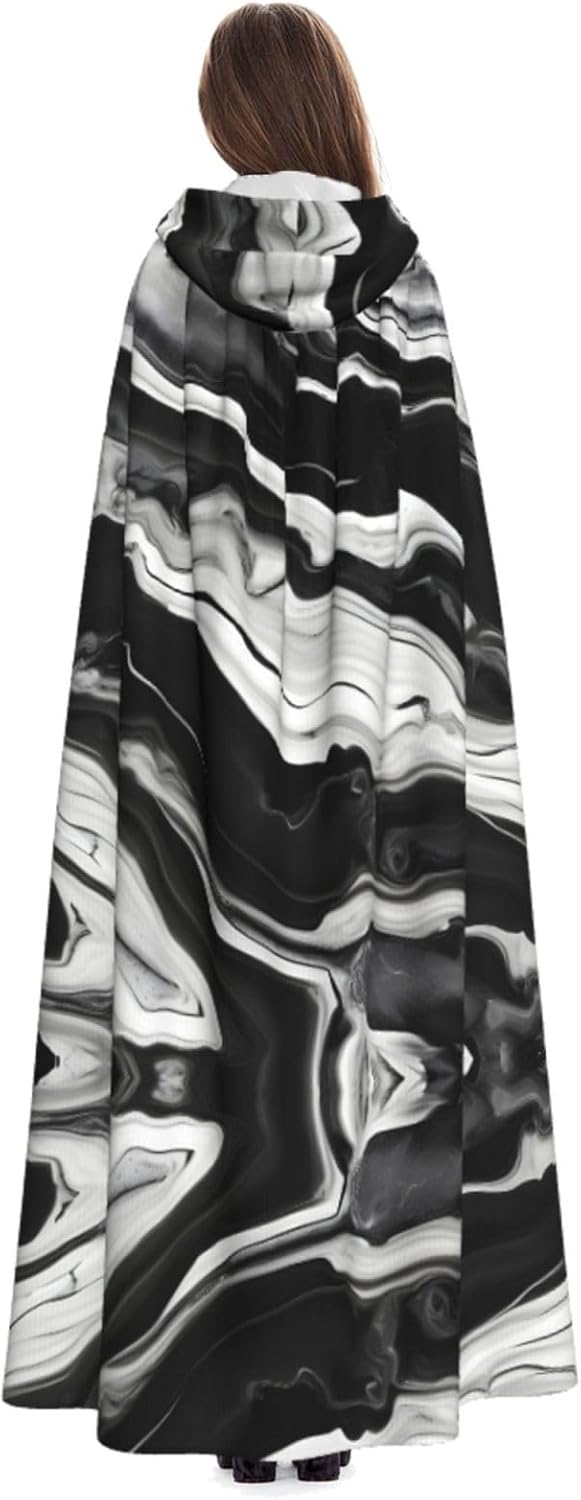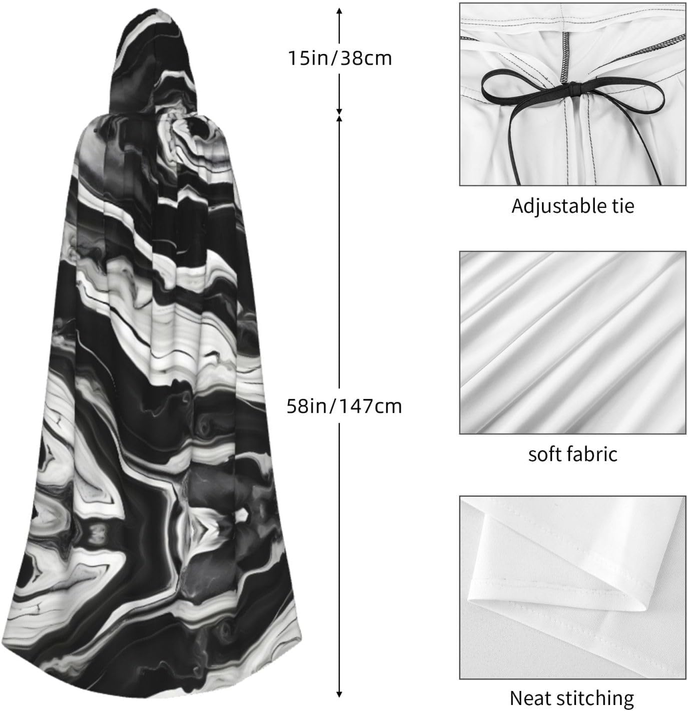 Il mantello con cappuccio per Halloween è realizzato con tessuto in poliestere morbido anche sulla pelle, prevenendo qualsiasi irritazione. Il mantello presenta un ampio cappuccio e uno stile annodato senza cerniere per un design sofisticato ed elegante. Con la sua dimensione universale, offre una copertura completa, adatta a tutti, assicurandoti di distinguerti tra la folla. Questo mantello con stampa in marmo bianco e nero non è solo per Halloween; è abbastanza versatile per cosplay, spettacoli teatrali, balli in maschera, feste a tema e molto altro ancora.