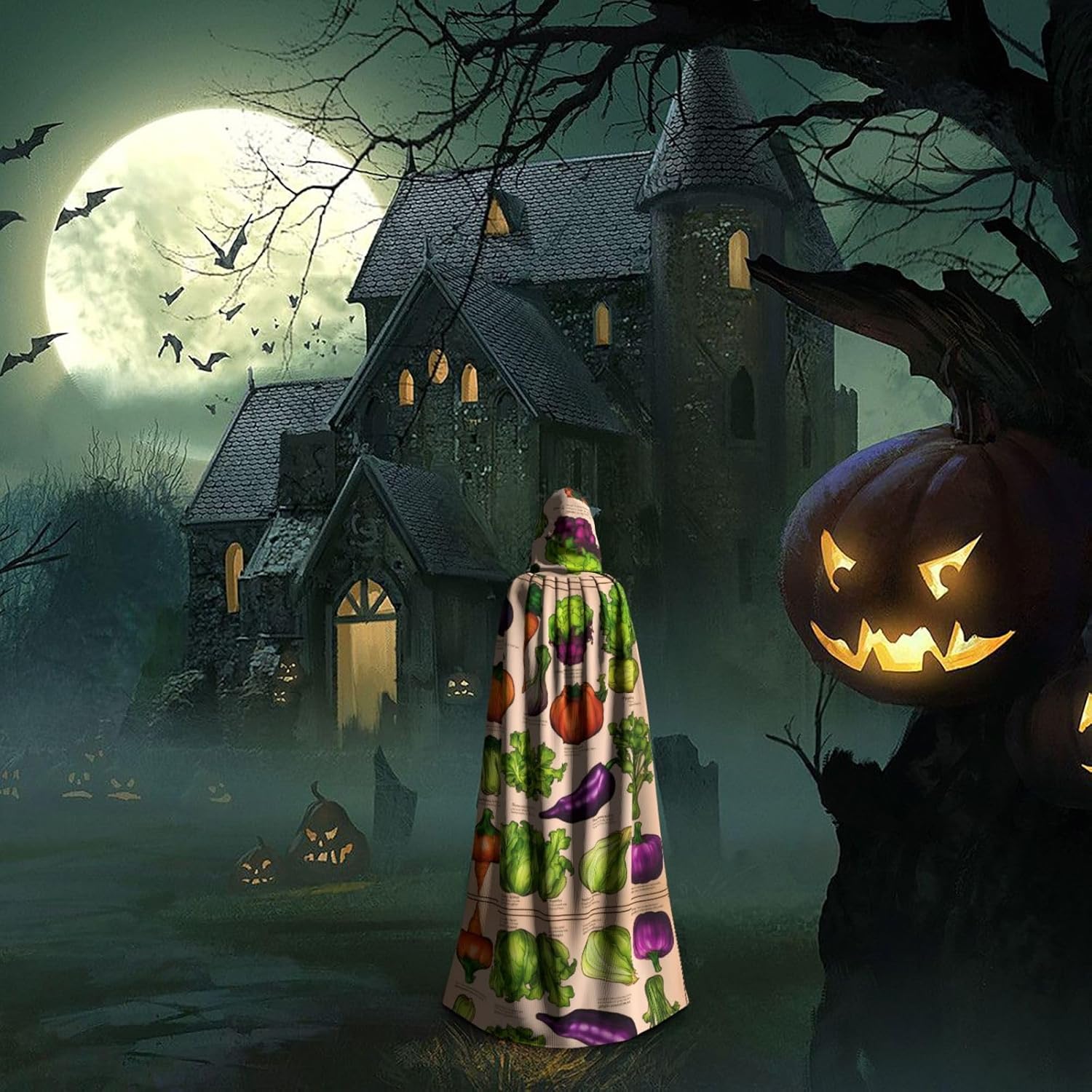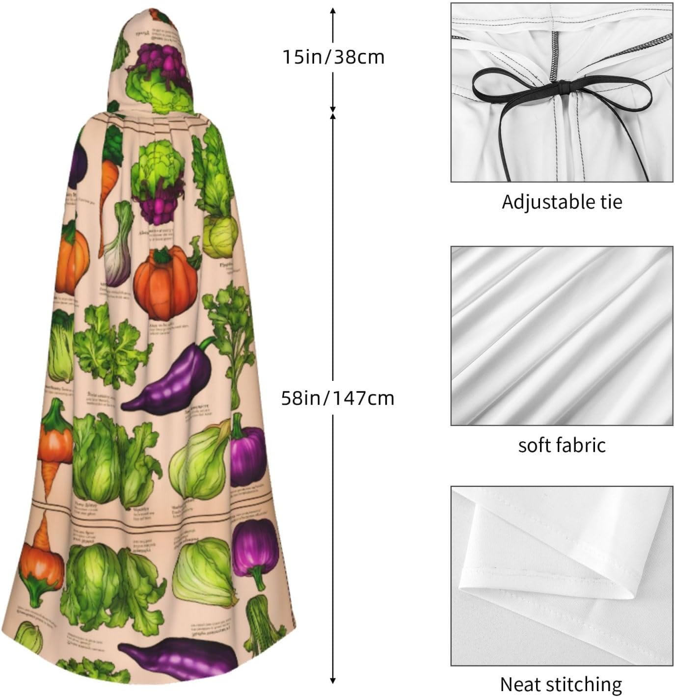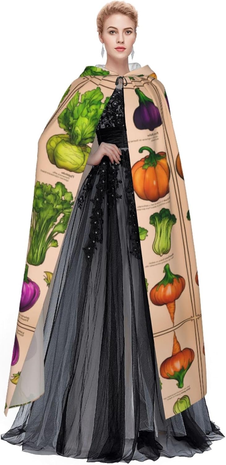 Mantello con cappuccio per frutta e verdura, unisex, per Halloween, Natale, vampiro, stregone, costume cosplay