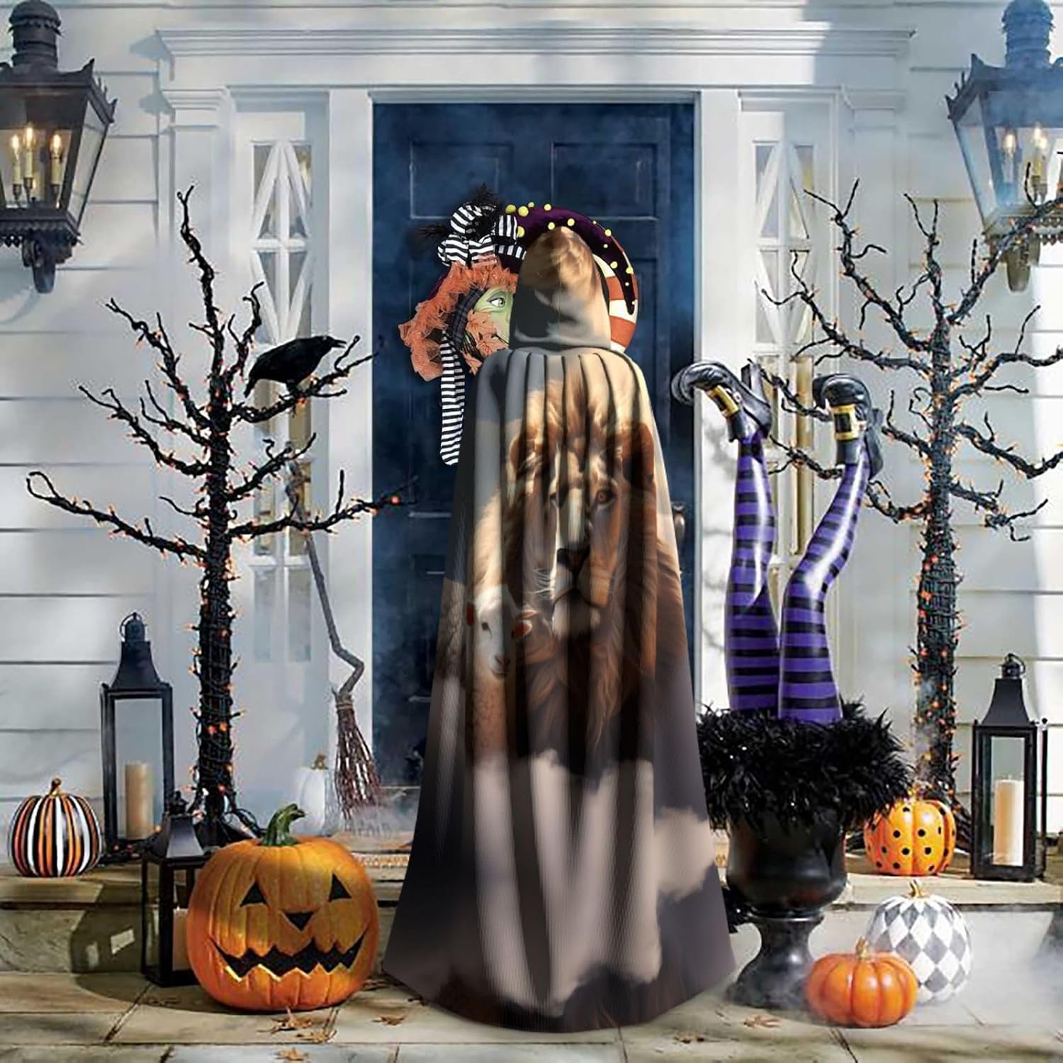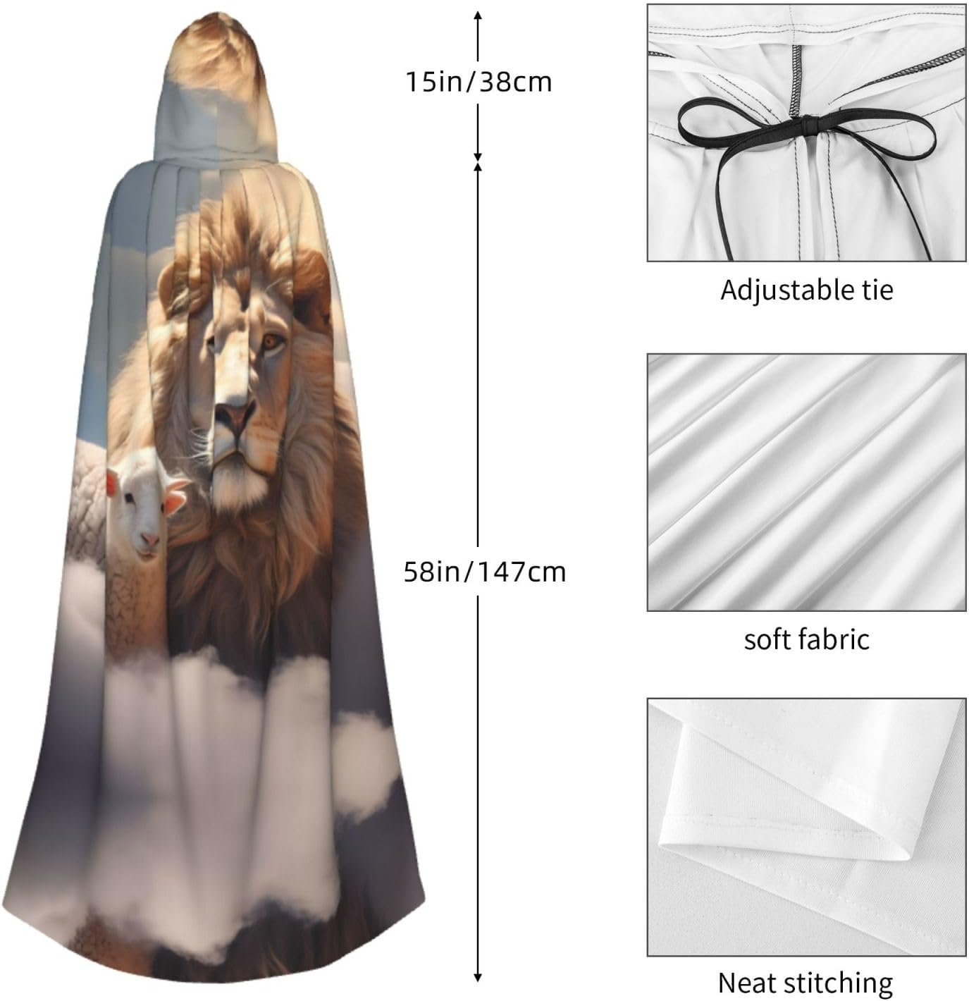 Agnello con un leone sulle nuvole Scatena il tuo Alter Ego con il nostro mantello. Realizzato in 100% poliestere, questo mantello con cappuccio ti offre un'esperienza confortevole e morbida. È facile da indossare e da togliere e non causa alcun fastidio nemmeno sulla pelle. Disponibile in una varietà di dimensioni, questo mantello è perfetto sia per uomini che per donne. Il grande cappello non rovinerà la tua acconciatura e aggiungerà un senso di mistero al tuo costume. Questo mantello nero è versatile e può essere indossato per una varietà di occasioni. È anche facile da pulire, basta lavare a mano in acqua fredda. Evitare di lavare con altri colori e non candeggiare o stirare. Appendere ad asciugare.