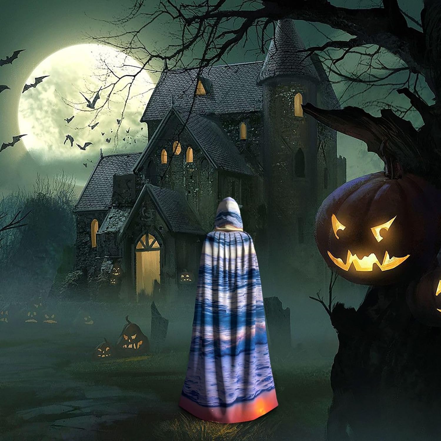 Il mantello con cappuccio per Halloween è realizzato con tessuto in poliestere morbido anche sulla pelle, prevenendo qualsiasi irritazione. Il mantello presenta un ampio cappuccio e uno stile annodato senza cerniere per un design sofisticato ed elegante. Con la sua dimensione universale, offre una copertura completa, adatta a tutti, assicurandoti di distinguerti tra la folla. Questo mantello con stampa a onde oceaniche al tramonto sulla spiaggia non è solo per Halloween; è abbastanza versatile per cosplay, spettacoli teatrali, balli in maschera, feste a tema e molto altro ancora.