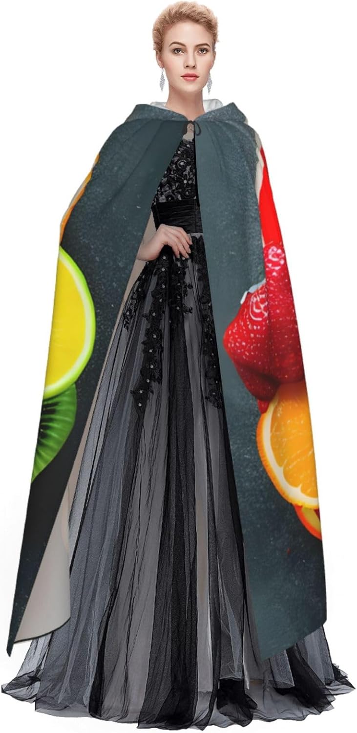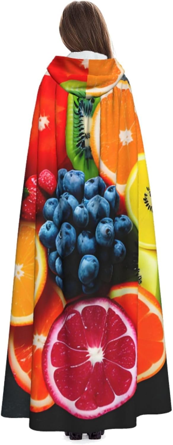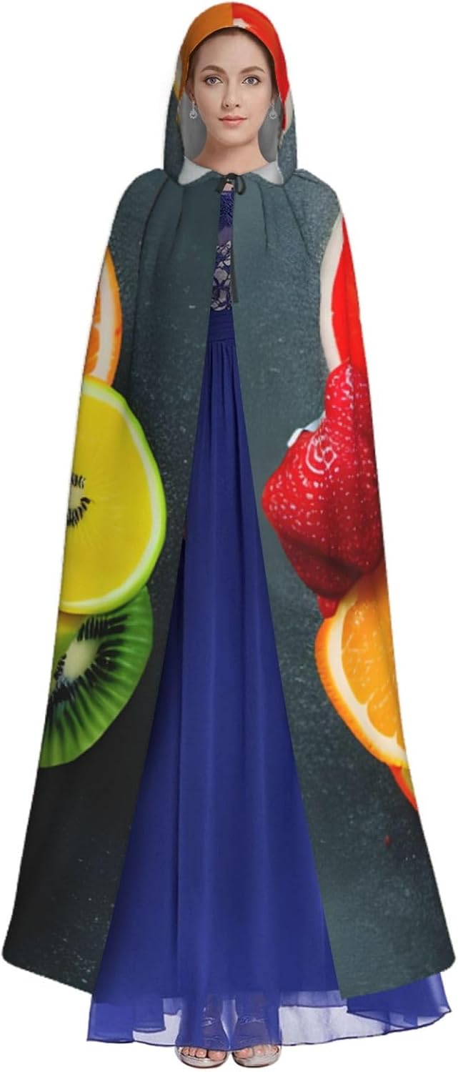 Ruba lo spettacolo a qualsiasi evento di Halloween o a tema con il nostro mantello con cappuccio. Realizzato con un tessuto confortevole, non pruriginoso, questo mantello con stampa arcobaleno di frutta è progettato per assicurarti di distinguerti tra la folla. Il mantello è facile da indossare e togliere, grazie alla cravatta e all'assenza di una cerniera. Con un design facile da pulire, può essere lavato in lavatrice o a mano per garantire che sia sempre pronto per il tuo prossimo evento. Prova la perfetta miscela di comfort, stile e versatilità con il nostro mantello con cappuccio.