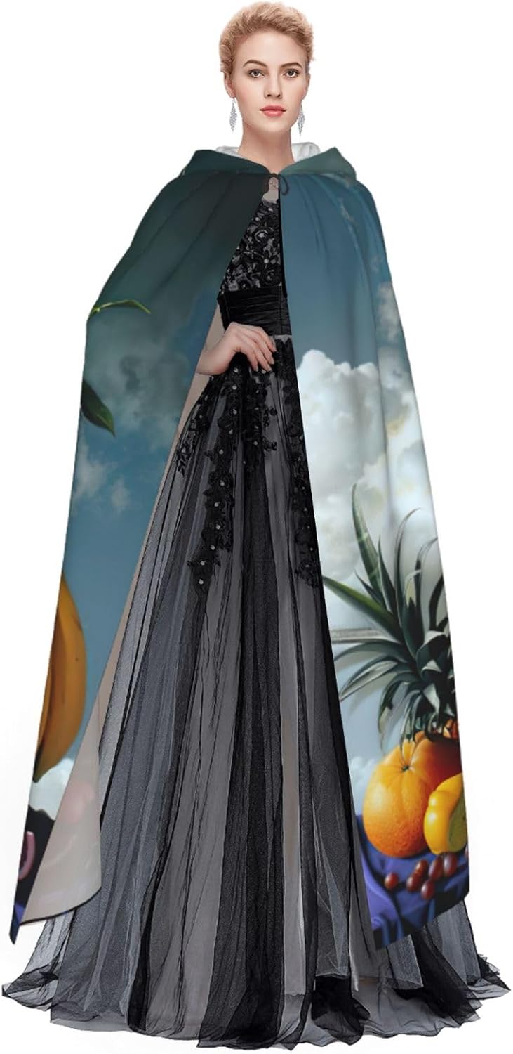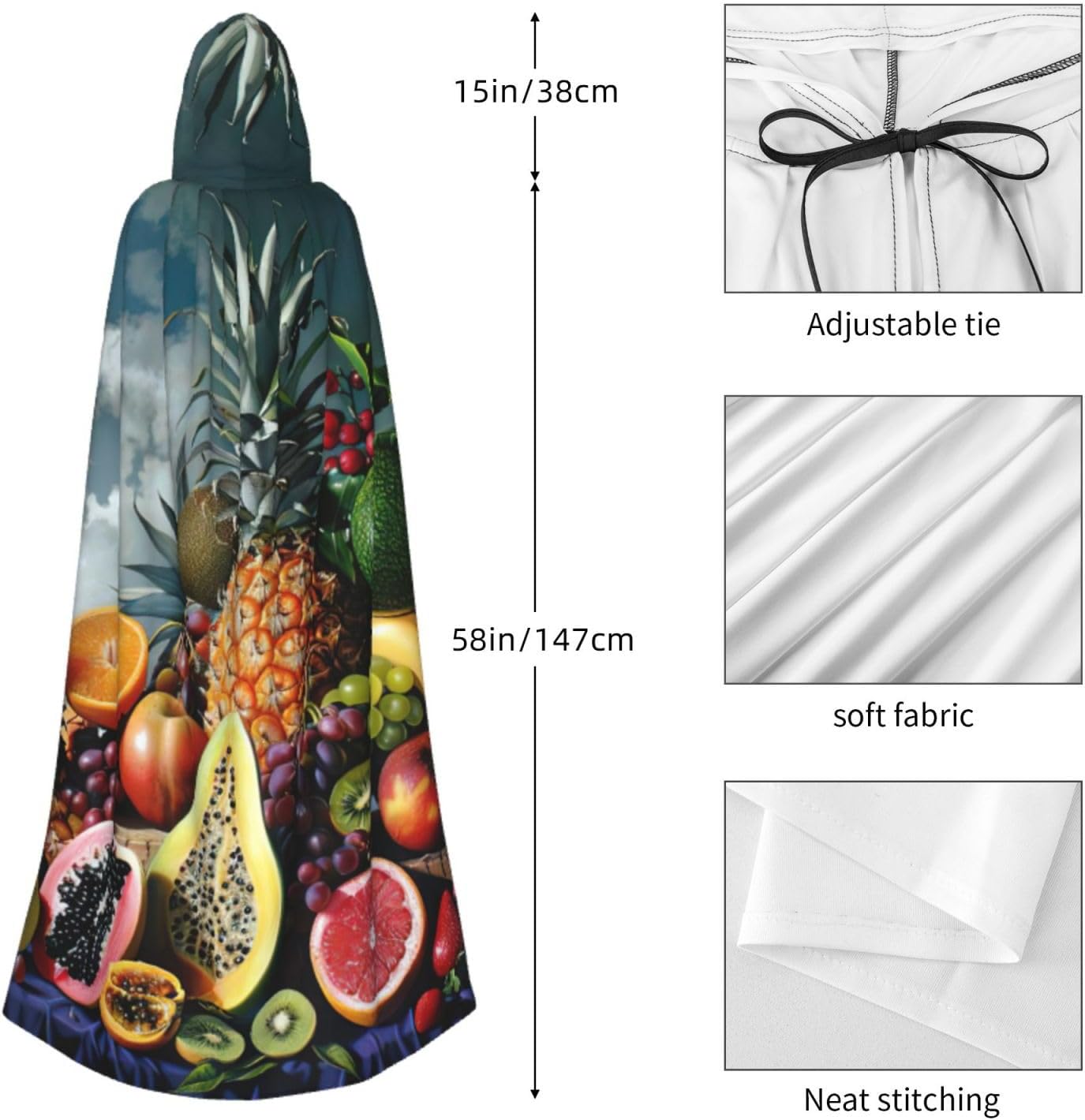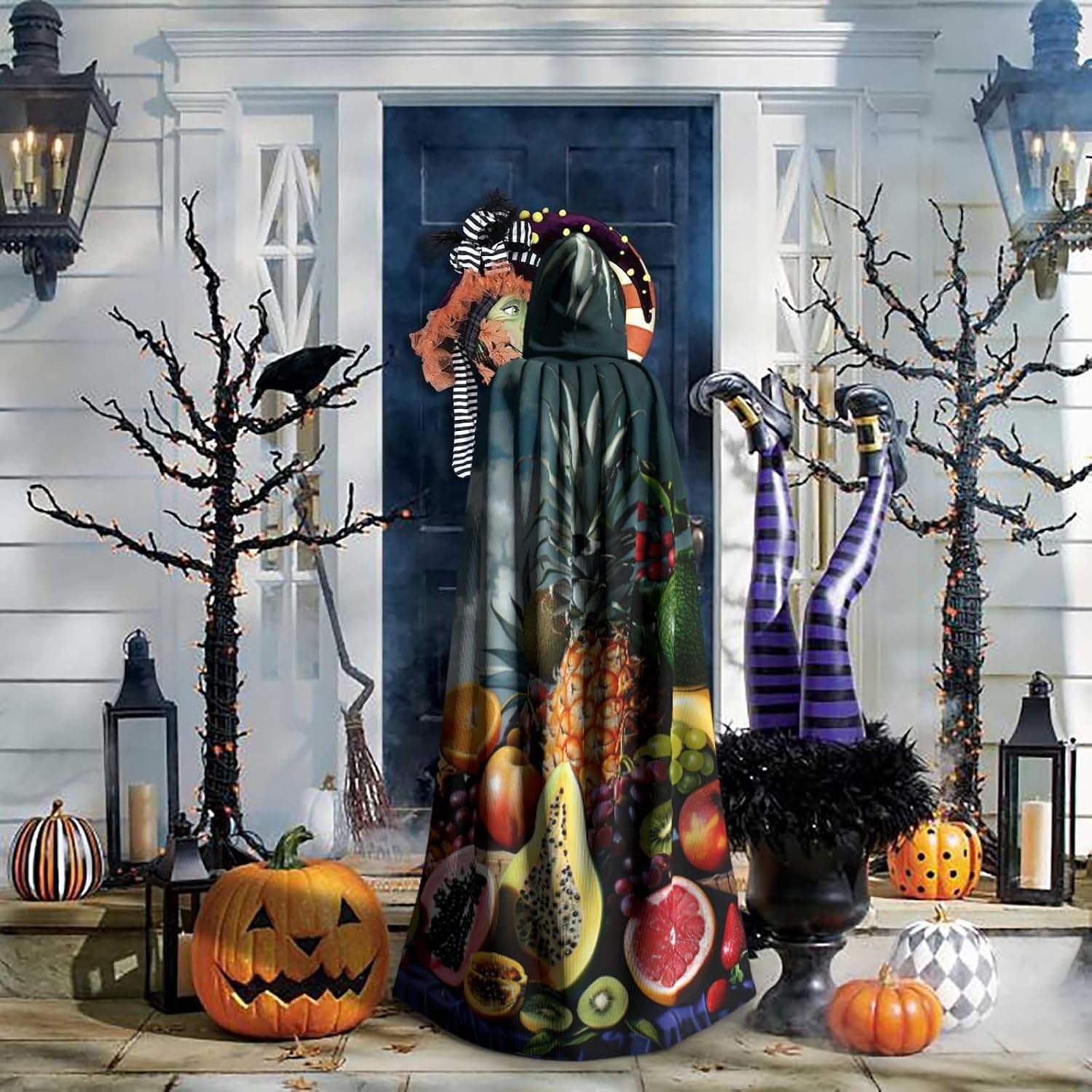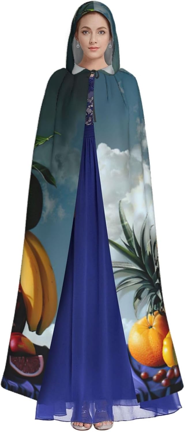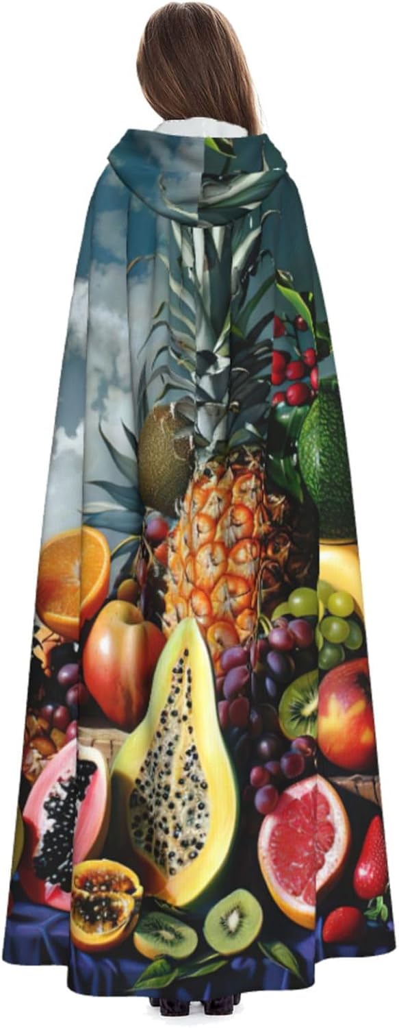 Ruba lo spettacolo a qualsiasi evento di Halloween o a tema con il nostro mantello con cappuccio. Realizzato con un tessuto confortevole, non pruriginoso, questo mantello con stampa di frutta tropicale è progettato per assicurarti di distinguerti tra la folla. Il mantello è facile da indossare e togliere, grazie alla cravatta e all'assenza di una cerniera. Con un design facile da pulire, può essere lavato in lavatrice o a mano per garantire che sia sempre pronto per il tuo prossimo evento. Prova la perfetta miscela di comfort, stile e versatilità con il nostro mantello con cappuccio.