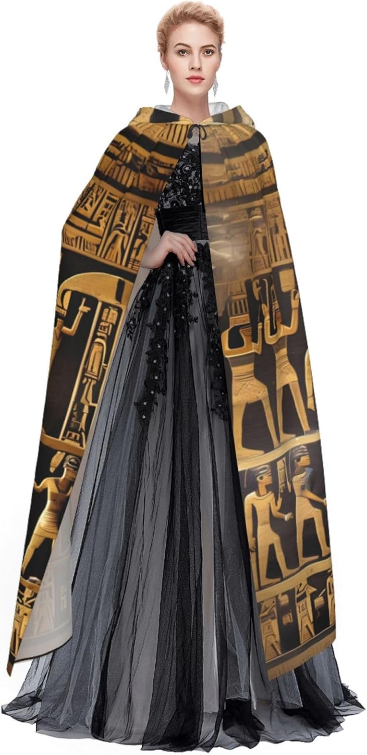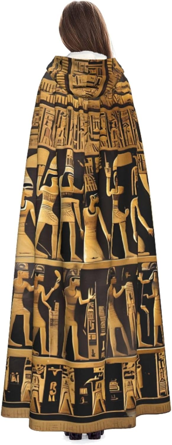 Realizzato in poliestere, questo mantello con stampa geroglifica egiziana con cappuccio garantisce longevità e comfort. Le sue dimensioni ottimali assicurano una copertura completa per tutte le età, facendoti risaltare in qualsiasi evento. Che tu sia diretto per Halloween, un evento cosplay, un costume da palcoscenico, una festa in maschera, una festa a tema, un ballo o una convention di fumetti, questo mantello è una scelta ideale. Il suo design unico, completo di un grande cappuccio e cravatte collare. Inoltre, puoi dire addio ai metodi di pulizia complicati. Questo mantello con cappuccio con stampa geroglifica egiziana è lavabile in lavatrice e a mano, offrendo una cura senza sforzo. Esci con stile e comfort con il nostro mantello con cappuccio, il tuo compagno per tutti gli eventi e le occasioni.