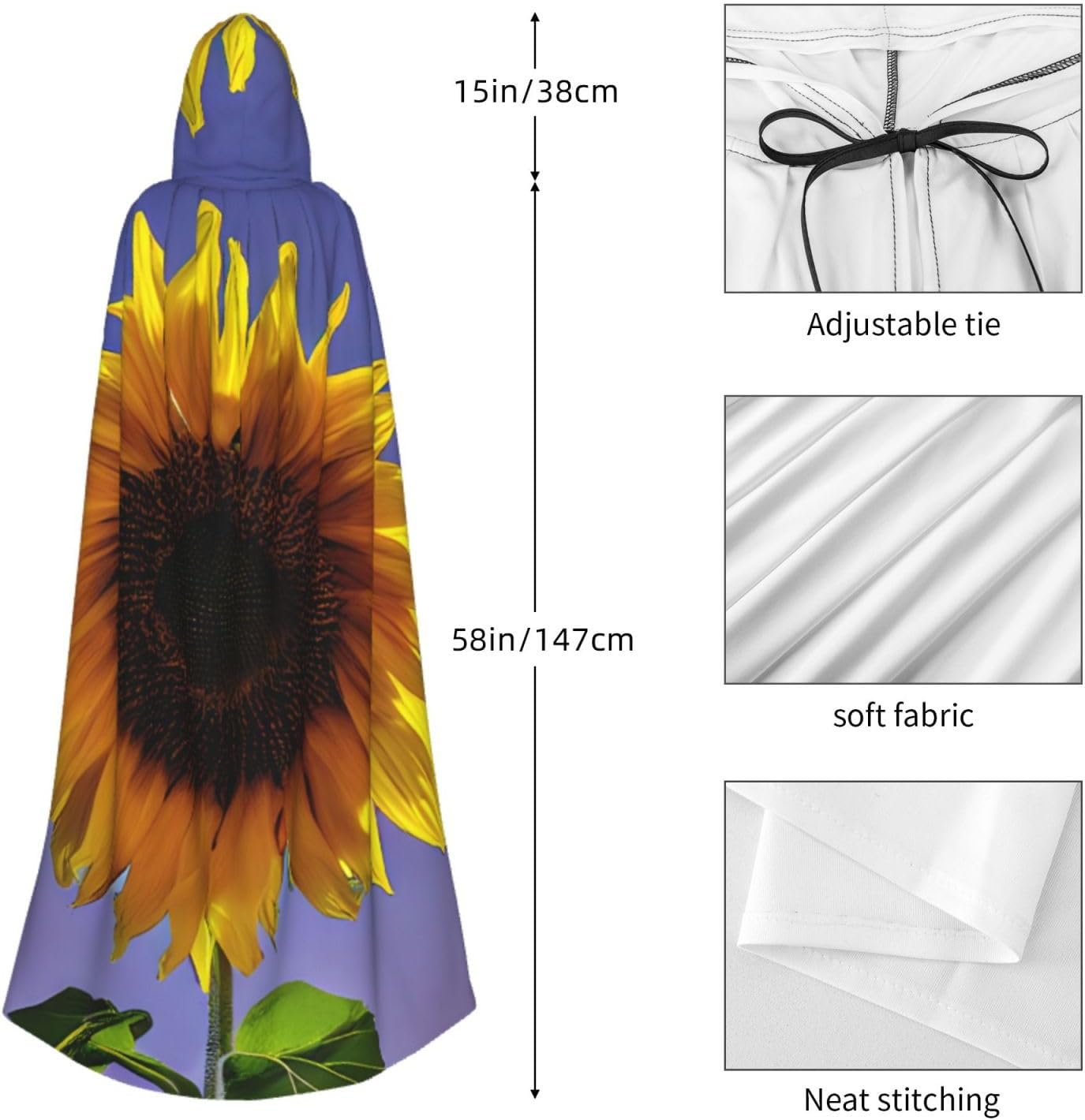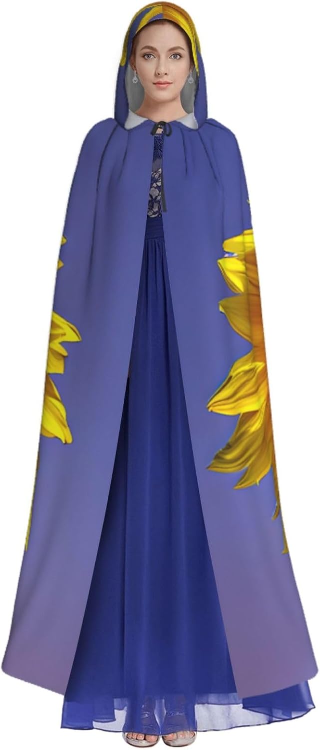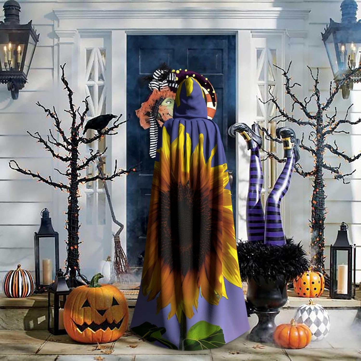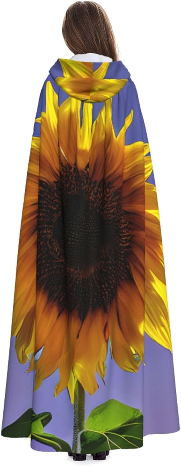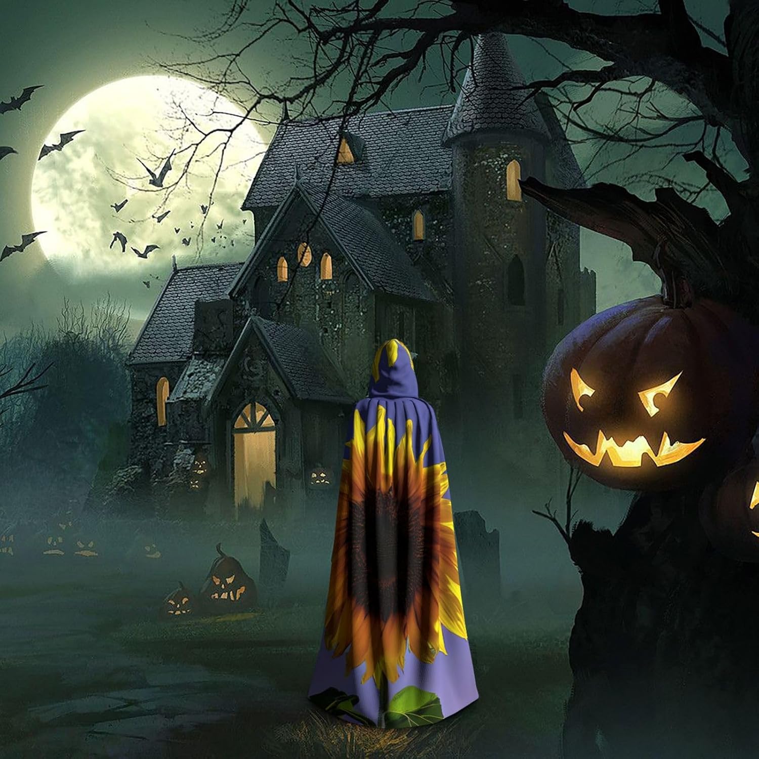 Ruba lo spettacolo a qualsiasi evento di Halloween o a tema con il nostro mantello con cappuccio. Realizzato con un tessuto confortevole e non pruriginoso, questo mantello con stampa di girasoli è progettato per assicurarti di distinguerti tra la folla. Il mantello è facile da indossare e togliere, grazie alla cravatta e all'assenza di una cerniera. Con un design facile da pulire, può essere lavato in lavatrice o a mano per garantire che sia sempre pronto per il tuo prossimo evento. Prova la perfetta miscela di comfort, stile e versatilità con il nostro mantello con cappuccio.