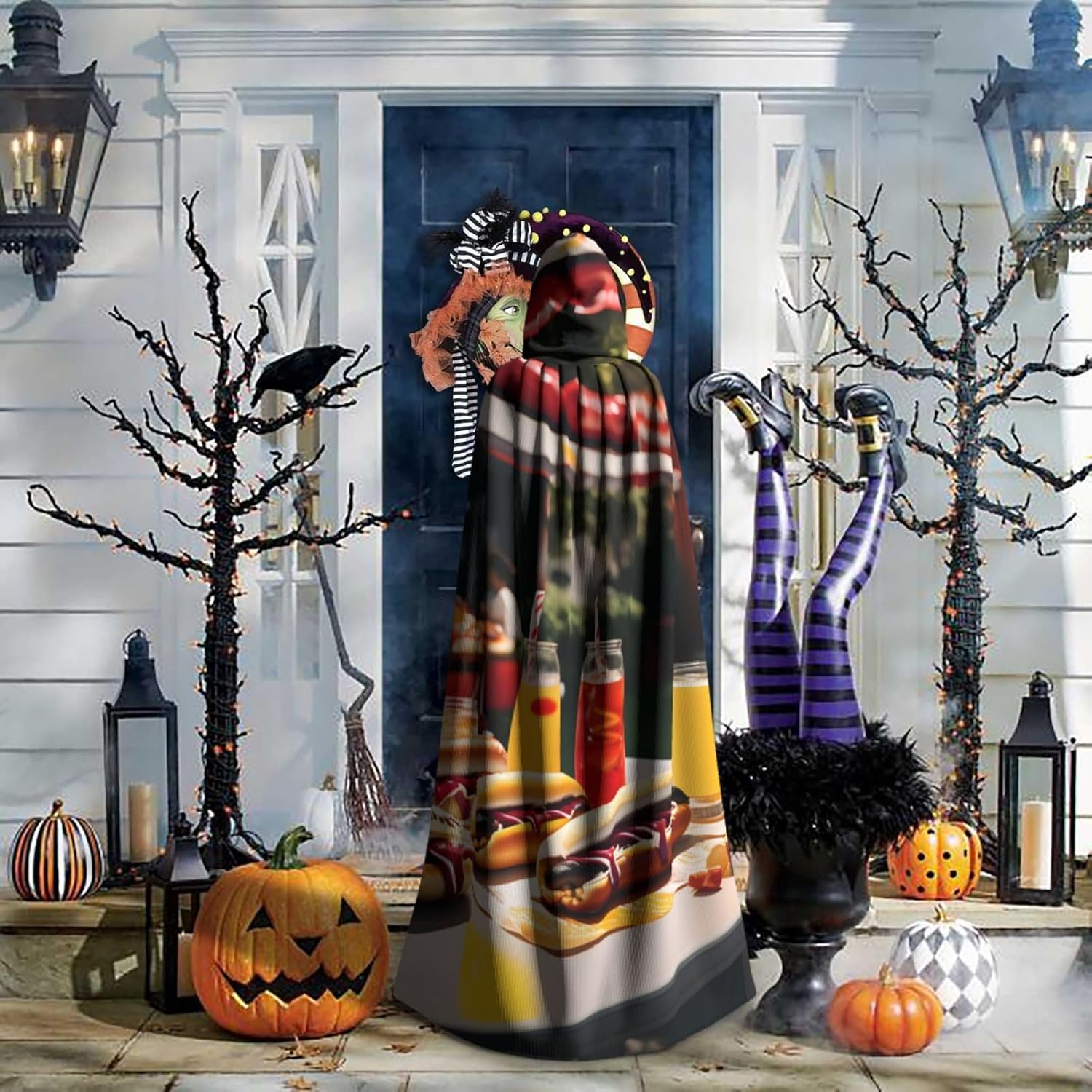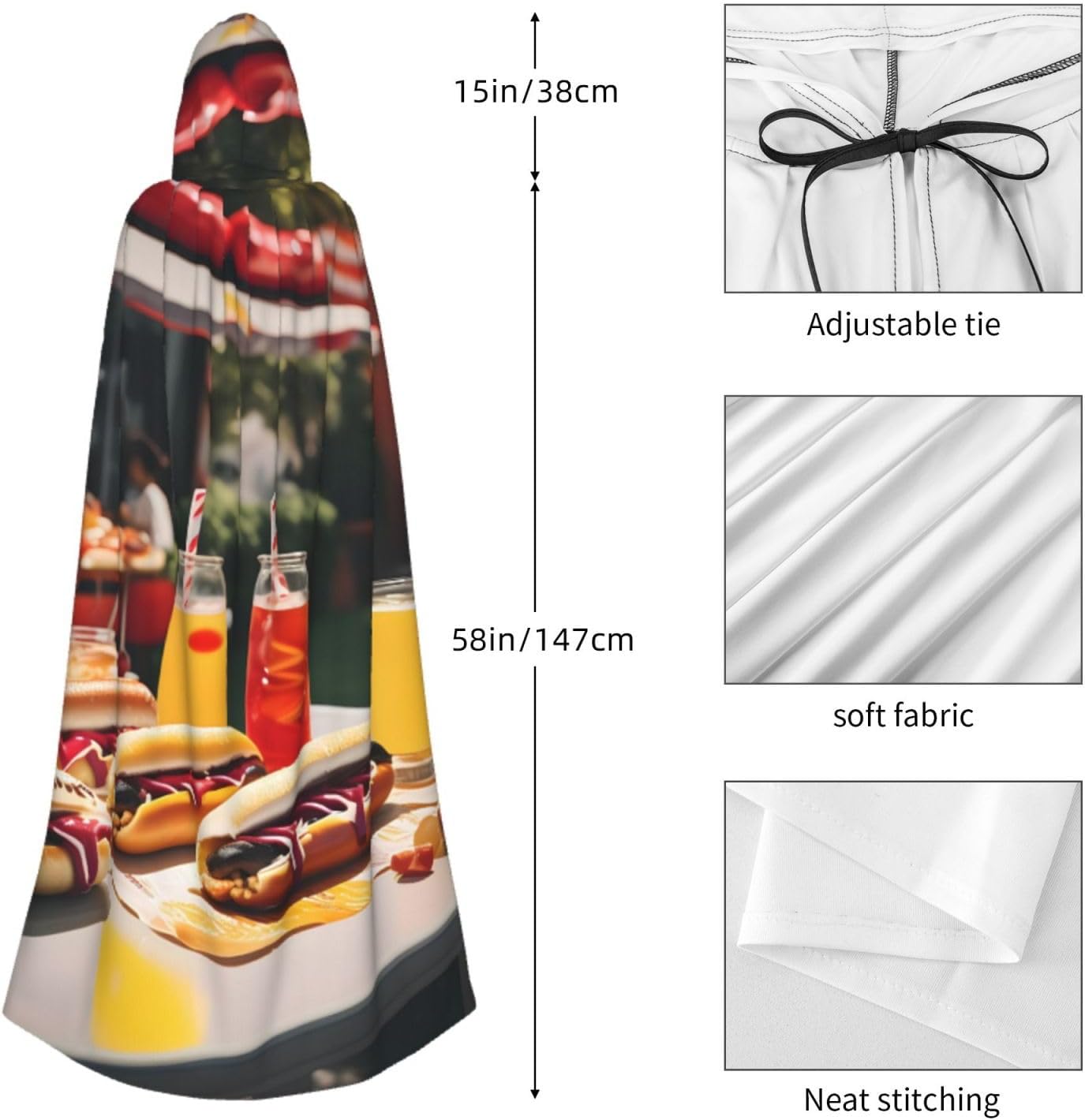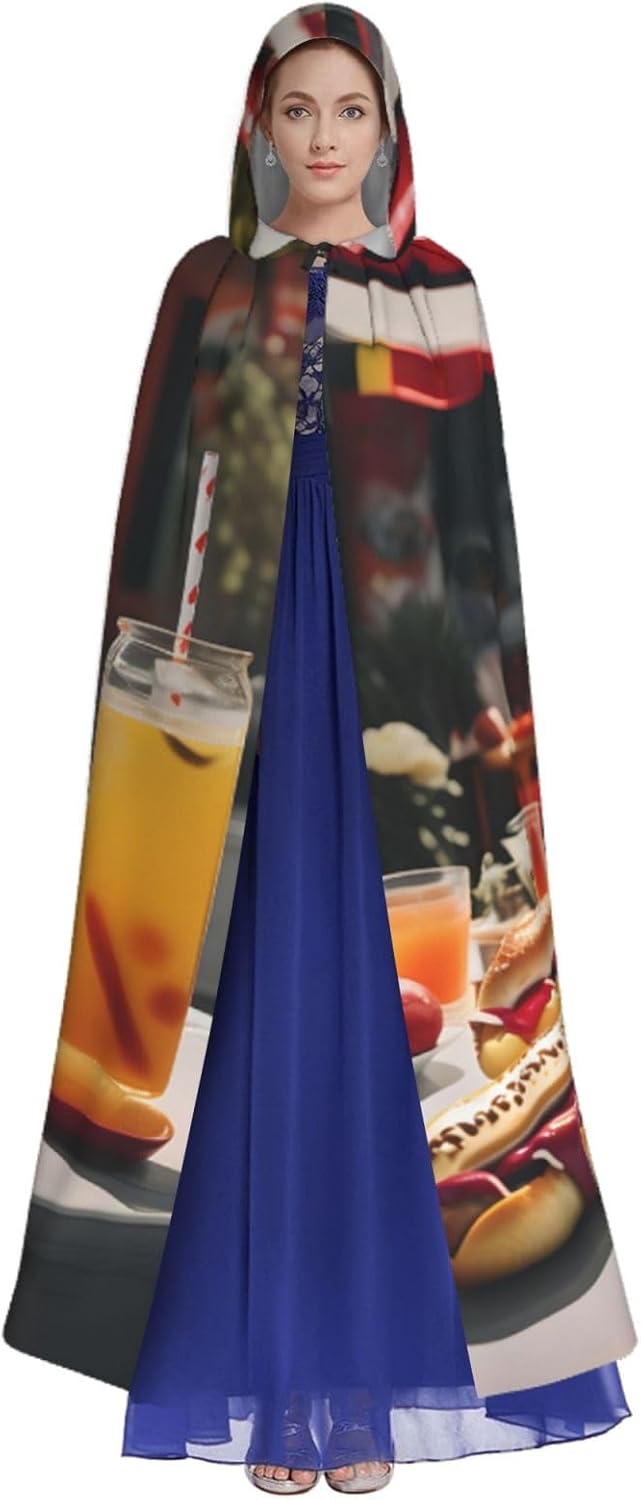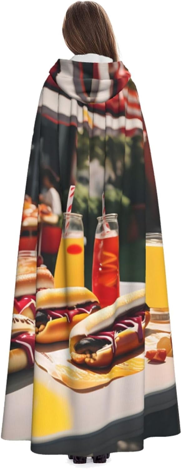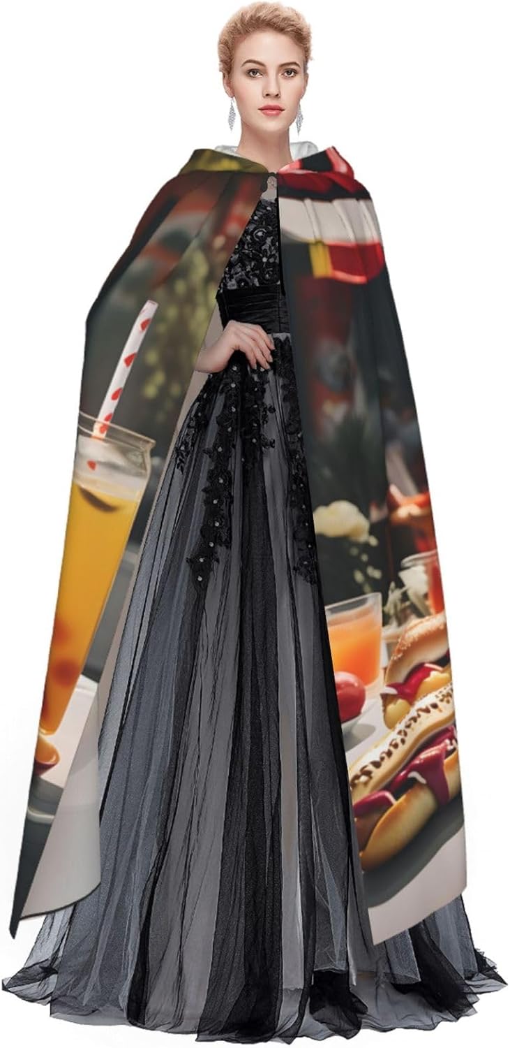 Ruba lo spettacolo a qualsiasi evento di Halloween o a tema con il nostro mantello con cappuccio. Realizzato con un tessuto confortevole, non prurito, questo mantello con stampa hot dog e limonata è progettato per assicurarti di distinguerti tra la folla. Il mantello è facile da indossare e togliere, grazie alla cravatta e all'assenza di una cerniera. Con un design facile da pulire, può essere lavato in lavatrice o a mano per garantire che sia sempre pronto per il tuo prossimo evento. Prova la perfetta miscela di comfort, stile e versatilità con il nostro mantello con cappuccio.