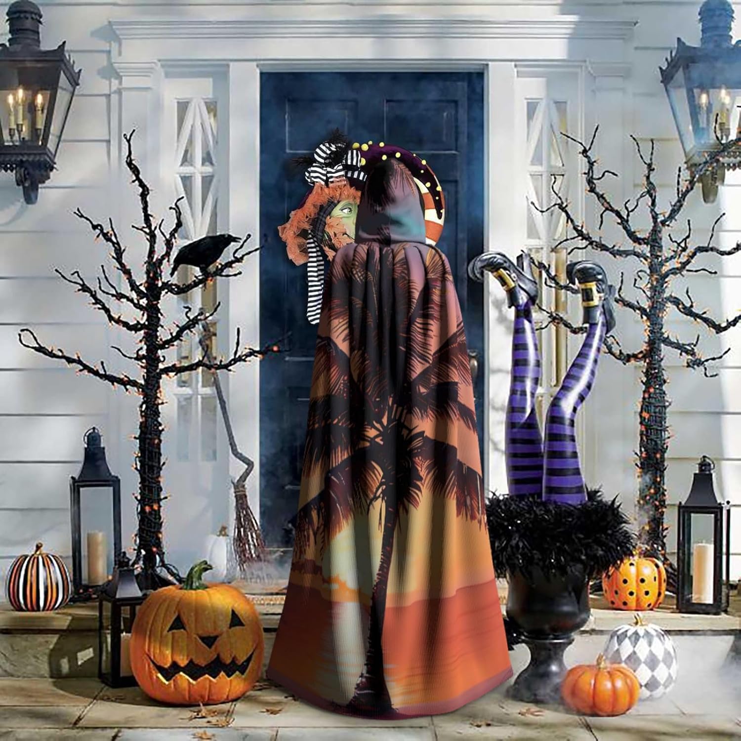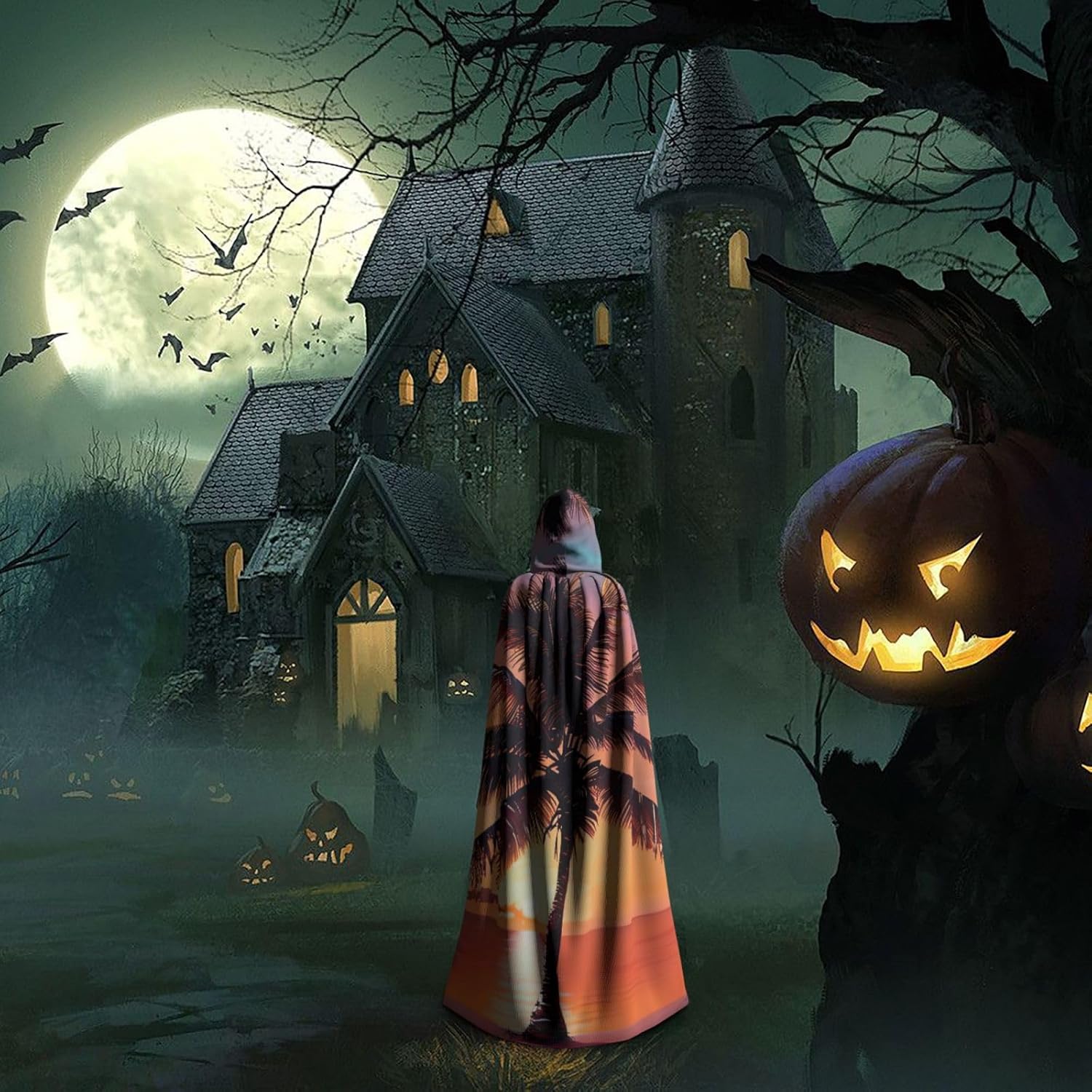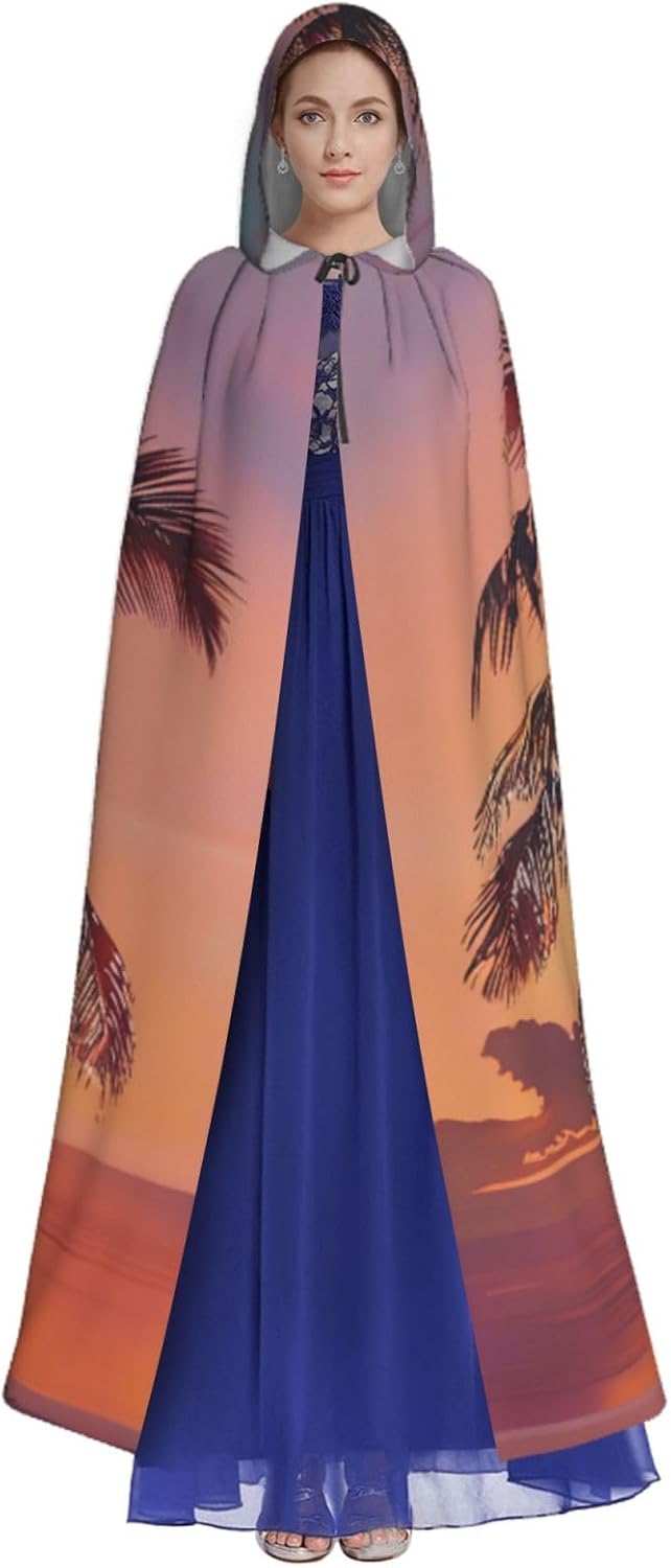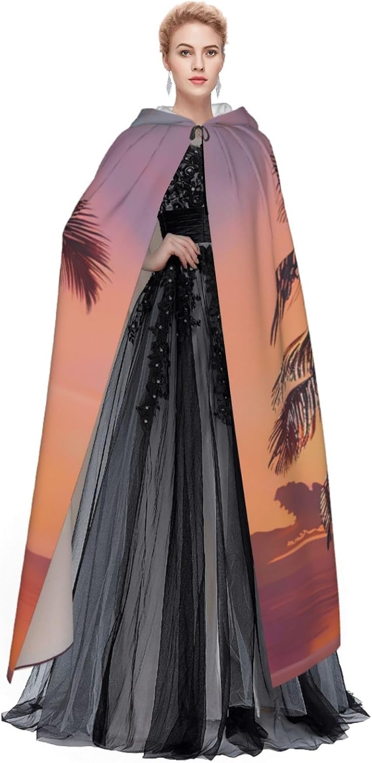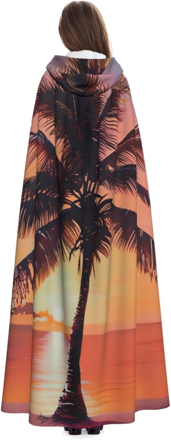 Ruba lo spettacolo a qualsiasi evento di Halloween o a tema con il nostro mantello con cappuccio. Realizzato con un tessuto confortevole, non pruriginoso, questo mantello con stampa di palme tramonto è progettato per assicurarti di distinguerti tra la folla. Il mantello è facile da indossare e togliere, grazie alla cravatta e all'assenza di una cerniera. Con un design facile da pulire, può essere lavato in lavatrice o a mano per garantire che sia sempre pronto per il tuo prossimo evento. Prova la perfetta miscela di comfort, stile e versatilità con il nostro mantello con cappuccio.