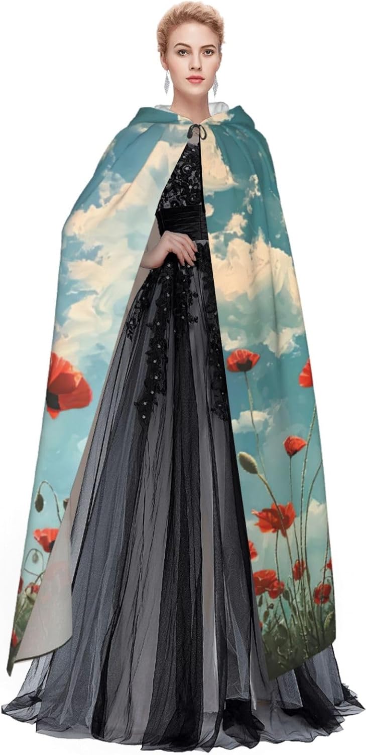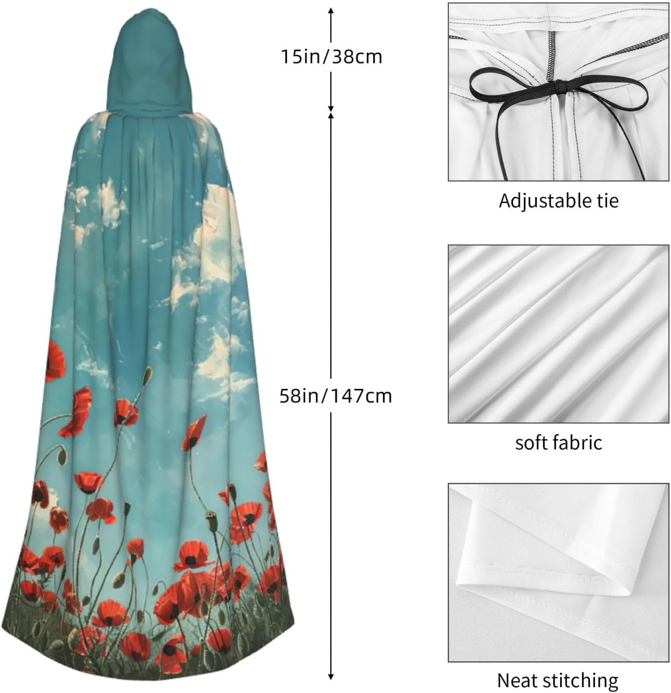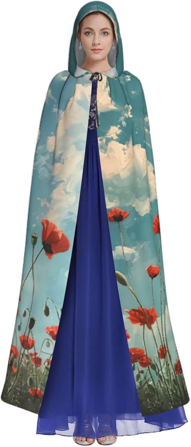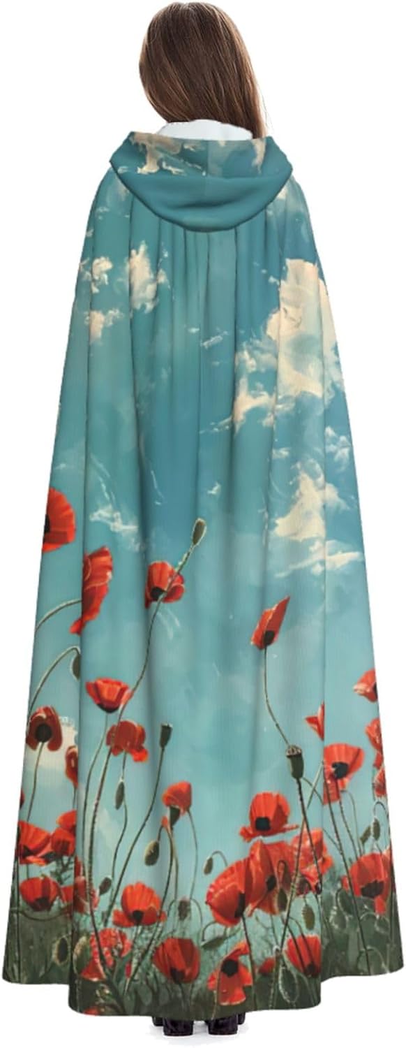 Ruba lo spettacolo a qualsiasi evento di Halloween o a tema con il nostro mantello con cappuccio. Realizzato con un tessuto confortevole, non pruriginoso, questo mantello con stampa papaveri su cielo blu è progettato per assicurarti di distinguerti tra la folla. Il mantello è facile da indossare e togliere, grazie alla cravatta e all'assenza di una cerniera. Con un design facile da pulire, può essere lavato in lavatrice o a mano per garantire che sia sempre pronto per il tuo prossimo evento. Prova la perfetta miscela di comfort, stile e versatilità con il nostro mantello con cappuccio.