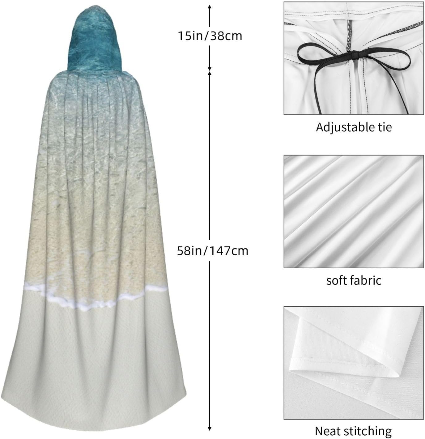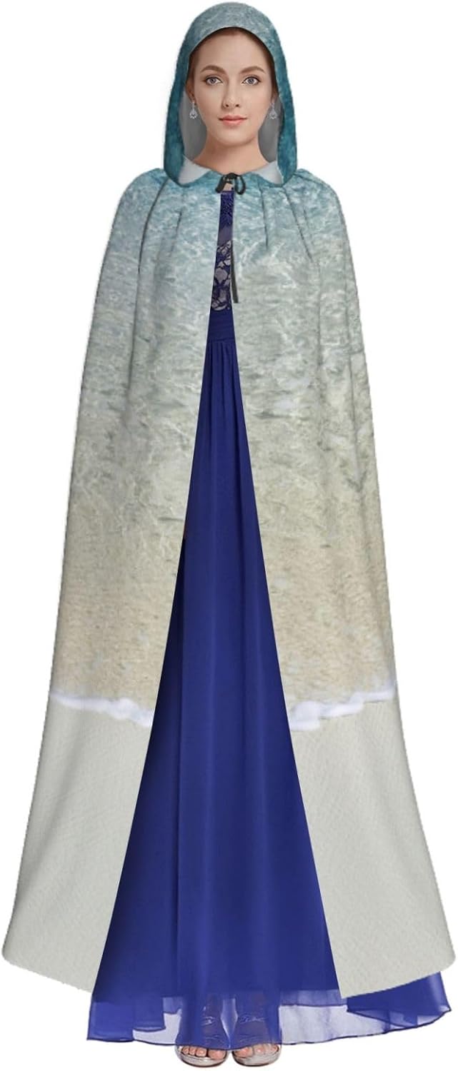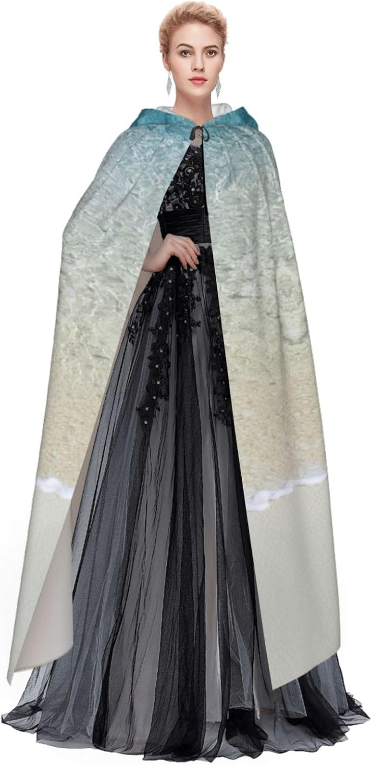 Il mantello con cappuccio per Halloween è realizzato con tessuto in poliestere morbido anche sulla pelle, prevenendo qualsiasi irritazione. Il mantello presenta un ampio cappuccio e uno stile annodato senza cerniere per un design sofisticato ed elegante. Con la sua dimensione universale, offre una copertura completa, adatta a tutti, assicurandoti di distinguerti tra la folla. Questo mantello con stampa di sabbia bianca e acqua di mare trasparente non è solo per Halloween; è abbastanza versatile per cosplay, spettacoli teatrali, balli in maschera, feste a tema e molto altro ancora.