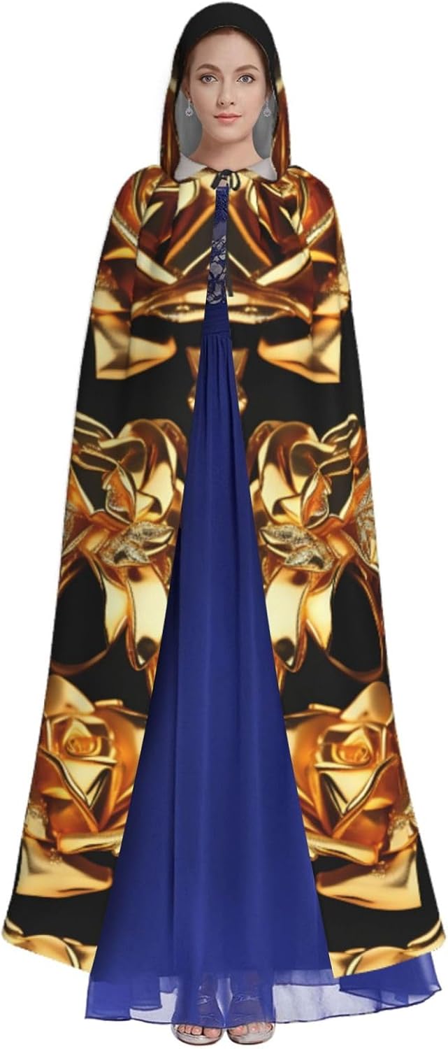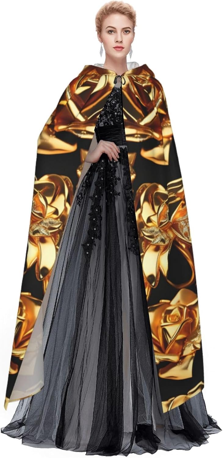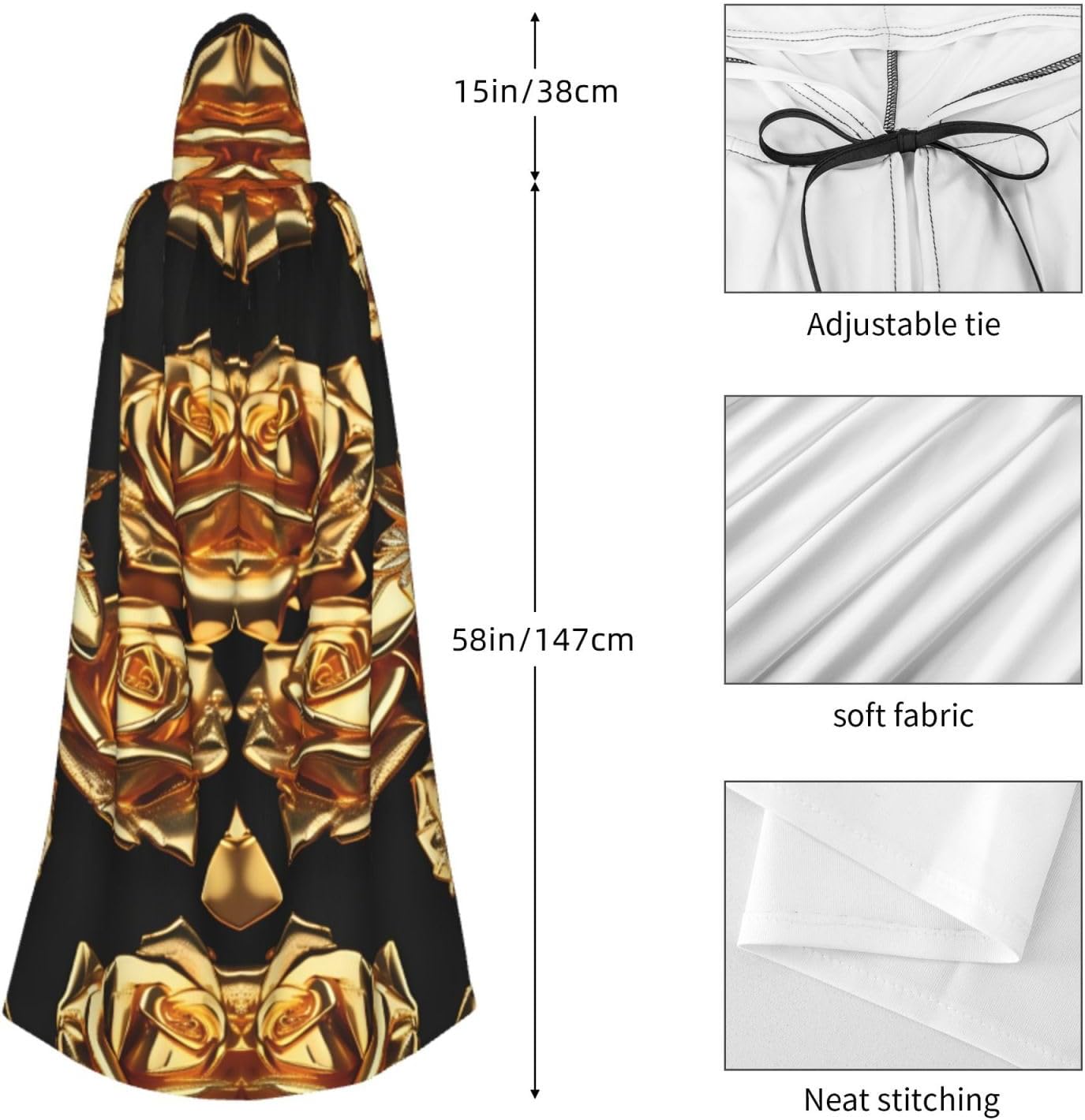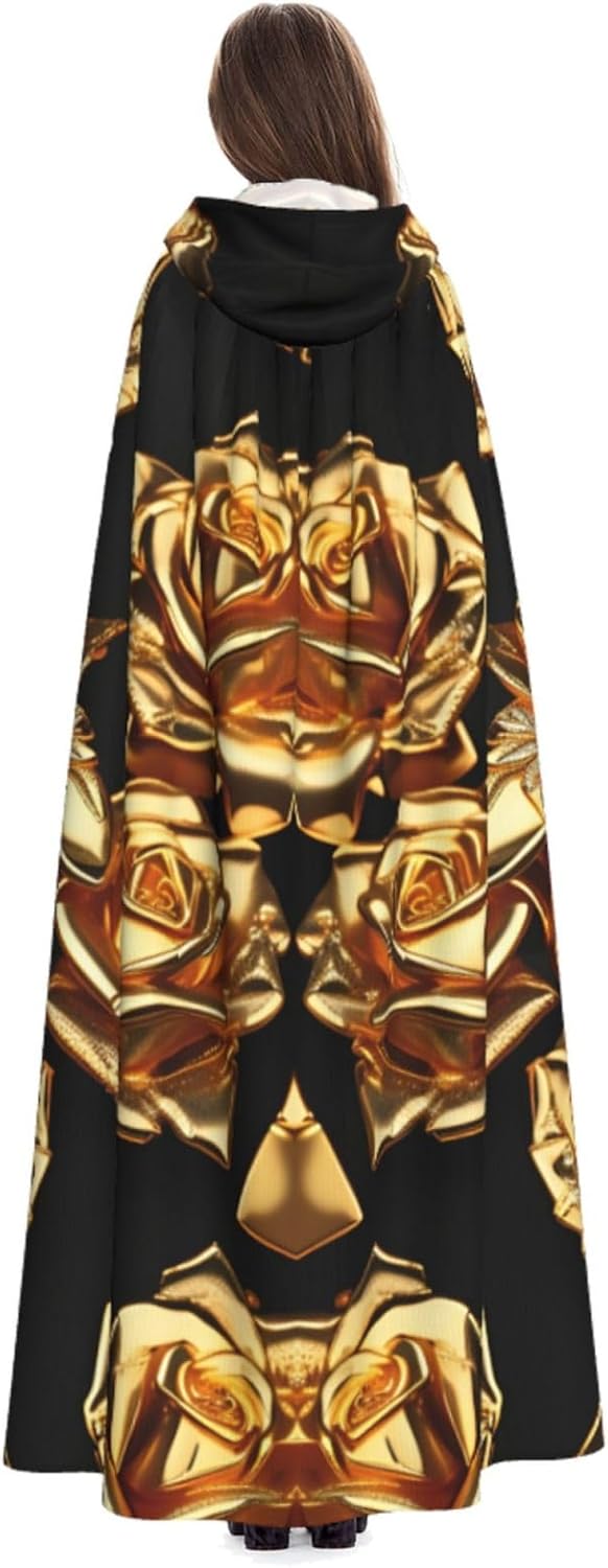 Ruba lo spettacolo a qualsiasi evento di Halloween o a tema con il nostro mantello con cappuccio. Realizzato con un tessuto confortevole e non pruriginoso, questo mantello con stampa a rosa oro è progettato per assicurarti di distinguerti tra la folla. Il mantello è facile da indossare e togliere, grazie alla cravatta e all'assenza di una cerniera. Con un design facile da pulire, può essere lavato in lavatrice o a mano per garantire che sia sempre pronto per il tuo prossimo evento. Prova la perfetta miscela di comfort, stile e versatilità con il nostro mantello con cappuccio.