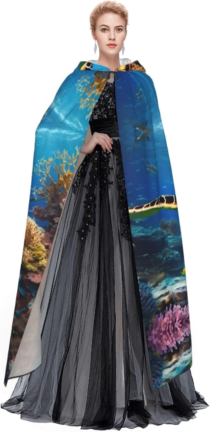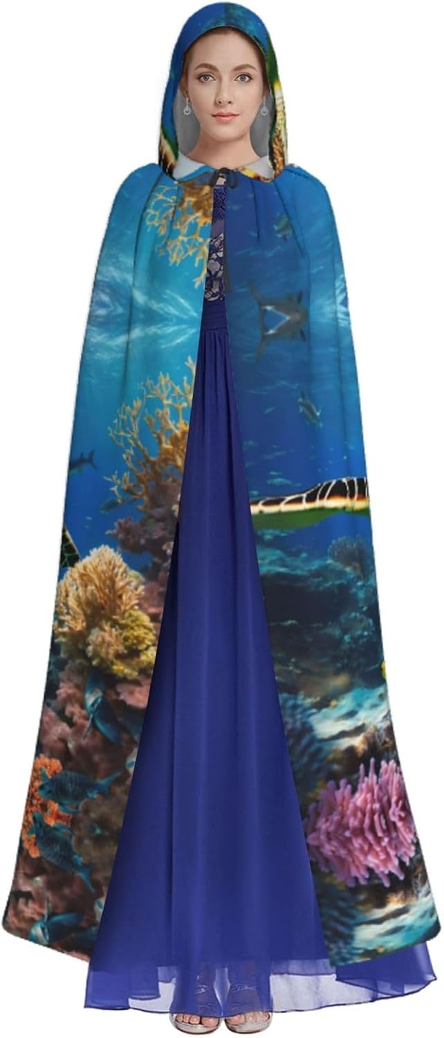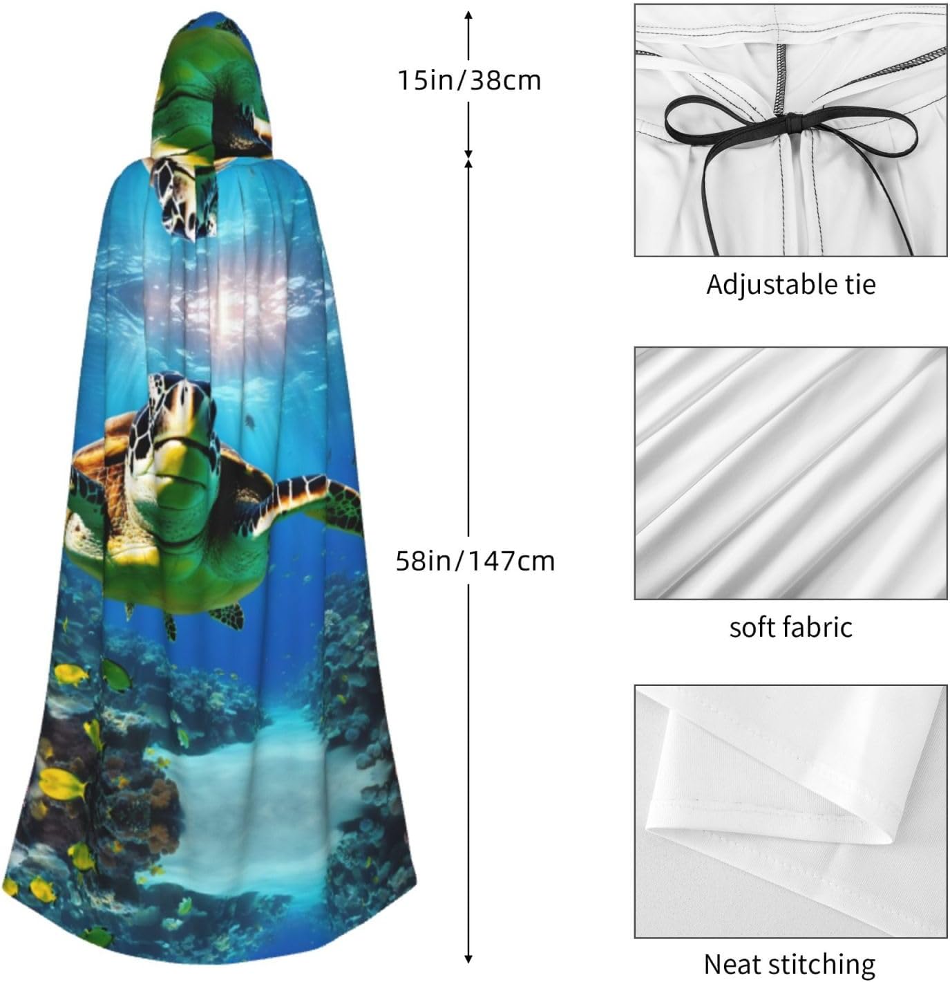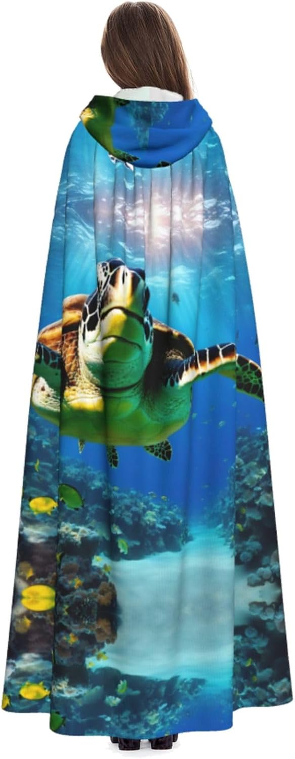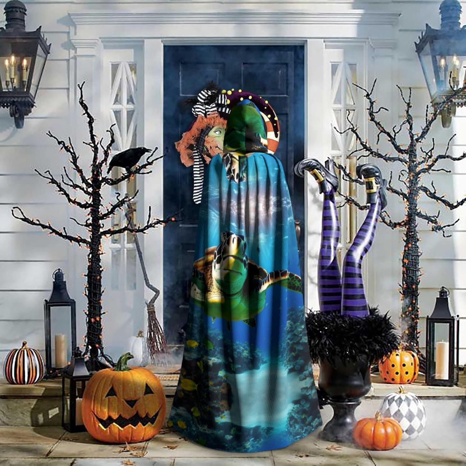 Mantello con cappuccio per Halloween con stampa tartarughe marine mantello intero con cappuccio mantello Cosplay mantello strega mantello costume