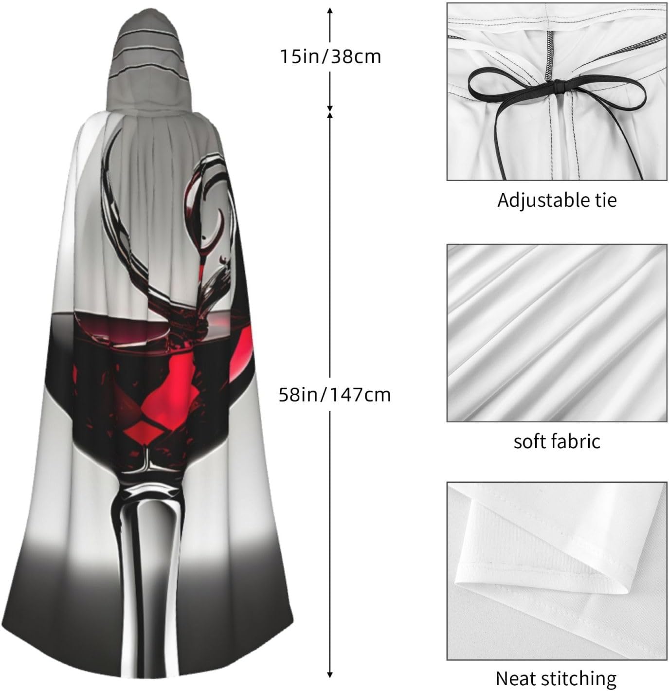 Il design senza cerniera, abbinato a un grande mantello con cappuccio e cravatta al collo, migliora il tuo mistero mantenendoti comodo con il suo tessuto non prurito. Con una lunghezza di 147 cm, una larghezza di 154 cm e un'altezza del cappuccio di 38 cm, il nostro mantello con cappuccio con stampa a calici da vino offre una copertura completa, assicurandoti di distinguerti in ogni occasione. Vari eventi come Halloween, cosplay, costumi da palcoscenico, feste a tema, balli, convegni di fumetti e molto altro ancora, il nostro mantello è versatile e conveniente. Facile da mantenere e di lunga durata, il nostro mantello con cappuccio con stampa a calici da vino è lavabile in lavatrice e lavabile a mano. Con un design neutro, il nostro mantello è perfetto per uomini e donne.
