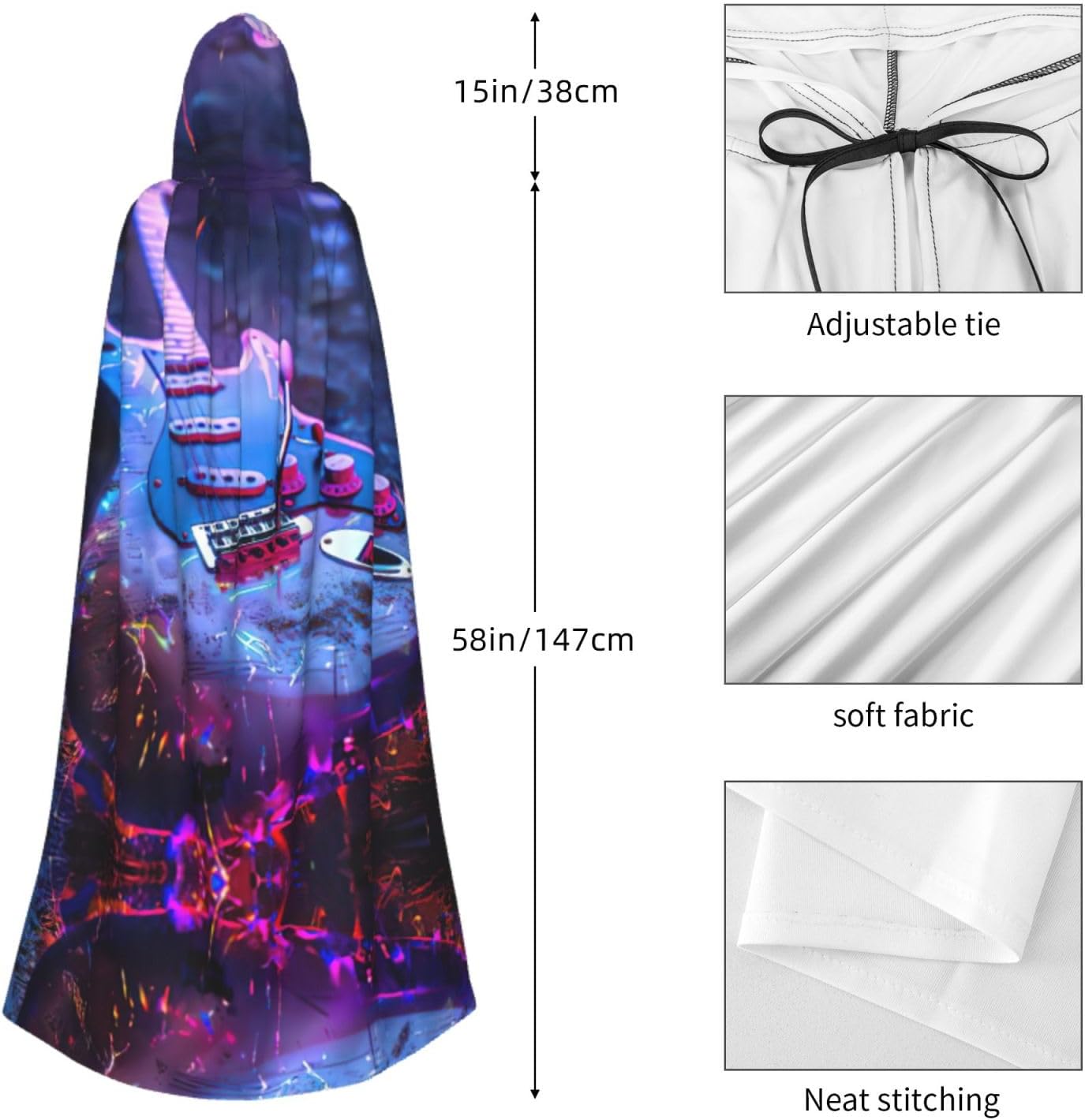 Il design senza cerniera, abbinato a un grande mantello con cappuccio e cravatta al collo, migliora il tuo mistero mantenendoti comodo con il suo tessuto non prurito. Con una lunghezza di 147 cm, larghezza di 154 cm e un'altezza del cappuccio di 38 cm, il nostro bel mantello con cappuccio con stampa a chitarra offre una copertura completa, assicurandoti di distinguerti in ogni occasione. Vari eventi come Halloween, cosplay, costumi da palcoscenico, feste a tema, balli, convegni di fumetti e molto altro ancora, il nostro mantello è versatile e conveniente. Facile da mantenere e di lunga durata, il nostro bel mantello con cappuccio con stampa chitarra è lavabile in lavatrice e lavabile a mano. Con un design neutro, il nostro mantello è perfetto per uomini e donne.