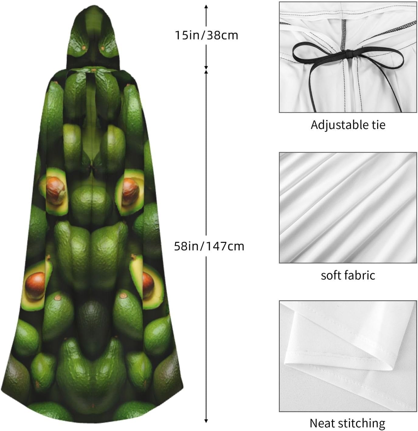 Il design senza cerniera, abbinato a un grande mantello con cappuccio e cravatta al collo, migliora il tuo mistero mantenendoti comodo con il suo tessuto non prurito. Con una lunghezza di 147 cm, larghezza di 154 cm e un'altezza del cappuccio di 38 cm, il nostro mantello con cappuccio con stampa a motivo avocado offre una copertura completa, assicurandoti di distinguerti in ogni occasione. Vari eventi come Halloween, cosplay, costumi da palcoscenico, feste a tema, balli, convegni di fumetti e molto altro ancora, il nostro mantello è versatile e conveniente. Facile da mantenere e di lunga durata, il nostro mantello con cappuccio con stampa con motivo avocado è lavabile in lavatrice e lavabile a mano. Con un design neutro, il nostro mantello è perfetto per uomini e donne.