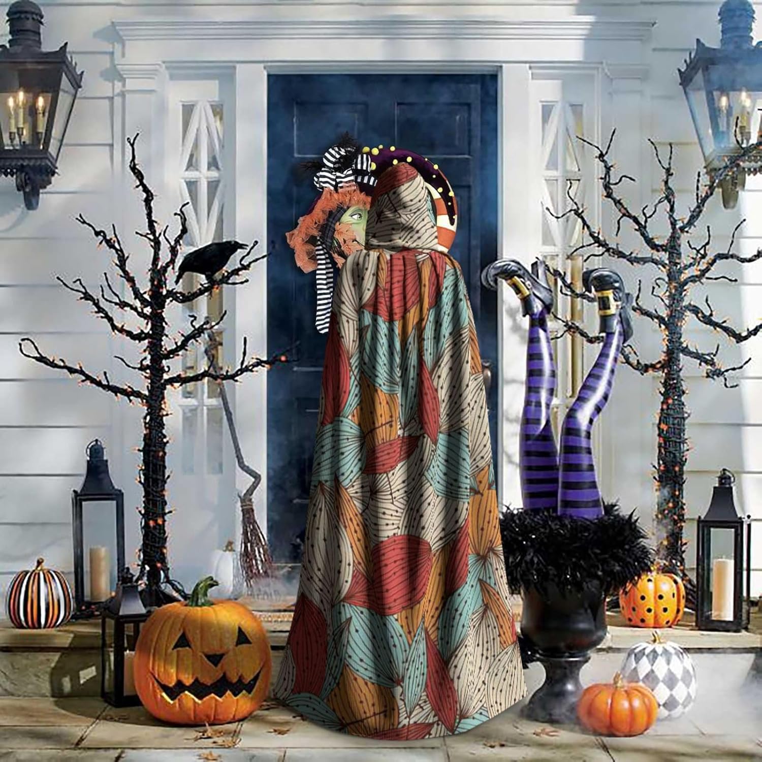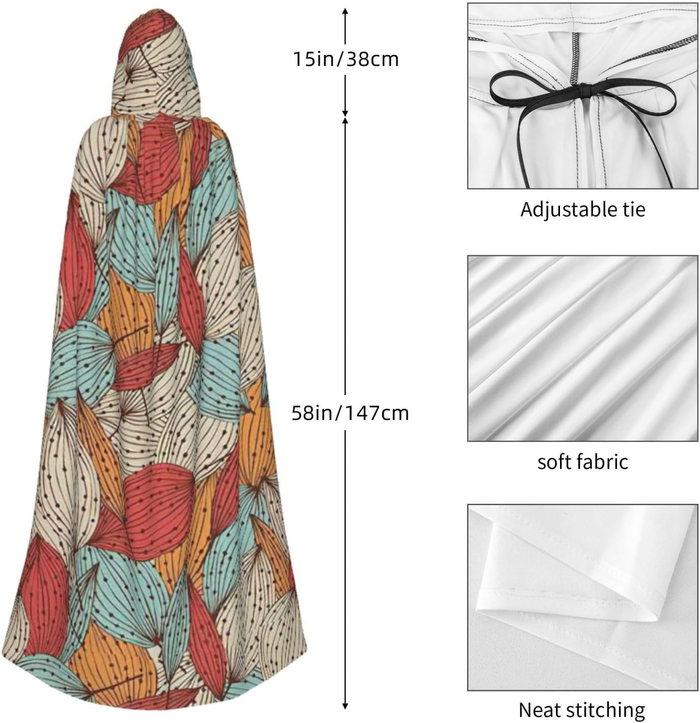Il design senza cerniera, abbinato a un grande mantello con cappuccio e cravatta al collo, migliora il tuo mistero mantenendoti comodo con il suo tessuto non prurito. Con una lunghezza di 147 cm, larghezza di 154 cm e un'altezza del cappuccio di 38 cm, il nostro mantello con cappuccio con stampa a foglie offre una copertura completa, assicurandoti di distinguerti in ogni occasione. Vari eventi come Halloween, cosplay, costumi da palcoscenico, feste a tema, balli, convegni di fumetti e molto altro ancora, il nostro mantello è versatile e conveniente. Facile da mantenere e di lunga durata, il nostro mantello con cappuccio con stampa a foglie è lavabile in lavatrice e lavabile a mano. Con un design neutro, il nostro mantello è perfetto per uomini e donne.