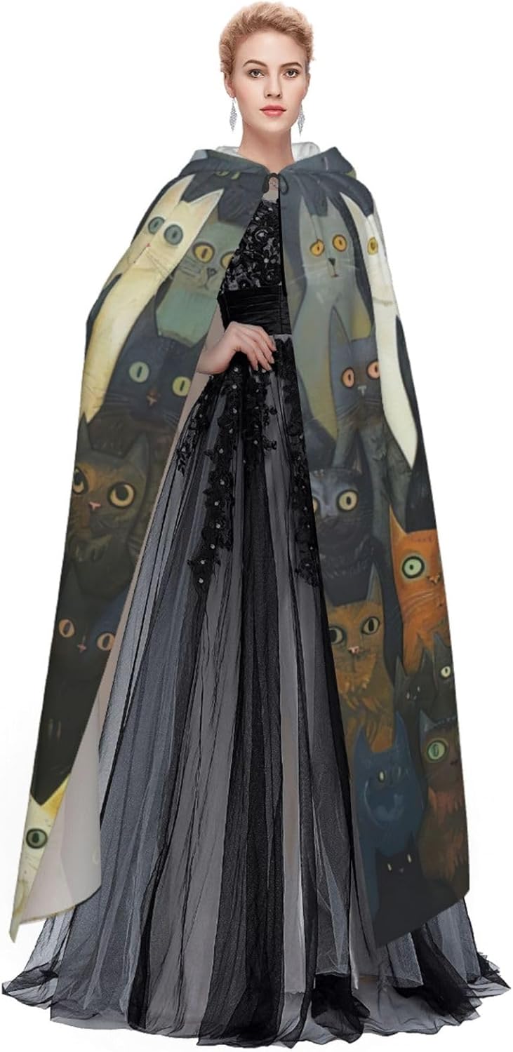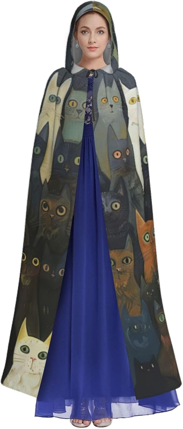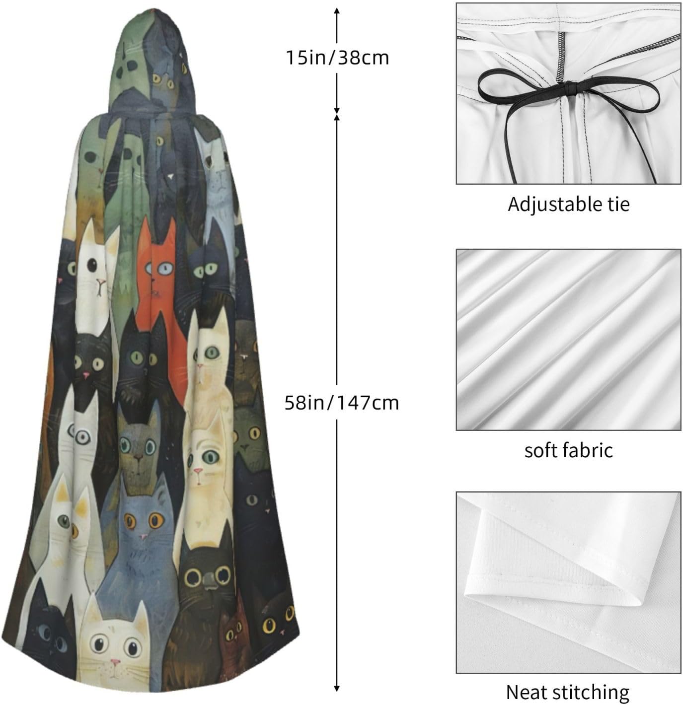 Il design senza cerniera, abbinato a un grande mantello con cappuccio e cravatta al collo, migliora il tuo mistero mantenendoti comodo con il suo tessuto non prurito. Con una lunghezza di 147 cm, larghezza di 154 cm e un'altezza del cappuccio di 38 cm, il nostro mantello con cappuccio con stampa gatto offre una copertura completa, assicurandoti di distinguerti in ogni occasione. Vari eventi come Halloween, cosplay, costumi da palcoscenico, feste a tema, balli, convegni di fumetti e molto altro ancora, il nostro mantello è versatile e conveniente. Facile da mantenere e di lunga durata, il nostro mantello con cappuccio con stampa gatto è lavabile in lavatrice e lavabile a mano. Con un design neutro, il nostro mantello è perfetto per uomini e donne.