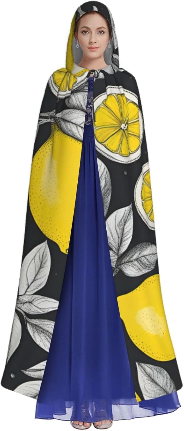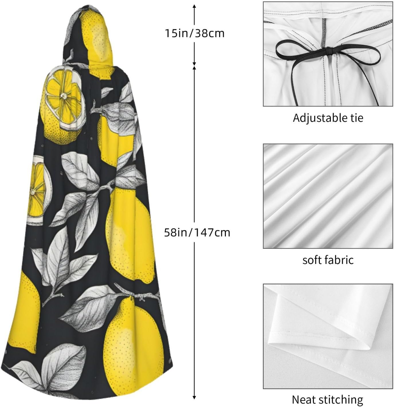 Il design senza cerniera, abbinato a un grande mantello con cappuccio e cravatta al collo, migliora il tuo mistero mantenendoti comodo con il suo tessuto non prurito. Con una lunghezza di 147 cm, una larghezza di 154 cm e un'altezza del cappuccio di 38 cm, il nostro mantello con cappuccio con stampa di frutta limone offre una copertura completa, assicurandoti di distinguerti in ogni occasione. Vari eventi come Halloween, cosplay, costumi da palcoscenico, feste a tema, balli, convegni di fumetti e molto altro ancora, il nostro mantello è versatile e conveniente. Facile da mantenere e di lunga durata, il nostro mantello con cappuccio con stampa con motivo a frutta e limone è lavabile in lavatrice e lavabile a mano. Con un design neutro, il nostro mantello è perfetto per uomini e donne.