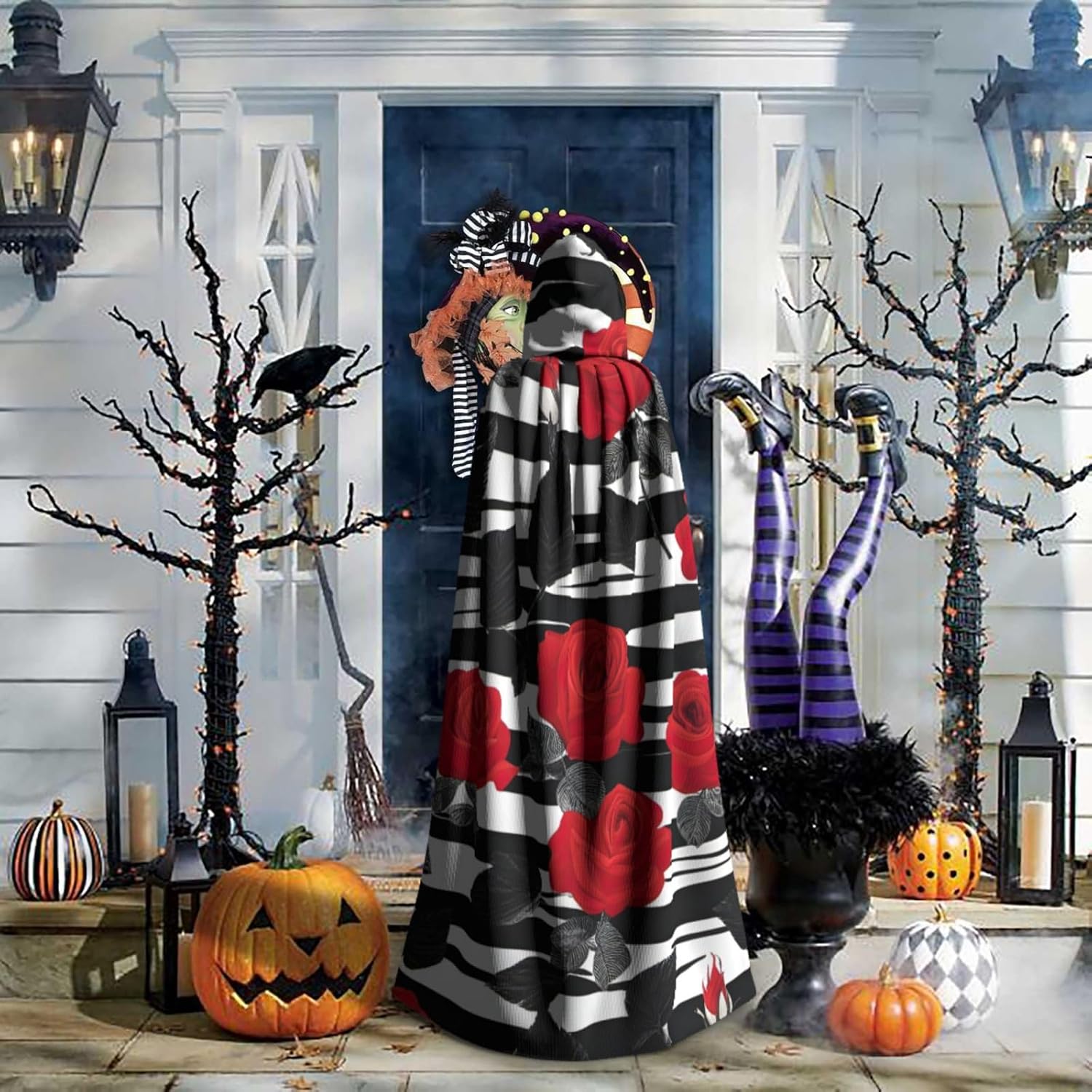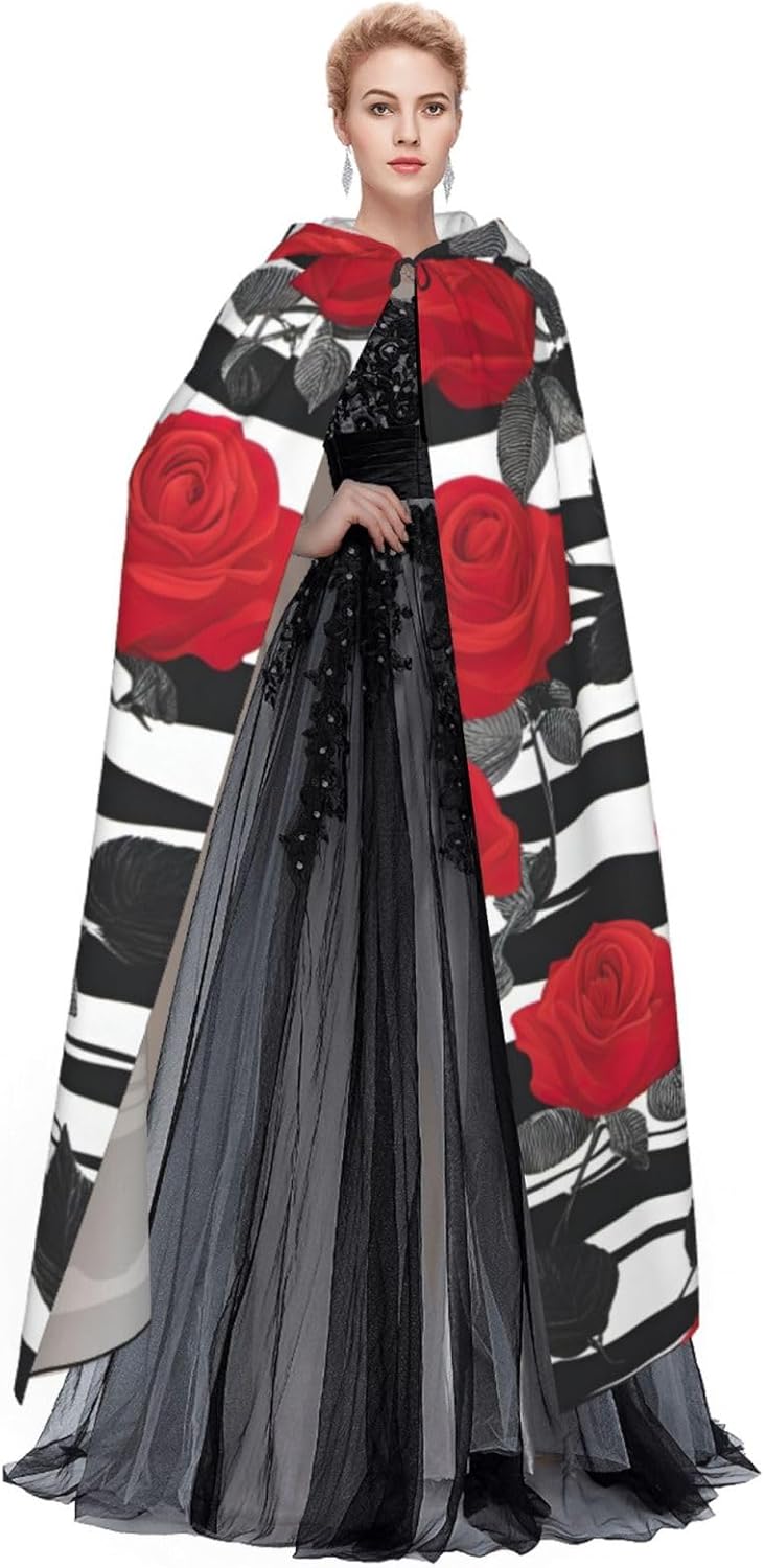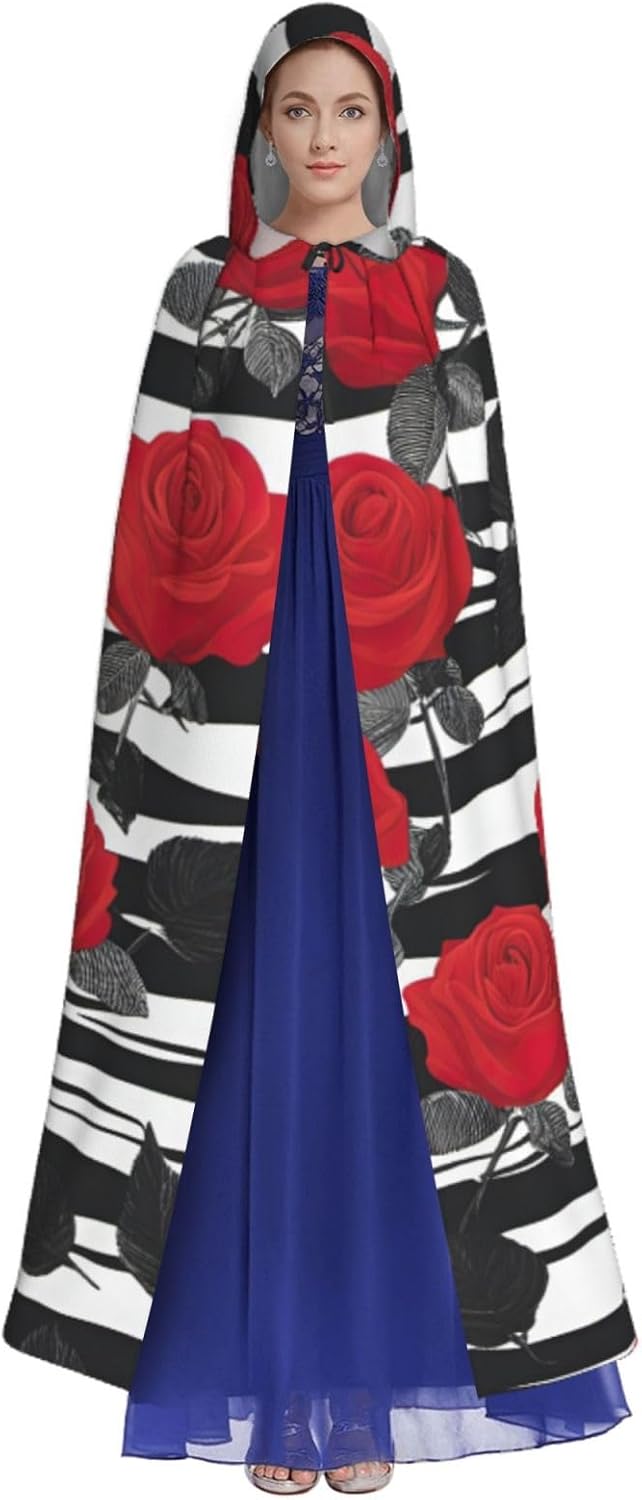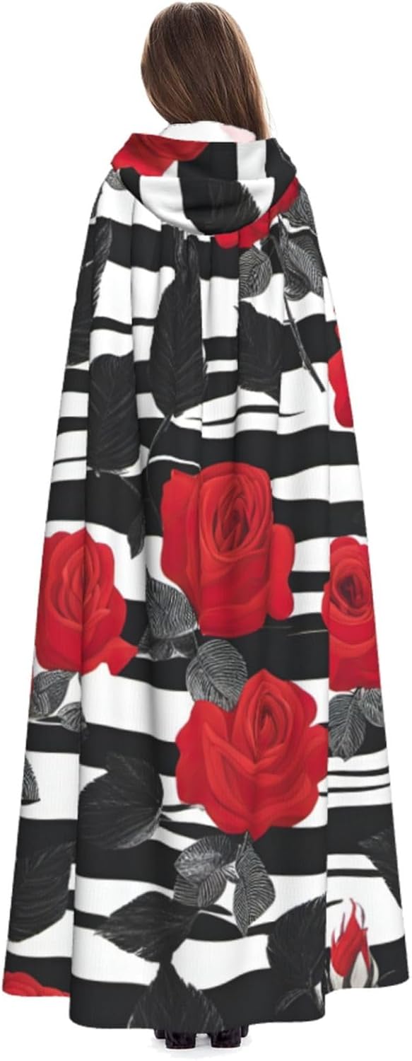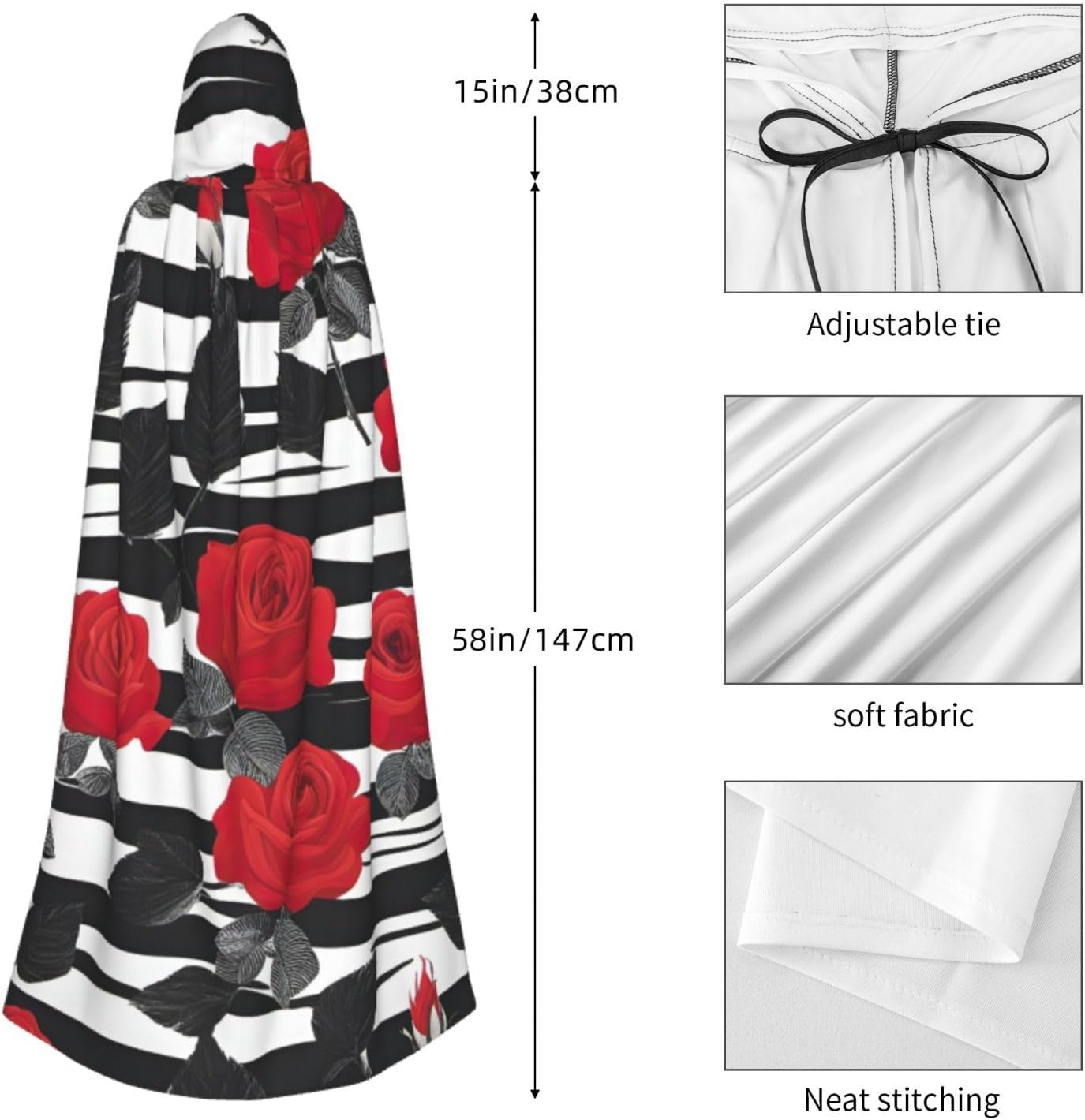 Il design senza cerniera, abbinato a un grande mantello con cappuccio e cravatta al collo, migliora il tuo mistero mantenendoti comodo con il suo tessuto non prurito. Con una lunghezza di 147 cm, una larghezza di 154 cm e un'altezza del cappuccio di 38 cm, il nostro mantello con cappuccio con stampa a righe bianche nere e rose rosse offre una copertura completa, assicurandoti di distinguerti in ogni occasione. Vari eventi come Halloween, cosplay, costumi da palcoscenico, feste a tema, balli, convegni di fumetti e molto altro ancora, il nostro mantello è versatile e conveniente. Facile da mantenere e di lunga durata, il nostro mantello con cappuccio con stampa di fiori di rosa rossa a strisce bianche nere è lavabile in lavatrice e lavabile a mano. Con un design neutro, il nostro mantello è perfetto per uomini e donne.