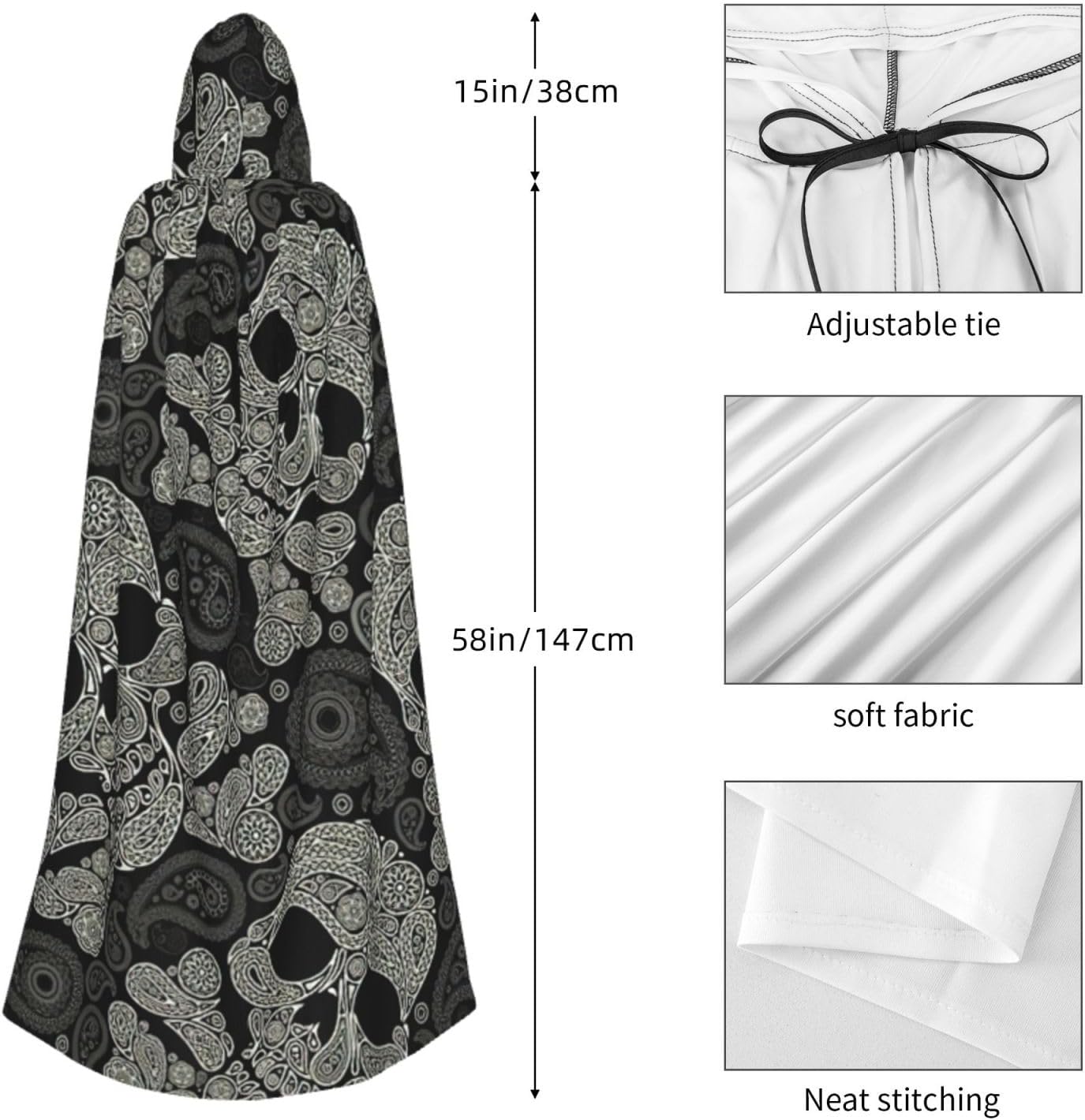 Il design senza cerniera, abbinato a un grande mantello con cappuccio e cravatta al collo, migliora il tuo mistero mantenendoti comodo con il suo tessuto non prurito. Con una lunghezza di 147 cm, larghezza di 154 cm e un'altezza del cappuccio di 38 cm, il nostro mantello con cappuccio con stampa a teschio offre una copertura completa, assicurandoti di distinguerti in ogni occasione. Vari eventi come Halloween, cosplay, costumi da palcoscenico, feste a tema, balli, convegni di fumetti e molto altro ancora, il nostro mantello è versatile e conveniente. Facile da mantenere e di lunga durata, il nostro mantello con cappuccio con stampa teschio è lavabile in lavatrice e lavabile a mano. Con un design neutro, il nostro mantello è perfetto per uomini e donne.