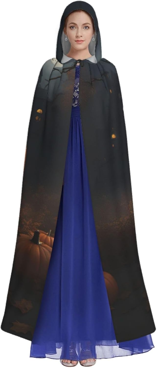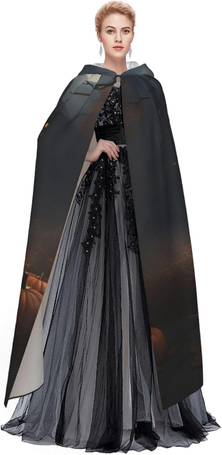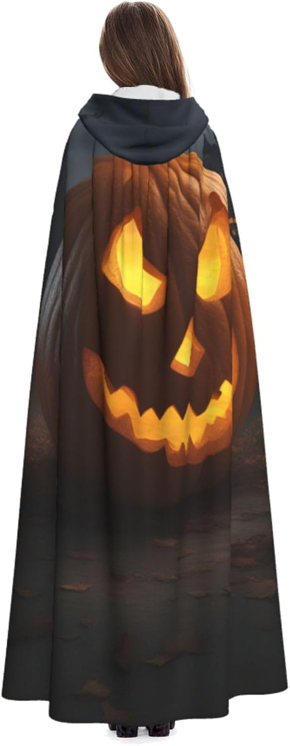 Il design senza cerniera, abbinato a un grande mantello con cappuccio e cravatta al collo, migliora il tuo mistero mantenendoti comodo con il suo tessuto non prurito. Con una lunghezza di 147 cm, larghezza di 154 cm e un'altezza del cappuccio di 38 cm, il nostro mantello con cappuccio con stampa zucca di Halloween offre una copertura completa, assicurandoti di distinguerti in ogni occasione. Vari eventi come Halloween, cosplay, costumi da palcoscenico, feste a tema, balli, convegni di fumetti e molto altro ancora, il nostro mantello è versatile e conveniente. Facile da mantenere e di lunga durata, il nostro mantello con cappuccio con stampa zucca di Halloween è lavabile in lavatrice e lavabile a mano. Con un design neutro, il nostro mantello è perfetto per uomini e donne.