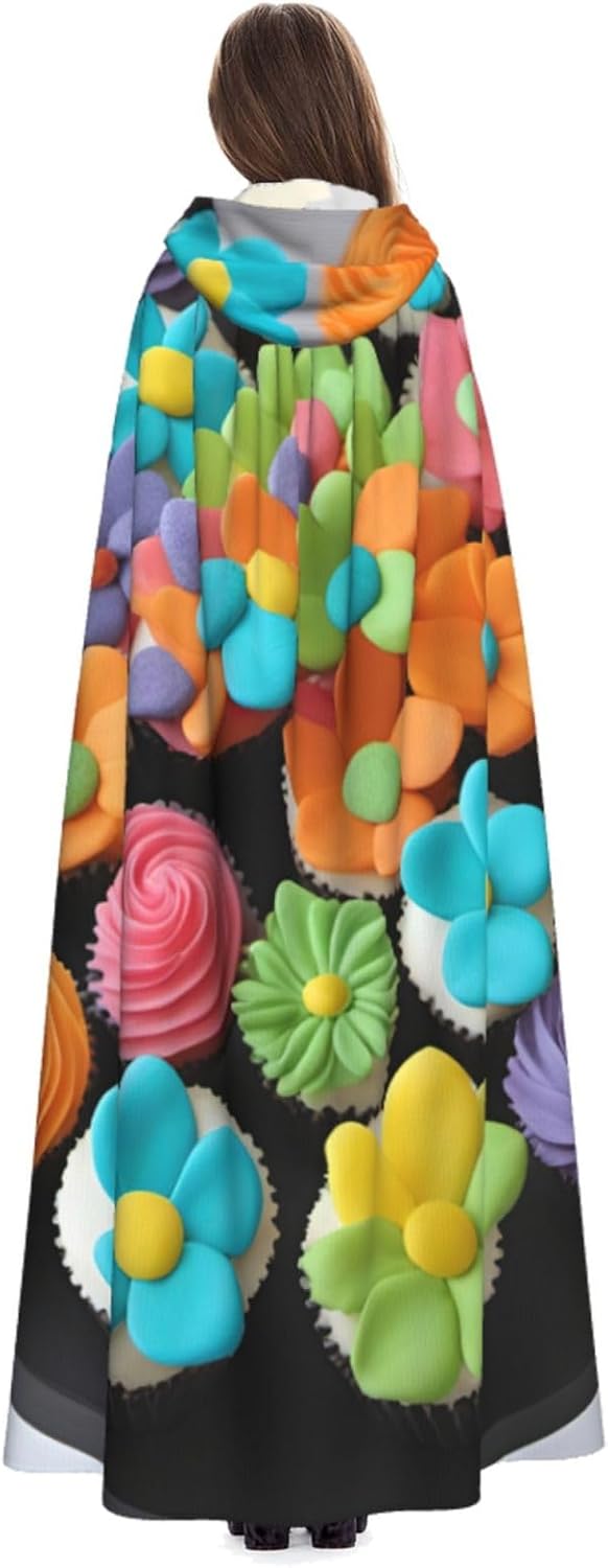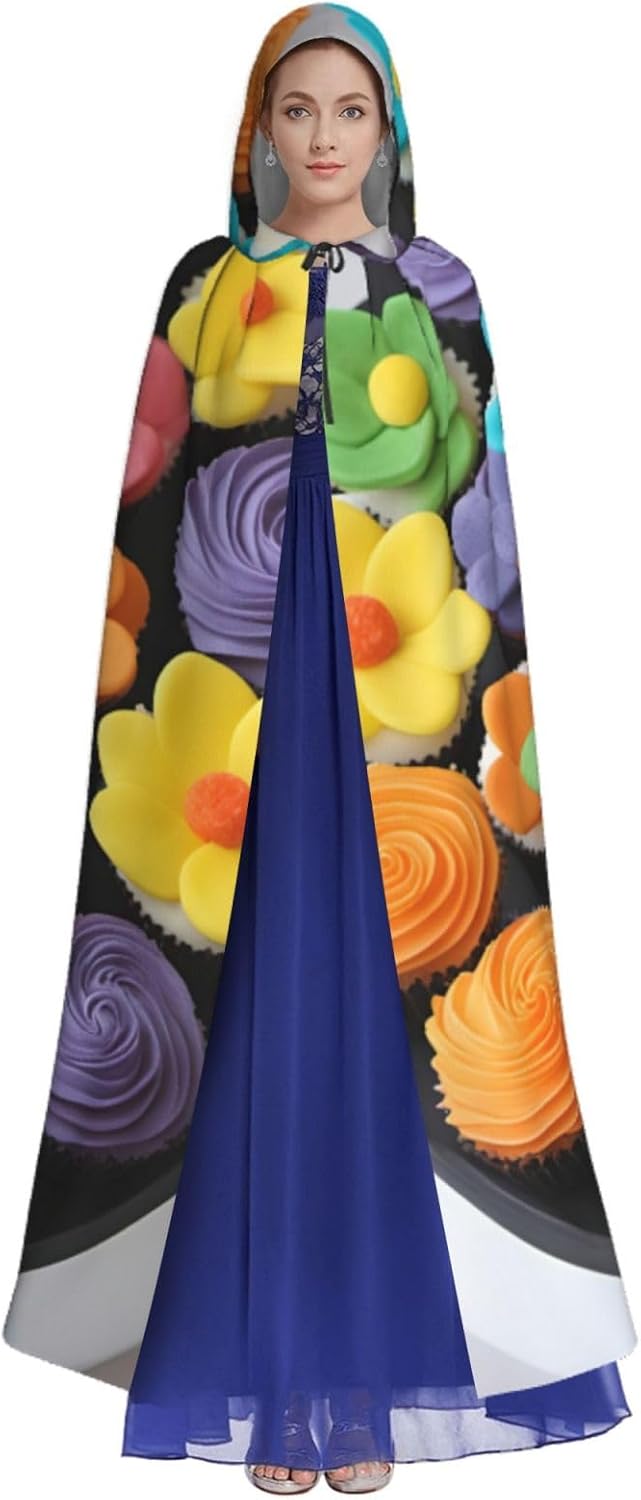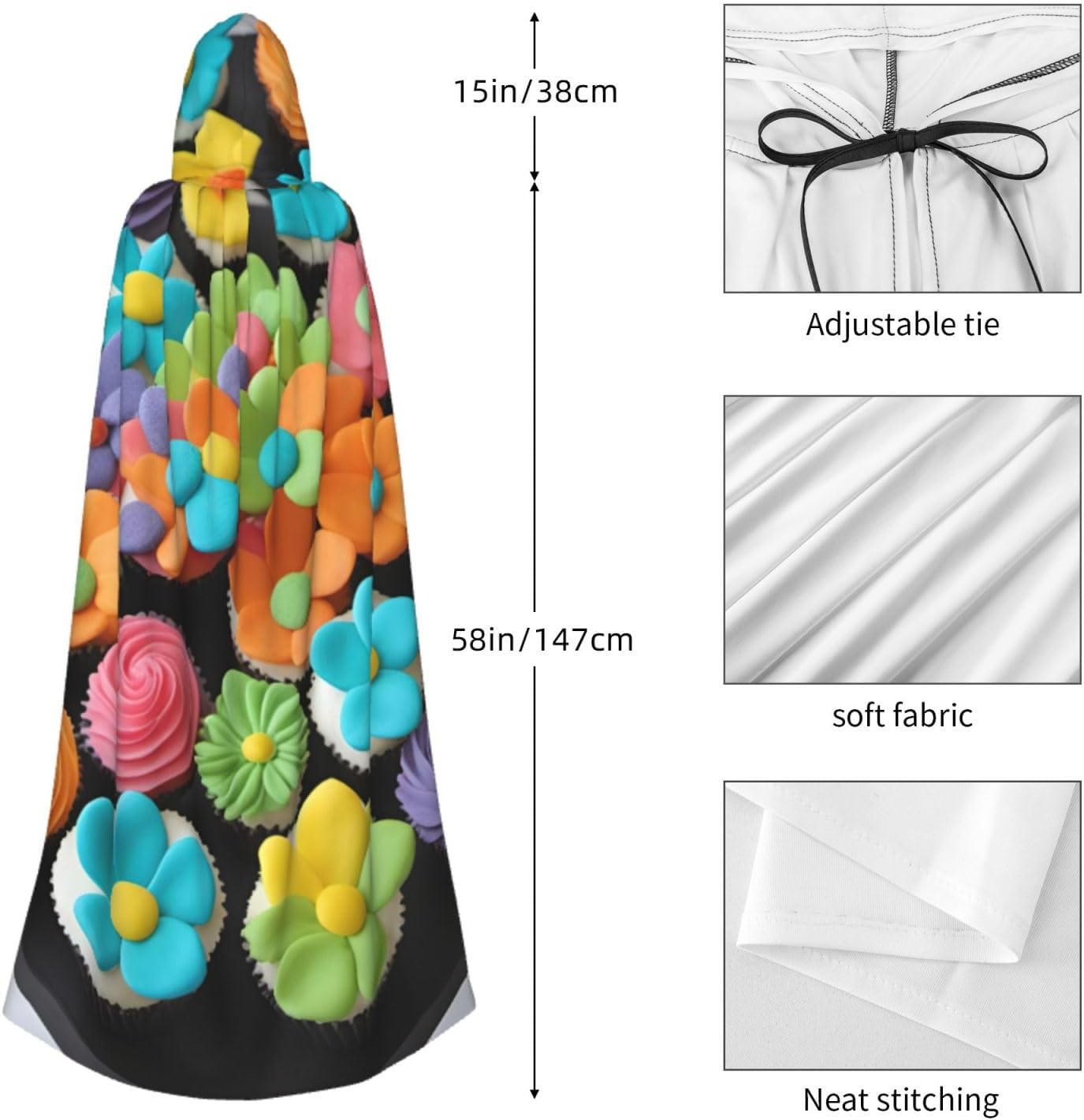 Il design senza cerniera, abbinato a un grande mantello con cappuccio e cravatta al collo, migliora il tuo mistero mantenendoti comodo con il suo tessuto non prurito. Con una lunghezza di 147 cm, una larghezza di 154 cm e un'altezza del cappuccio di 38 cm, il nostro mantello con cappuccio colorato con stampa a torta con fiori arcobaleno offre una copertura completa, assicurandoti di distinguerti in ogni occasione. Vari eventi come Halloween, cosplay, costumi da palcoscenico, feste a tema, balli, convegni di fumetti e molto altro ancora, il nostro mantello è versatile e conveniente. Facile da mantenere e di lunga durata, il nostro mantello con cappuccio colorato con stampa di cupcake arcobaleno e torta è lavabile in lavatrice e lavabile a mano. Con un design neutro, il nostro mantello è perfetto per uomini e donne.