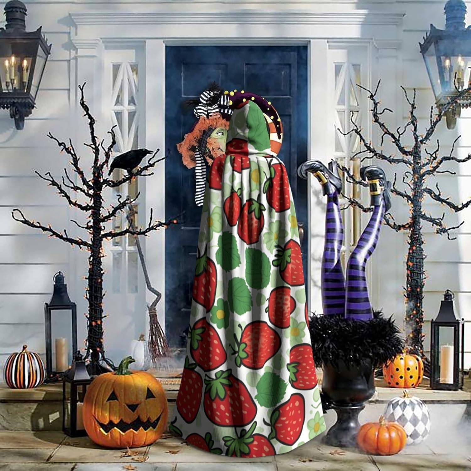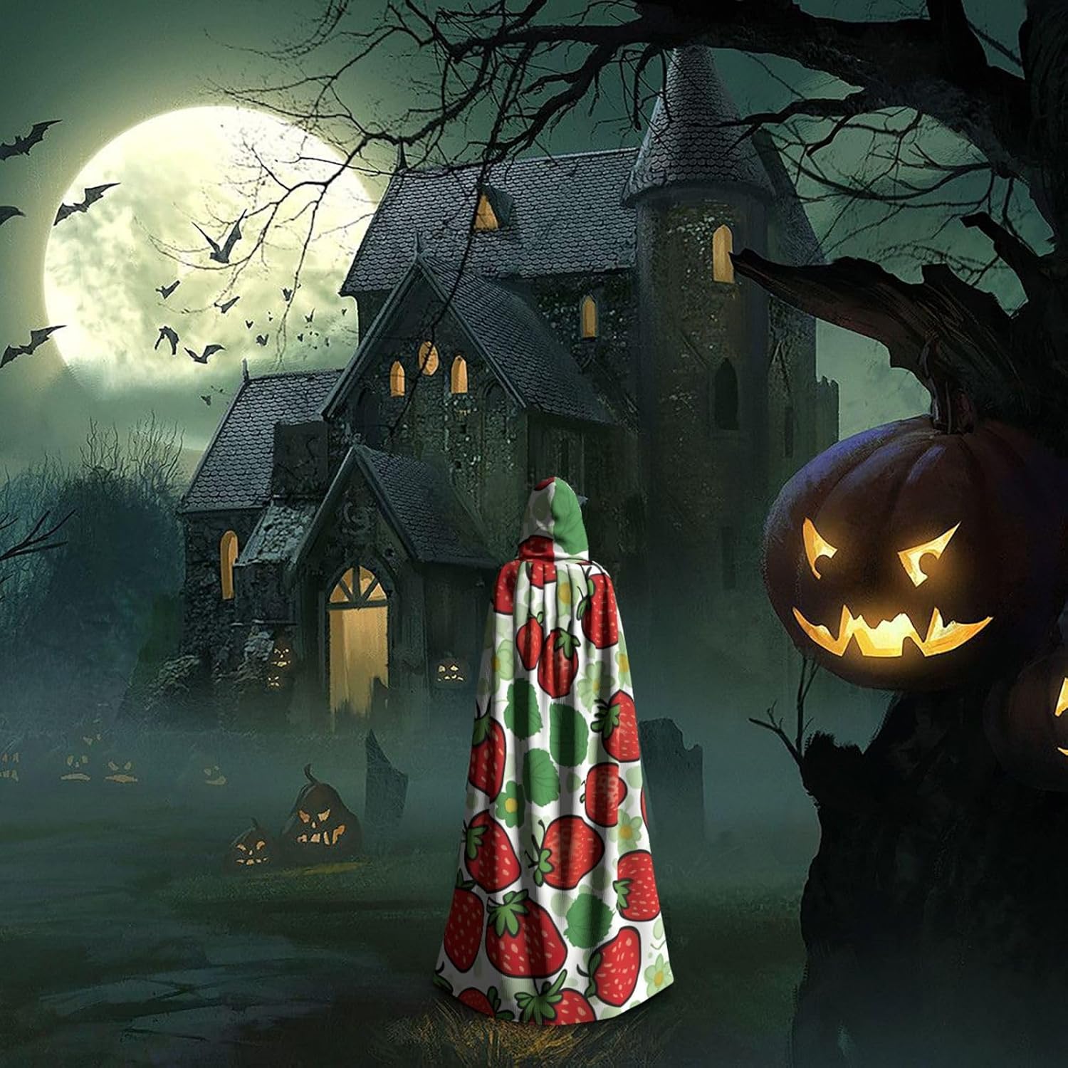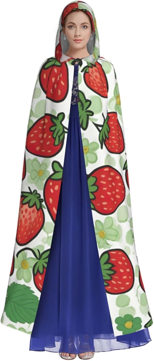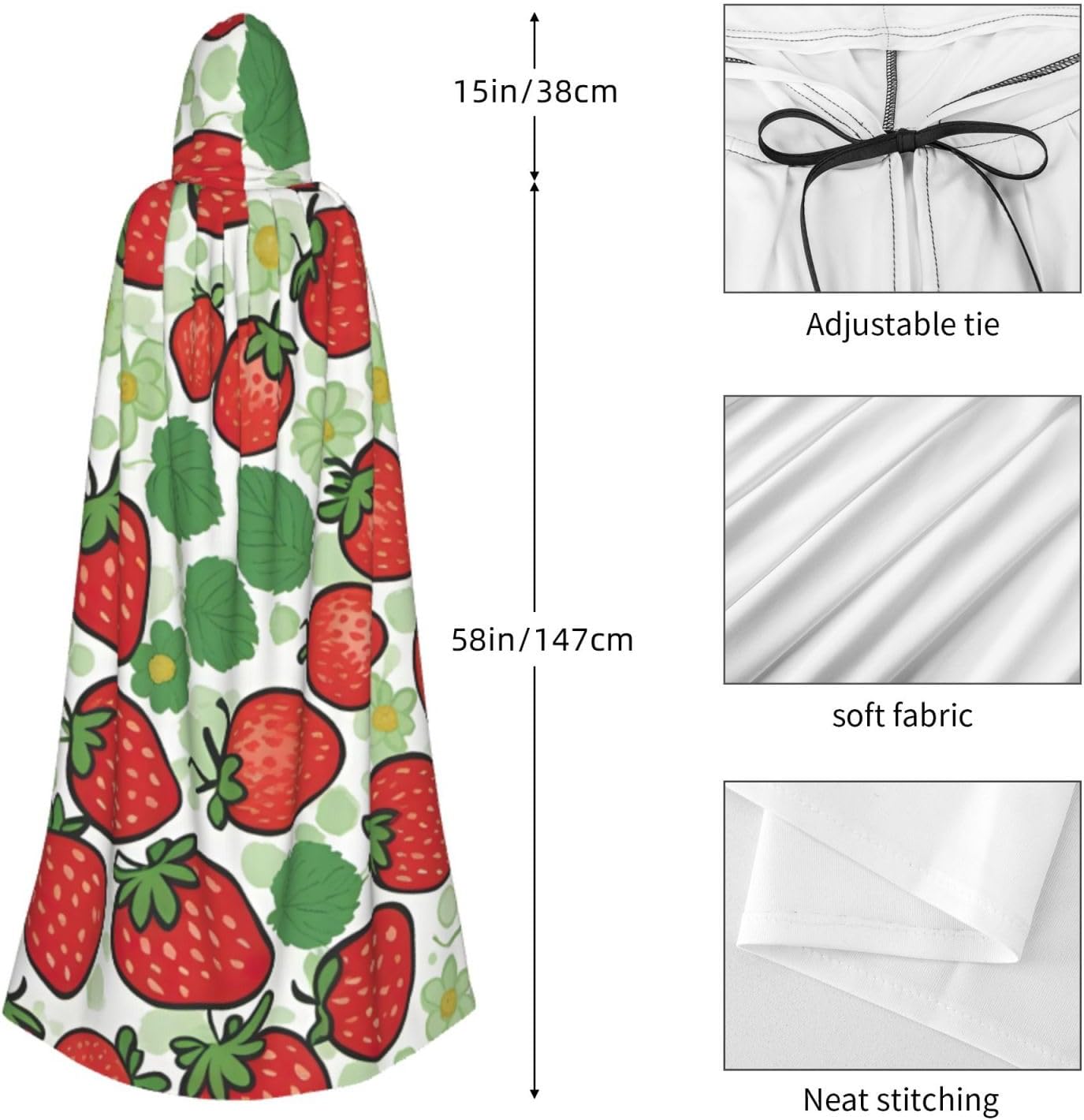 Il design senza cerniera, abbinato a un grande mantello con cappuccio e cravatta al collo, migliora il tuo mistero mantenendoti comodo con il suo tessuto non prurito. Con una lunghezza di 147 cm, larghezza di 154 cm e un'altezza del cappuccio di 38 cm, il nostro mantello con cappuccio con stampa a fragole offre una copertura completa, assicurandoti di distinguerti in ogni occasione. Vari eventi come Halloween, cosplay, costumi da palcoscenico, feste a tema, balli, convegni di fumetti e molto altro ancora, il nostro mantello è versatile e conveniente. Facile da mantenere e di lunga durata, il nostro mantello con cappuccio con stampa con motivo fragola è lavabile in lavatrice e lavabile a mano. Con un design neutro, il nostro mantello è perfetto per uomini e donne.