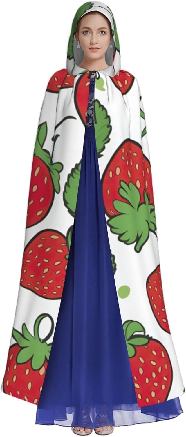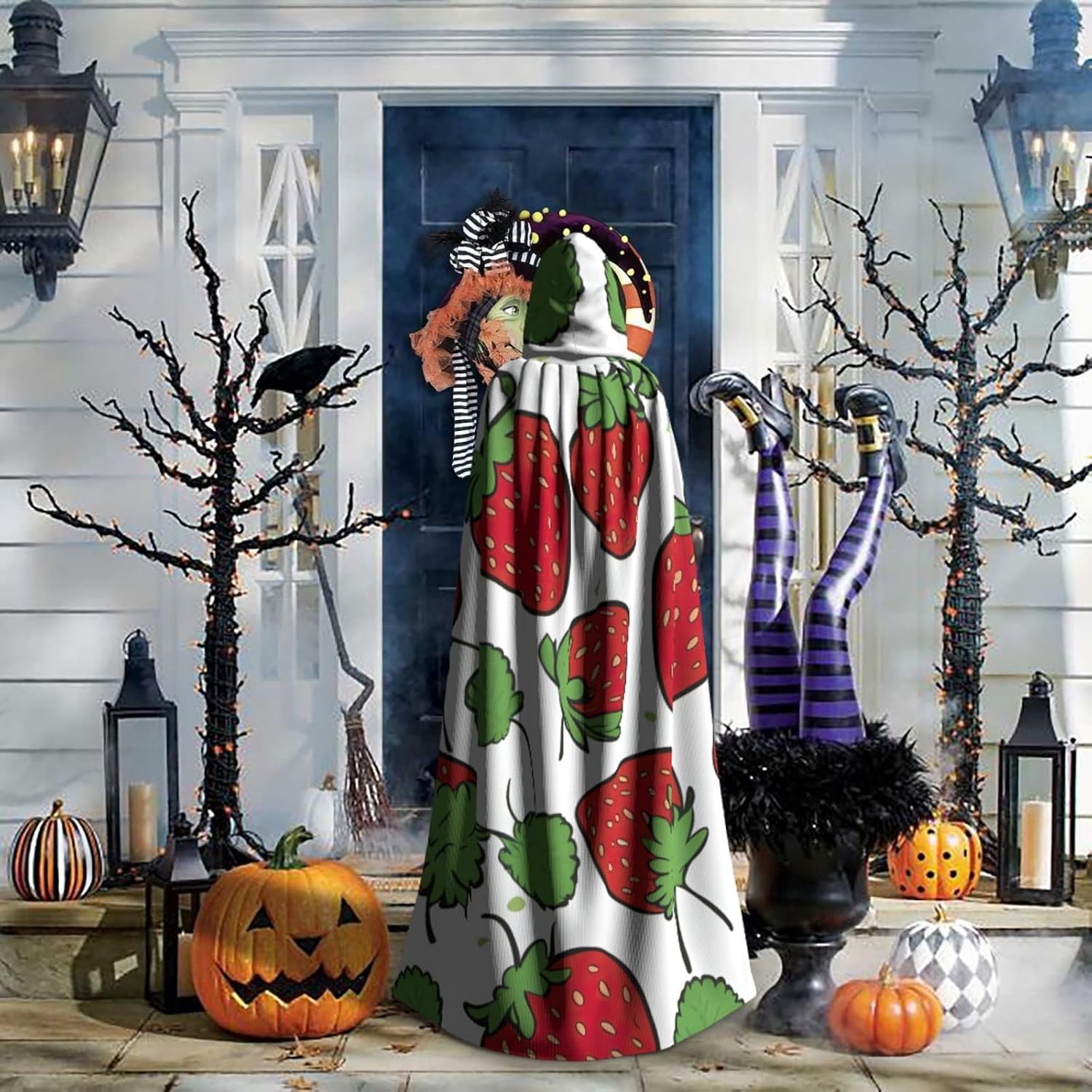 Mantello con cappuccio per Halloween e cosplay, con stampa a fragola, comodo mantello con cappuccio per adulti